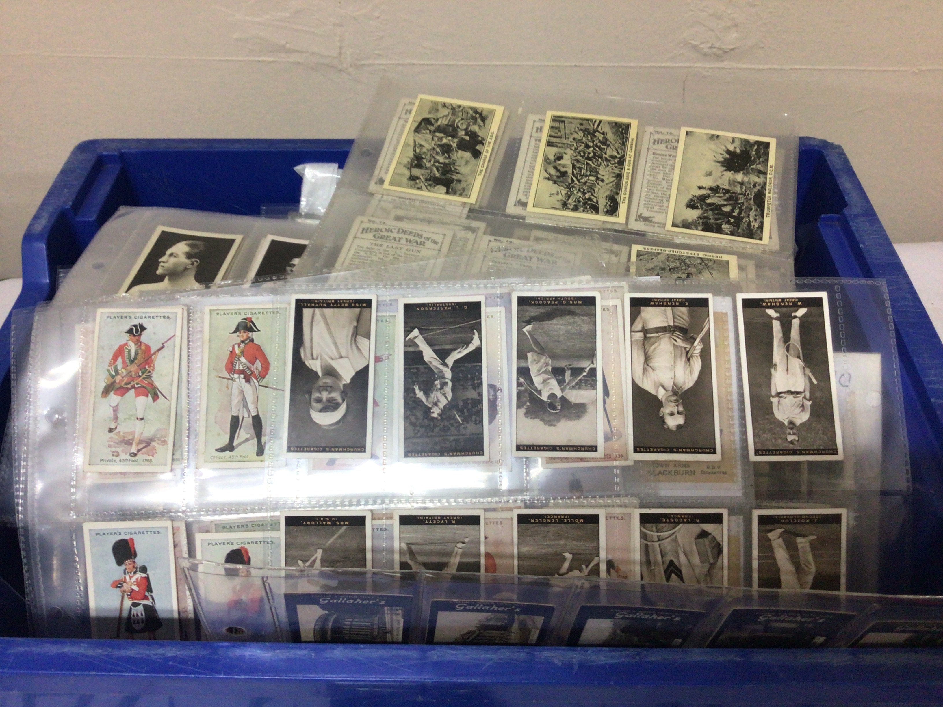 A box containing a large quantity of cigarette cards Sweet Kiss Series 3rd Series of Vintage Beauties Vintages Sporting championship from the 1920 Vintage Gallaher cards churchman۪s Vintage tea cards all well presented in plastic sleeves.
