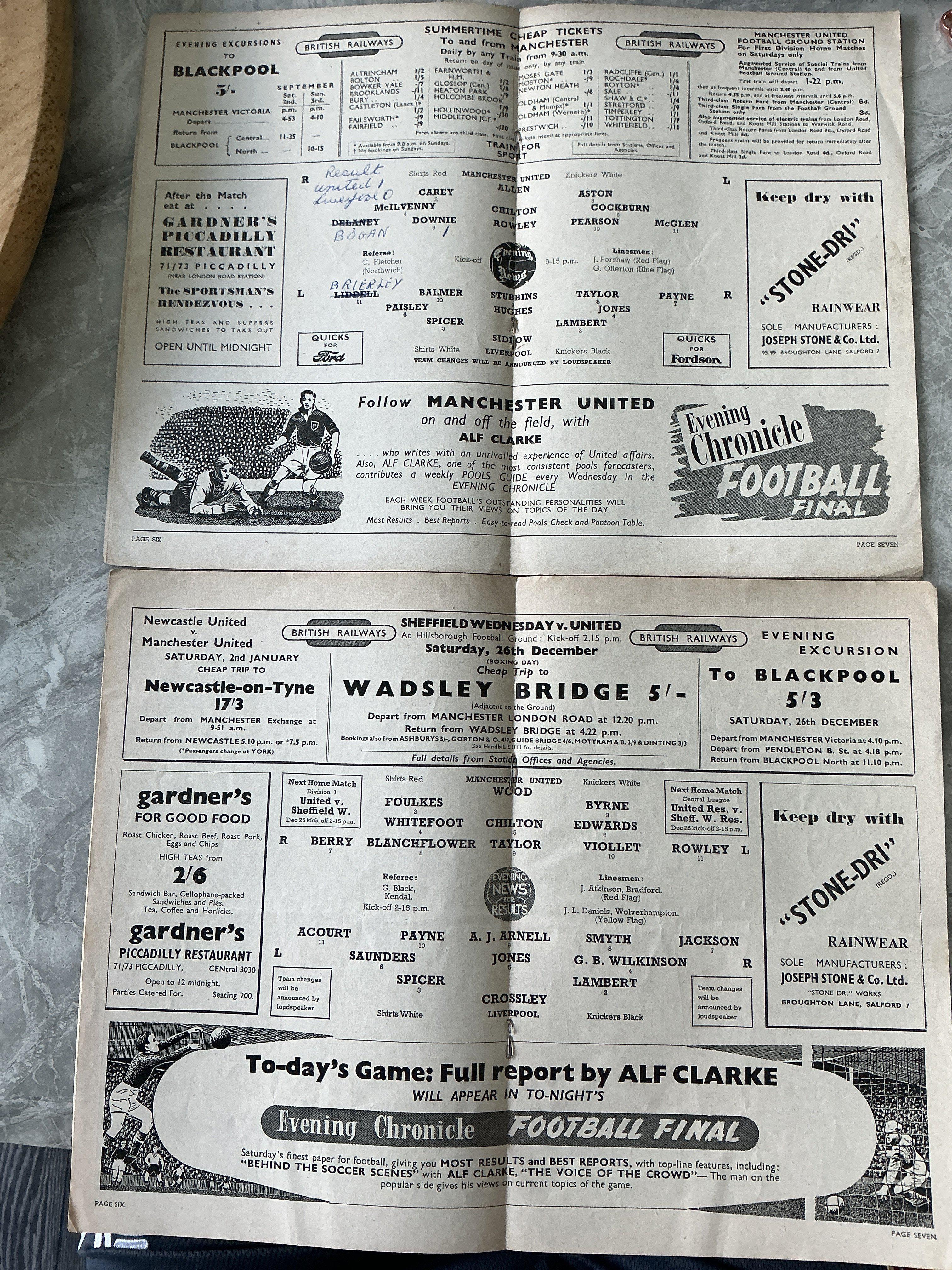 1950s Manchester United v Liverpool Football Programmes: 50/51 has team changes and 53/54 does not. Both good. (2)