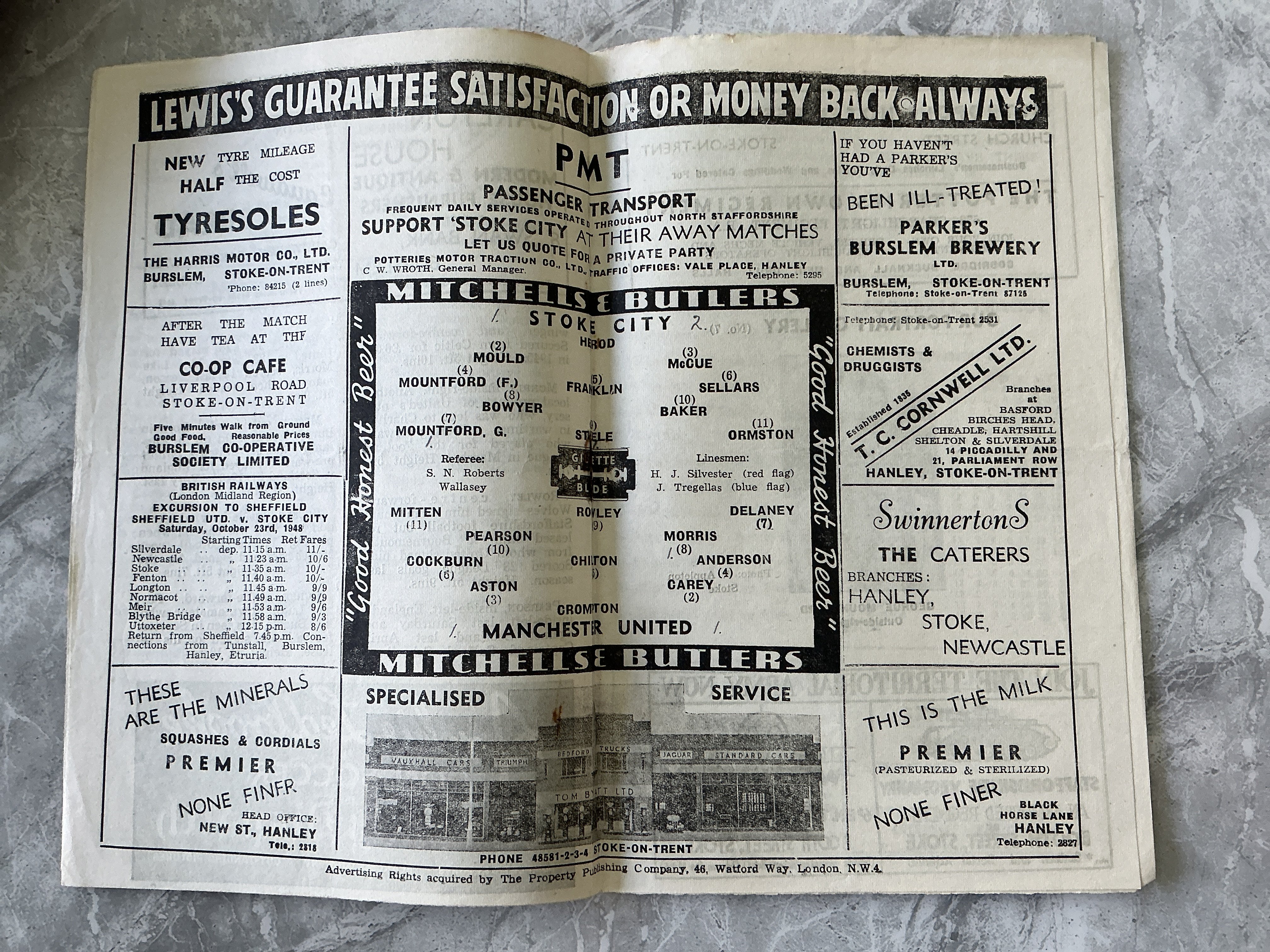 48/49 Stoke City v Manchester United Football Programme: Very good condition 1st division programme with no team changes. Pencilled score to team page.