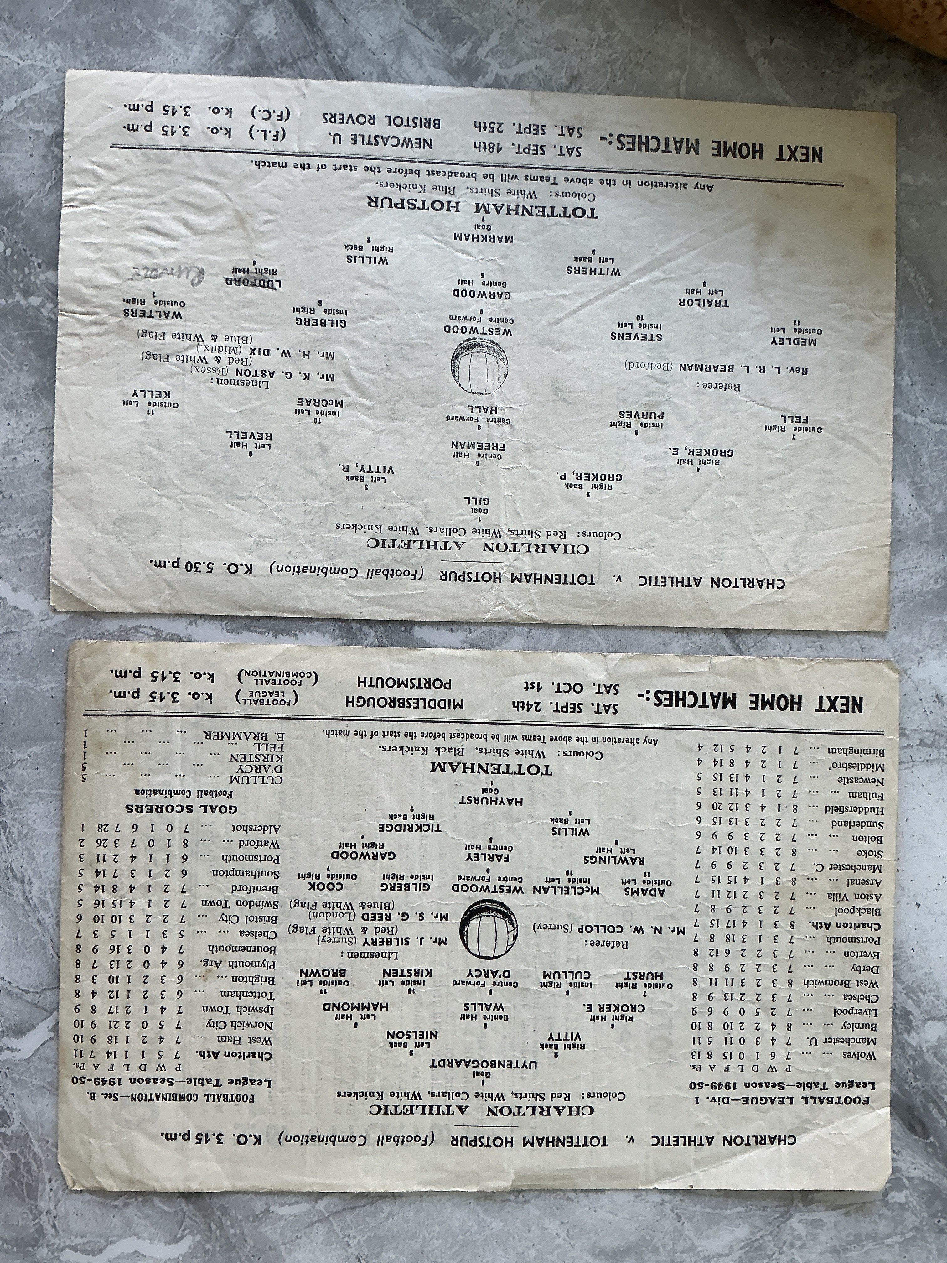 1940s Charlton v Tottenham Reserves Football Programme: Good condition Football Combination programmes from 48/49 and 49/50 with no team changes. (2)