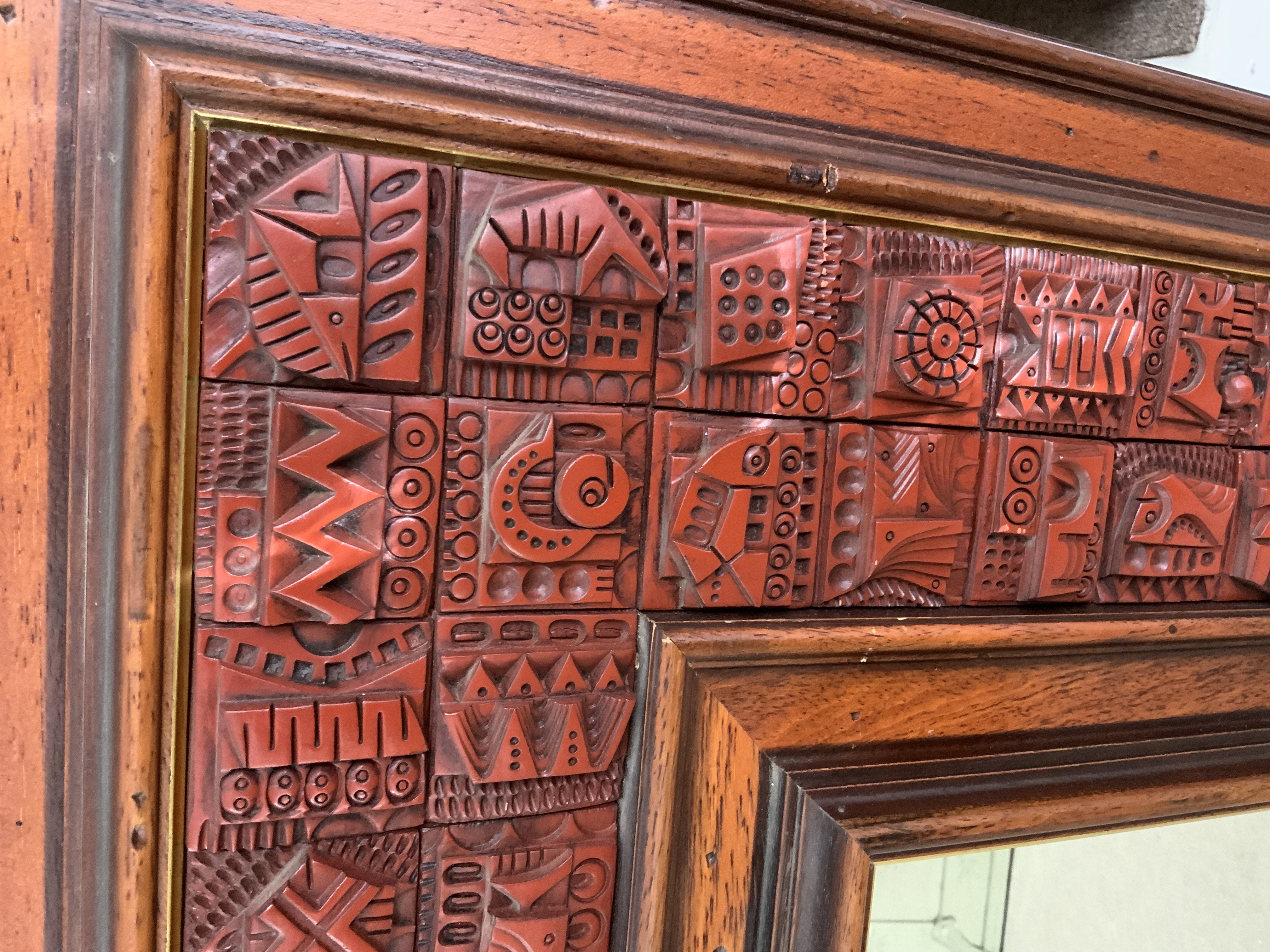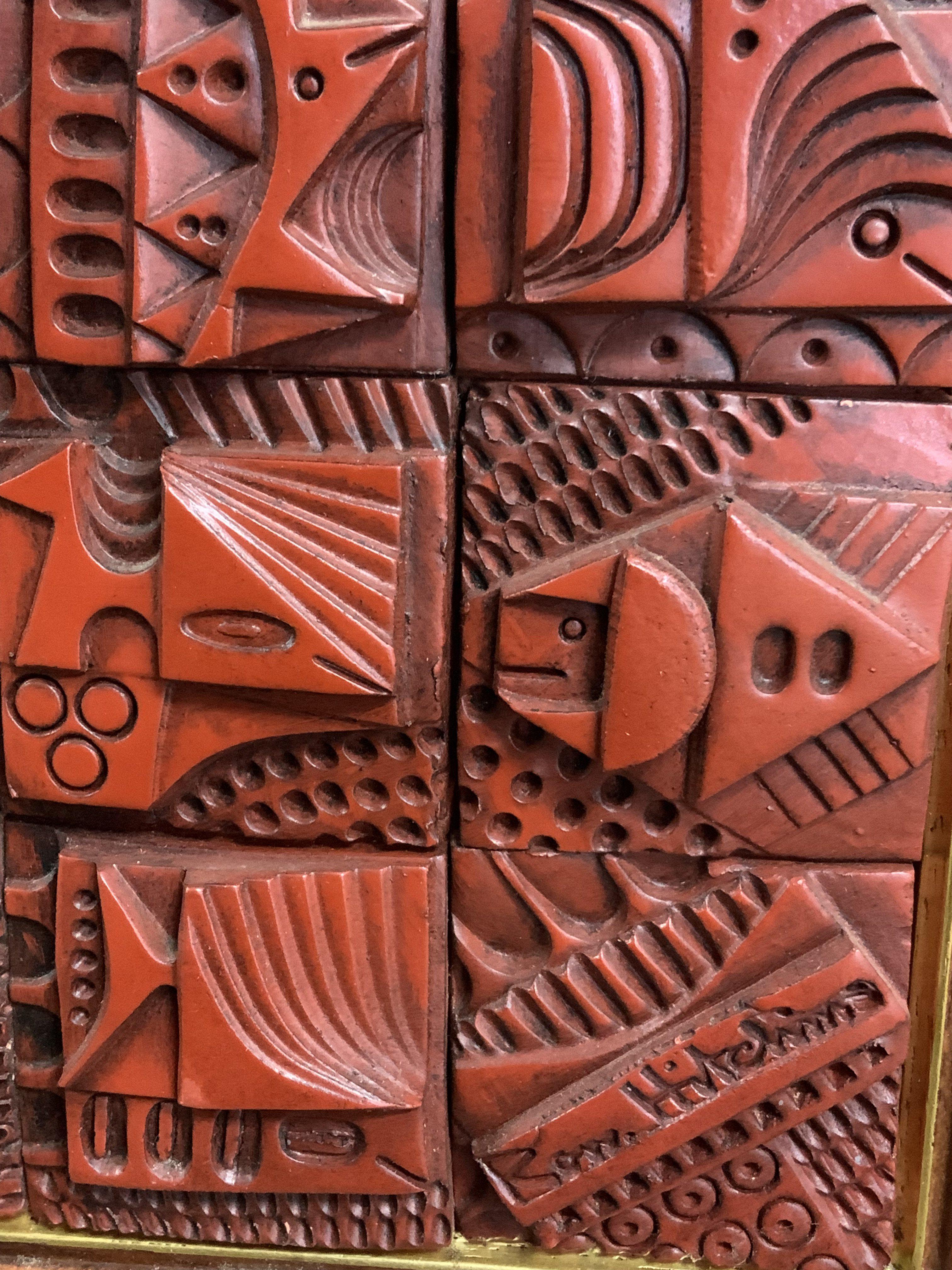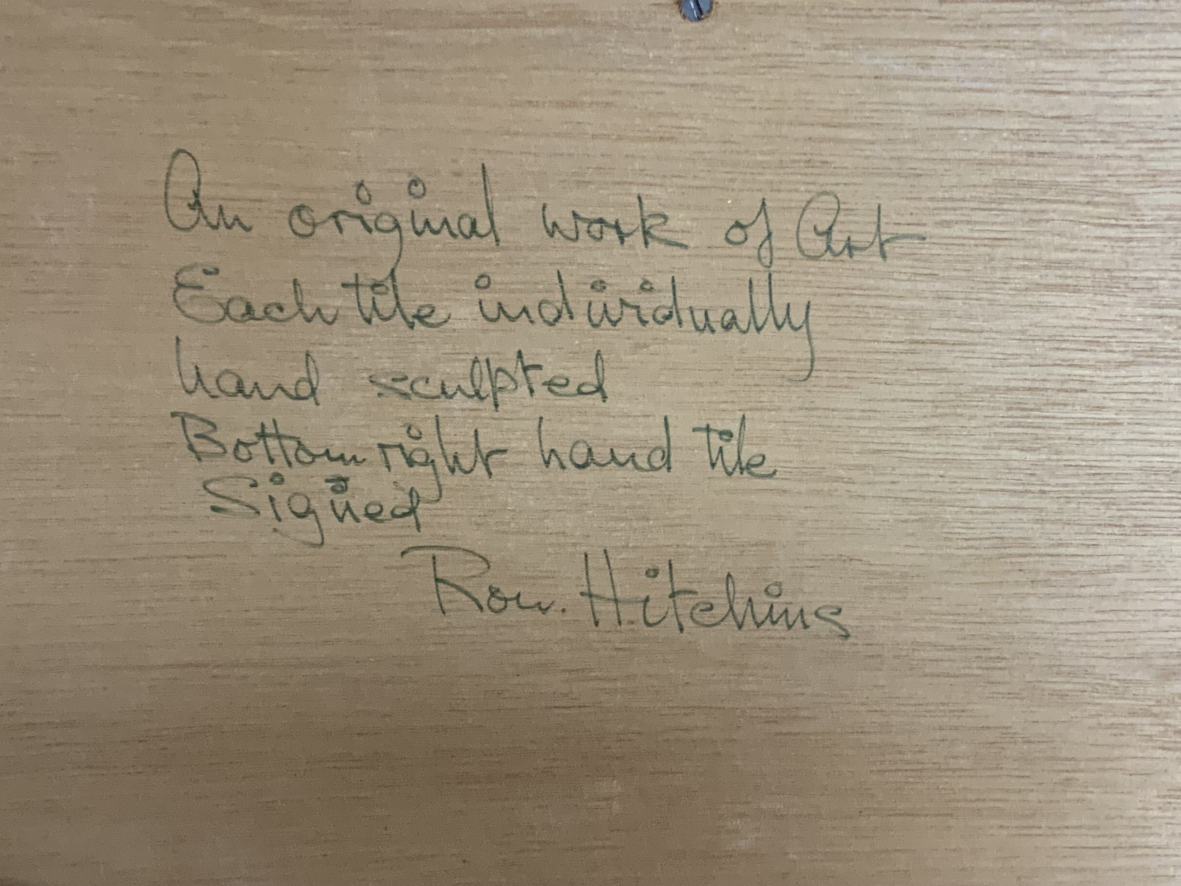 Ron HITCHINS (1926-2019) Abstract relief tiled wall mirror, mixed materials. 130cm x 104cm.