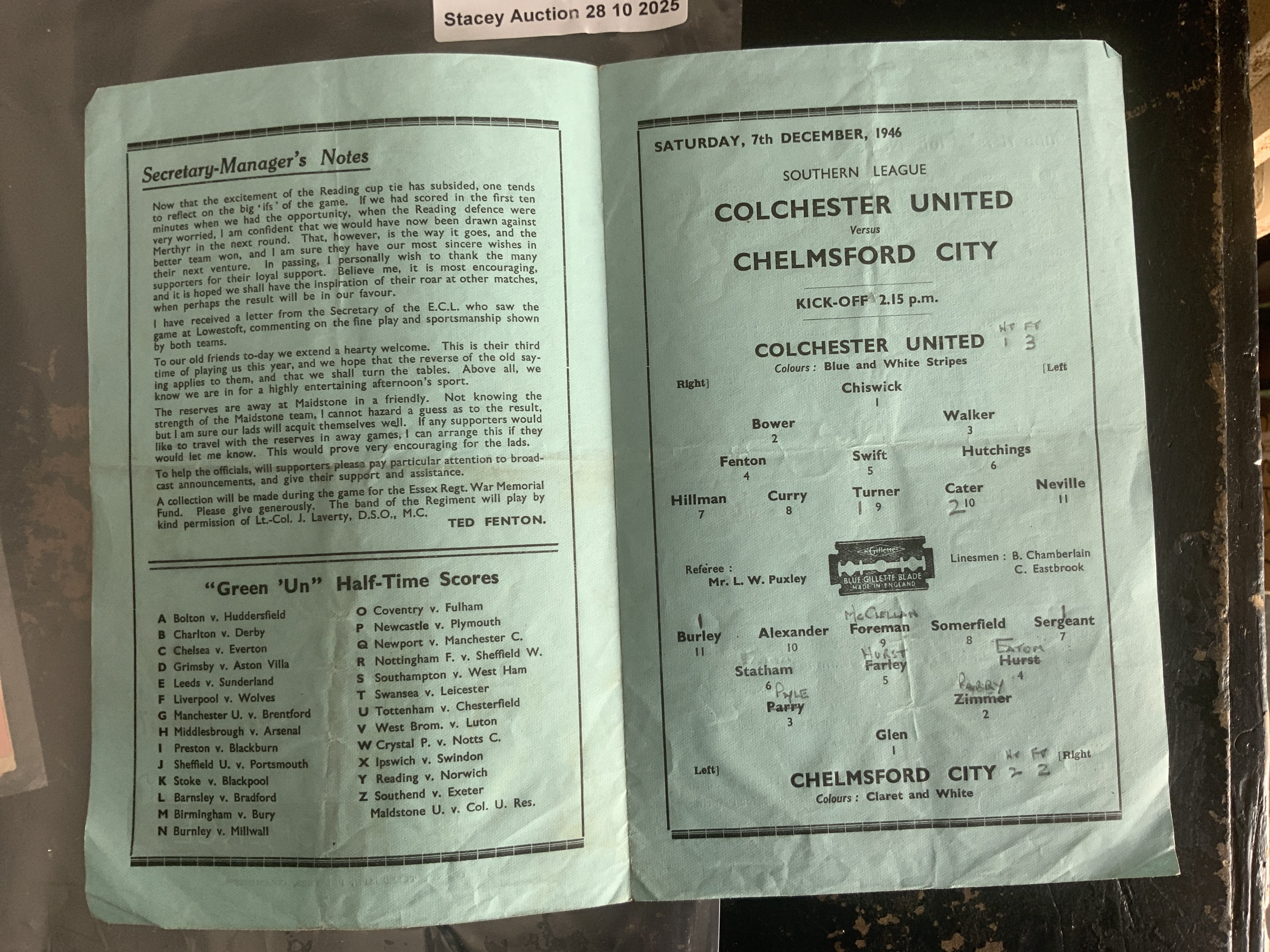 46/47 Colchester United v Chelmsford City Football Programme: Good condition 4 pager which is a Southern League programme with pencilled team changes.