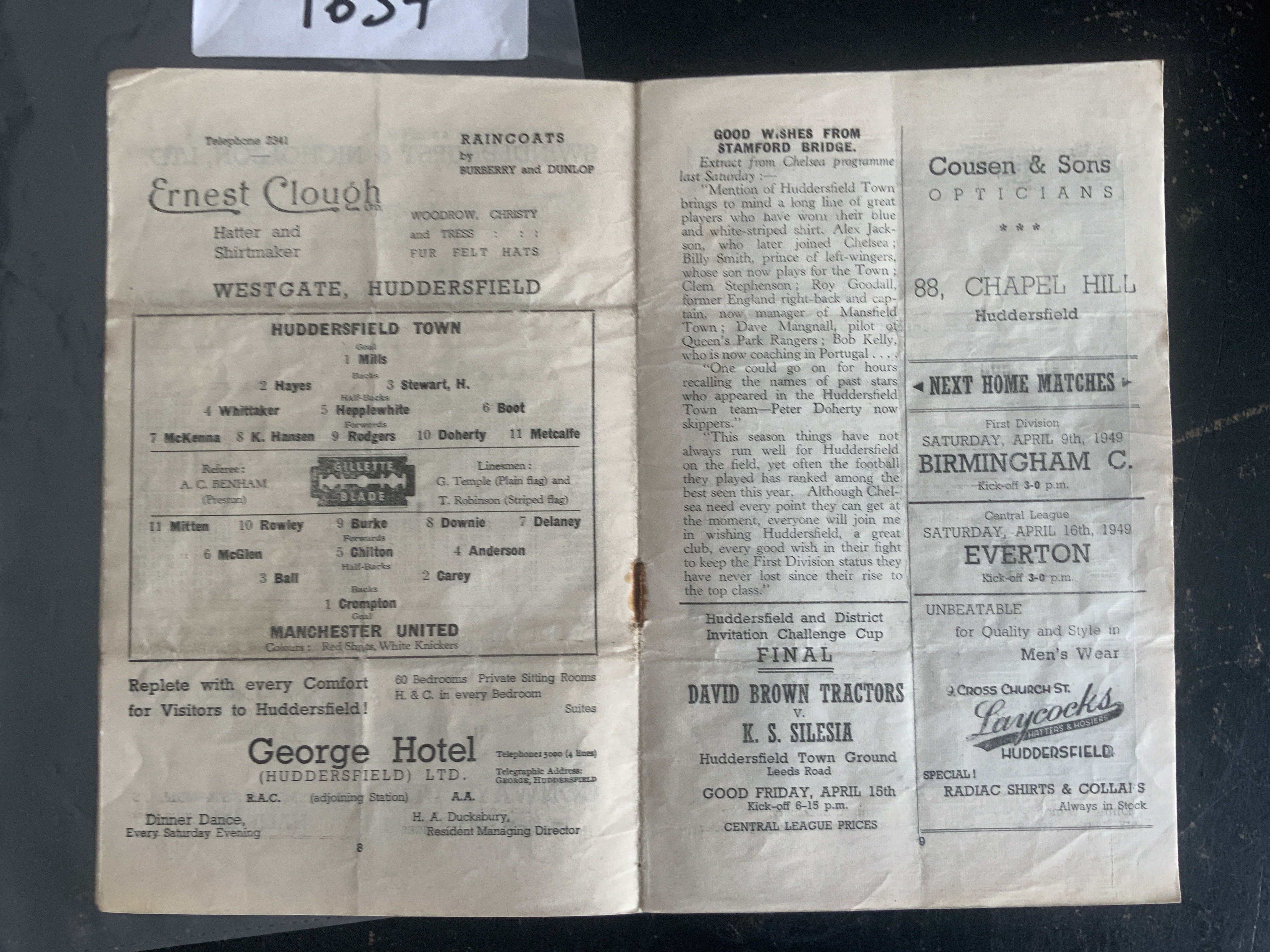 48/49 Huddersfield Town v Manchester United Football Programme: Good condition 1st Division programme with light fold. No team changes. Rusty staple holding firm.