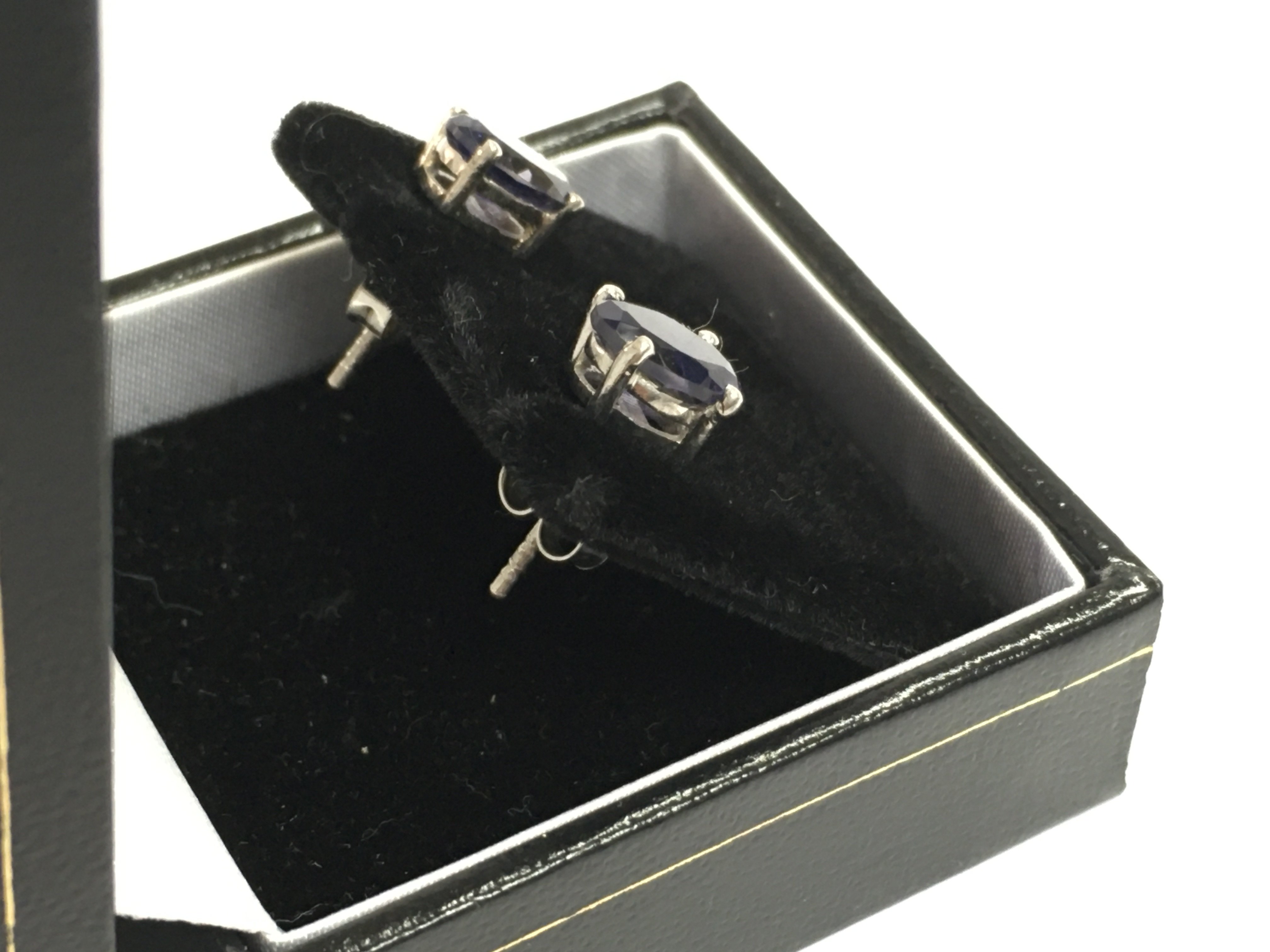 A pair of Iolite studs in silver with box. Postage B