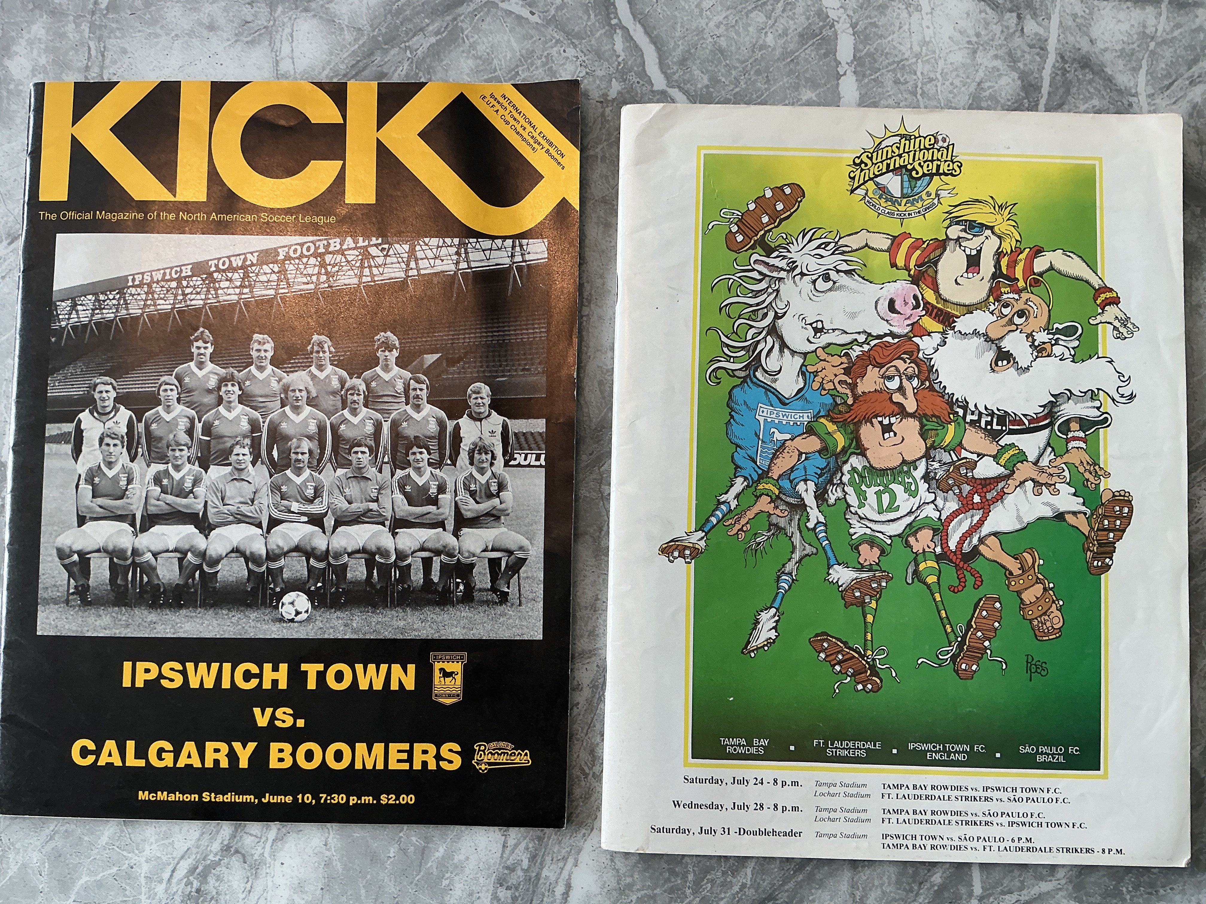 Ipswich USA Tour Football Programmes: 1981 Calgary Boomers and 1982 Tampa Bay. Very good. (2)