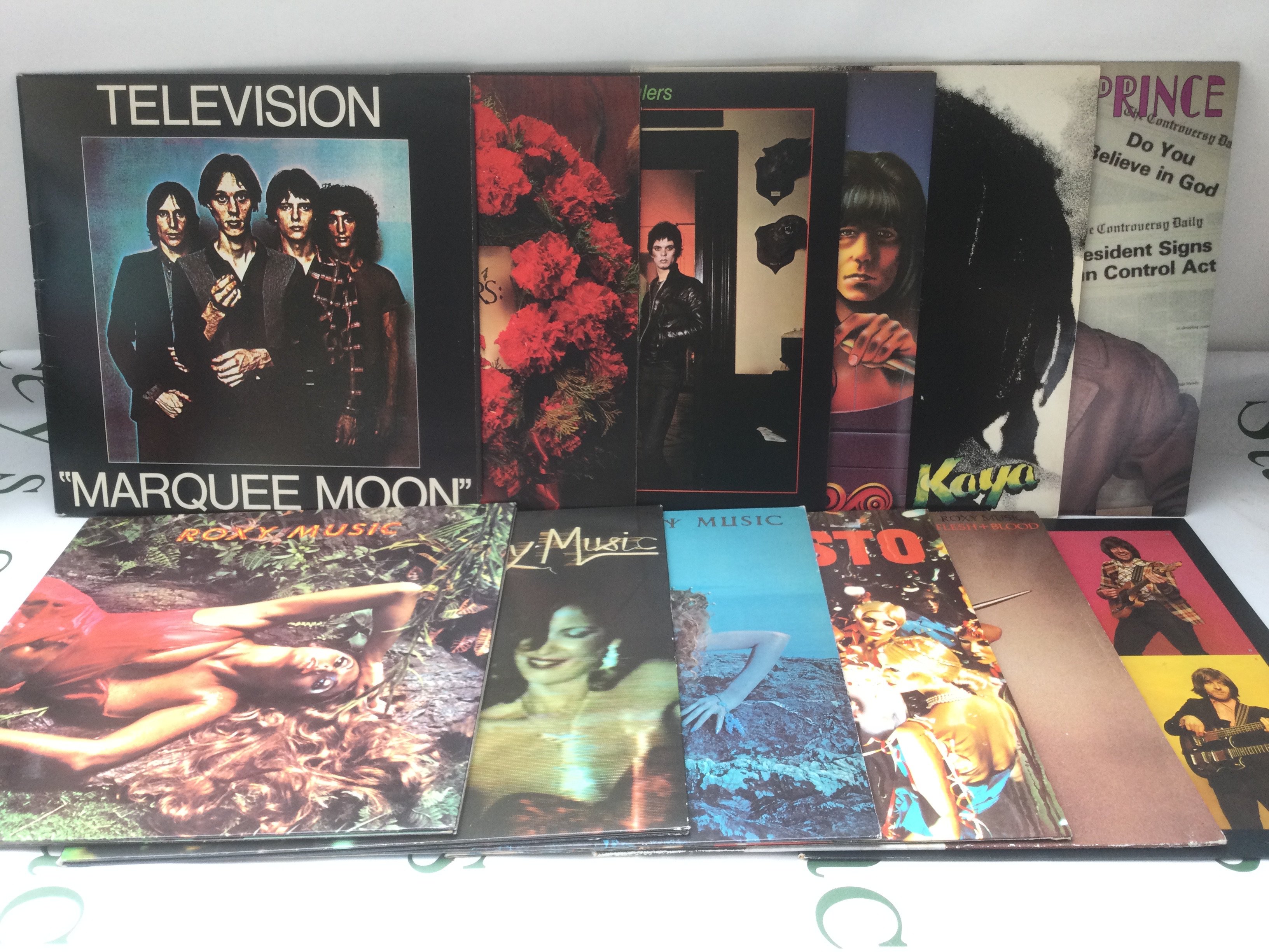 Twelve rock and pop LPs by various artists including Television, Roxy Music, Prince and others.