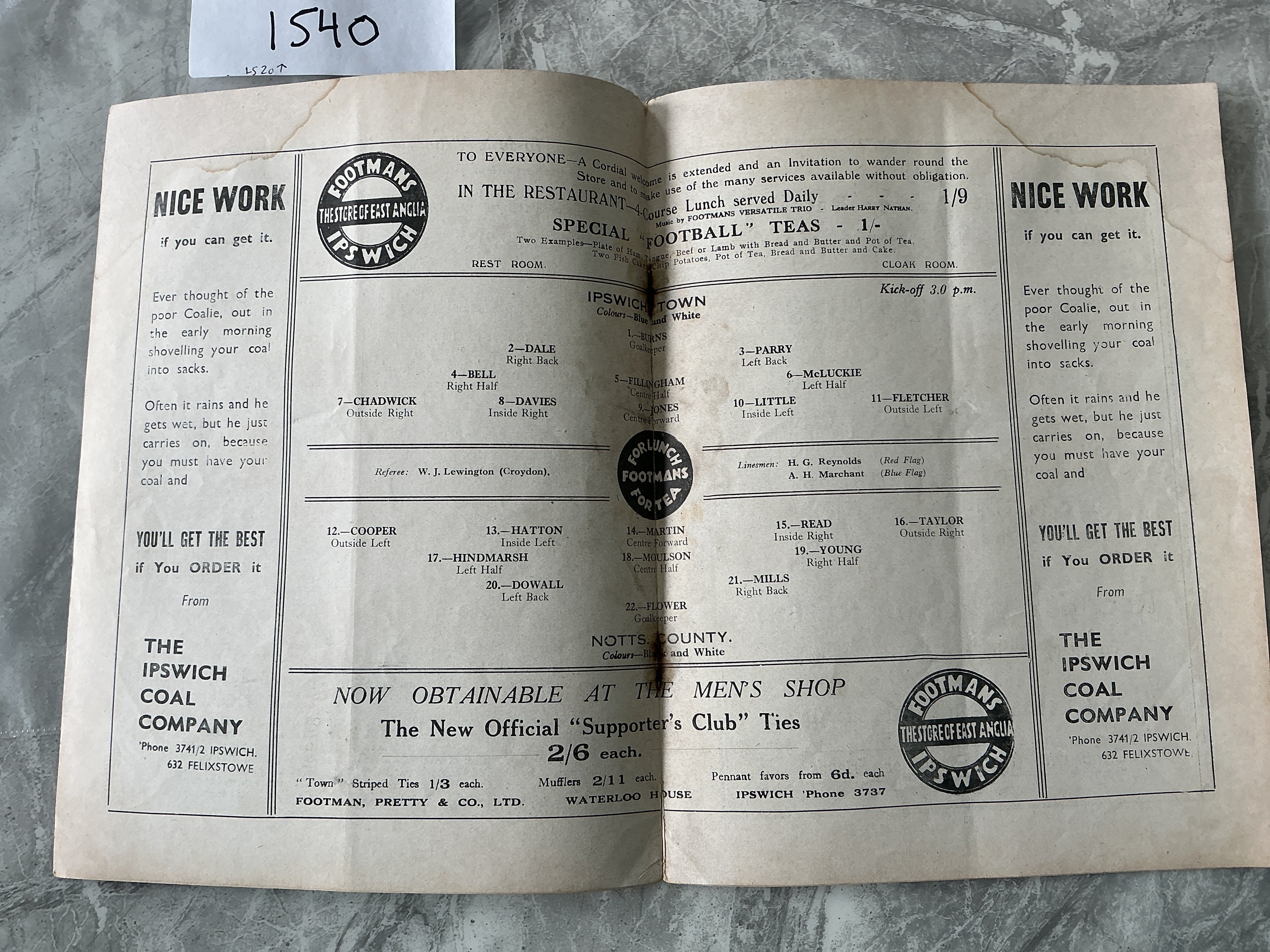 38/39 Ipswich v Notts County Football Programme: 3rd Division 20 page programme in fair/good condition. Rusty staples holding firm.
