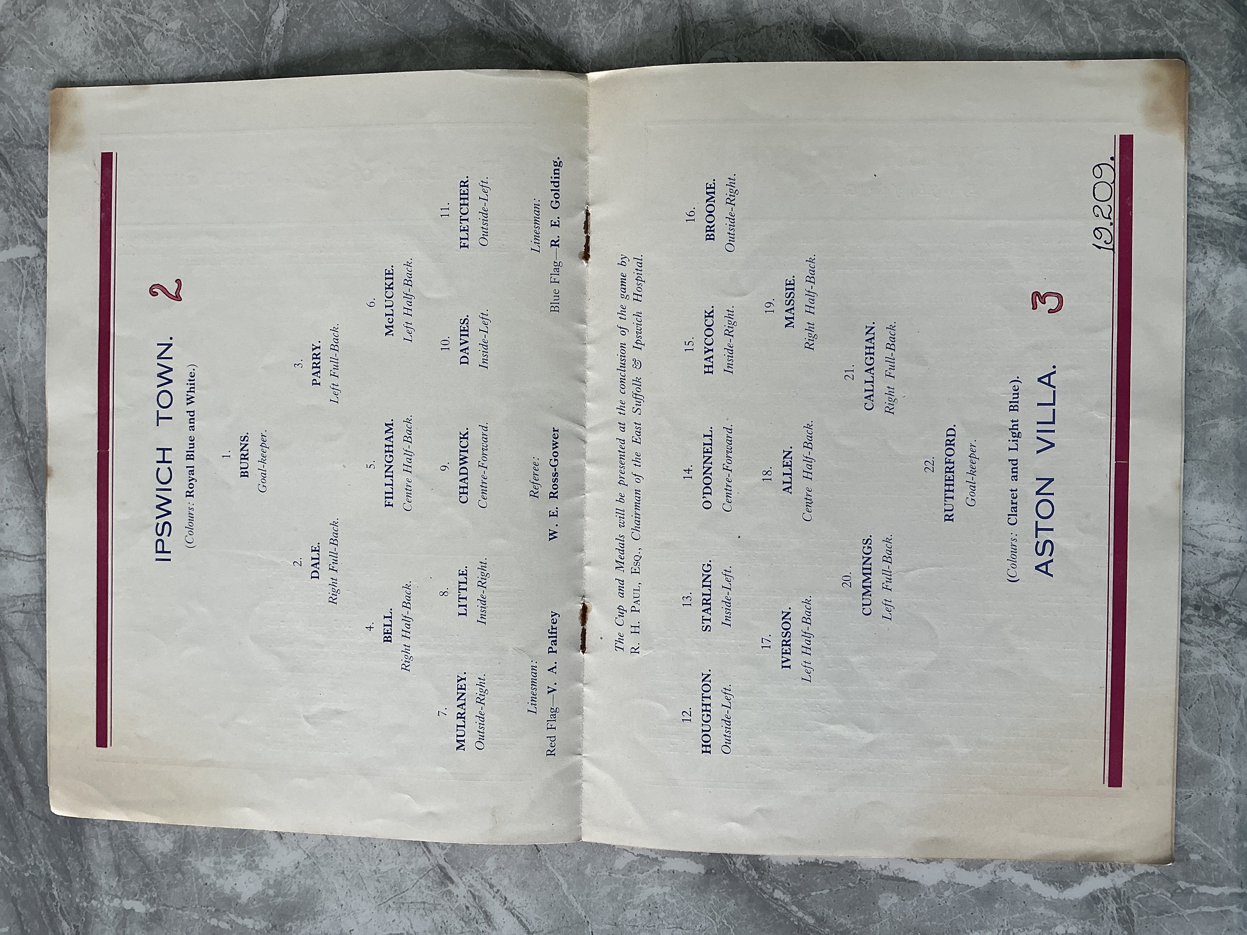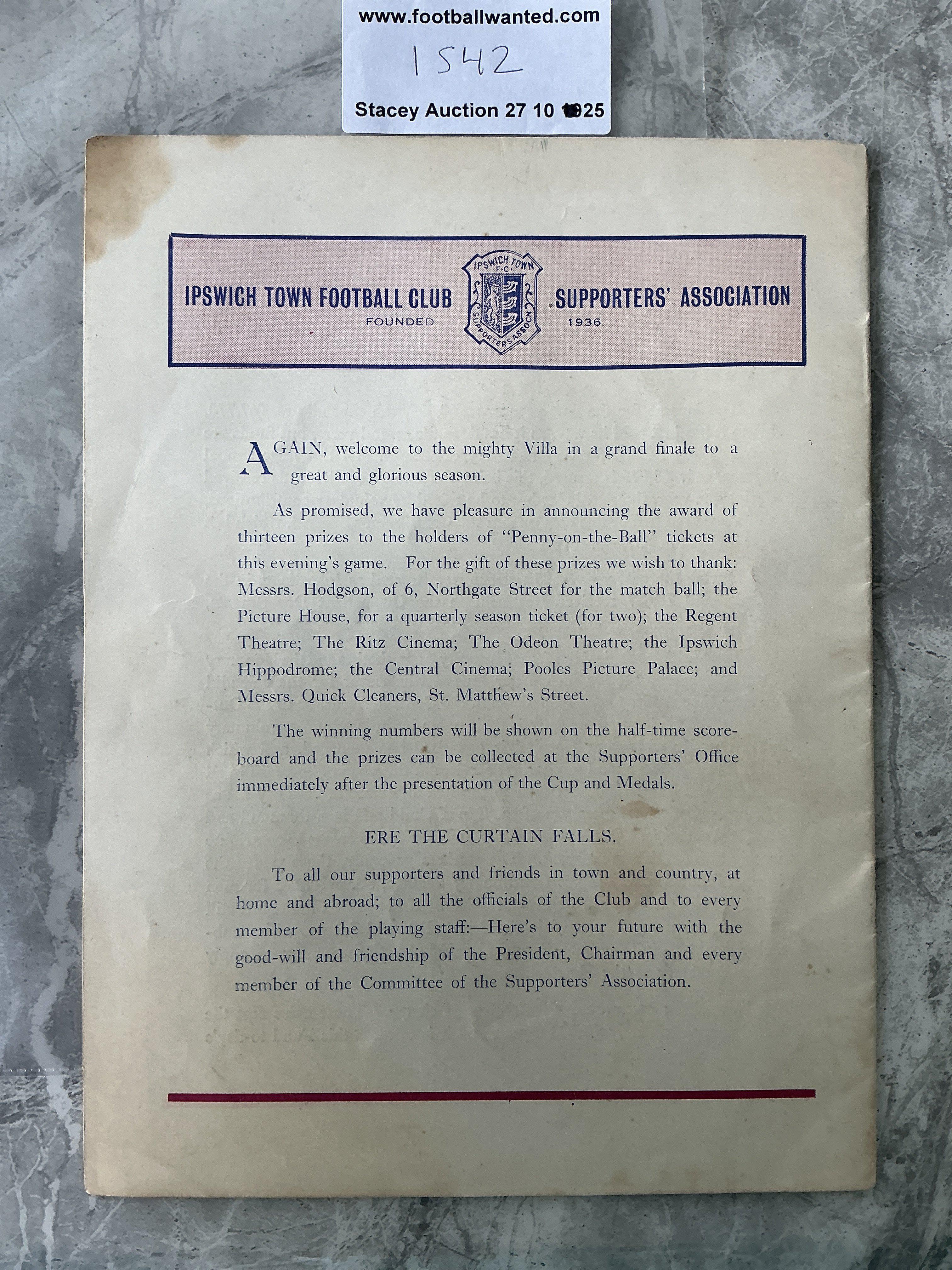 38/39 Ipswich v Aston Villa Hospital Cup Football Programme: 3rd Division 20 page programme in fair/good condition. Rusty staples holding firm.