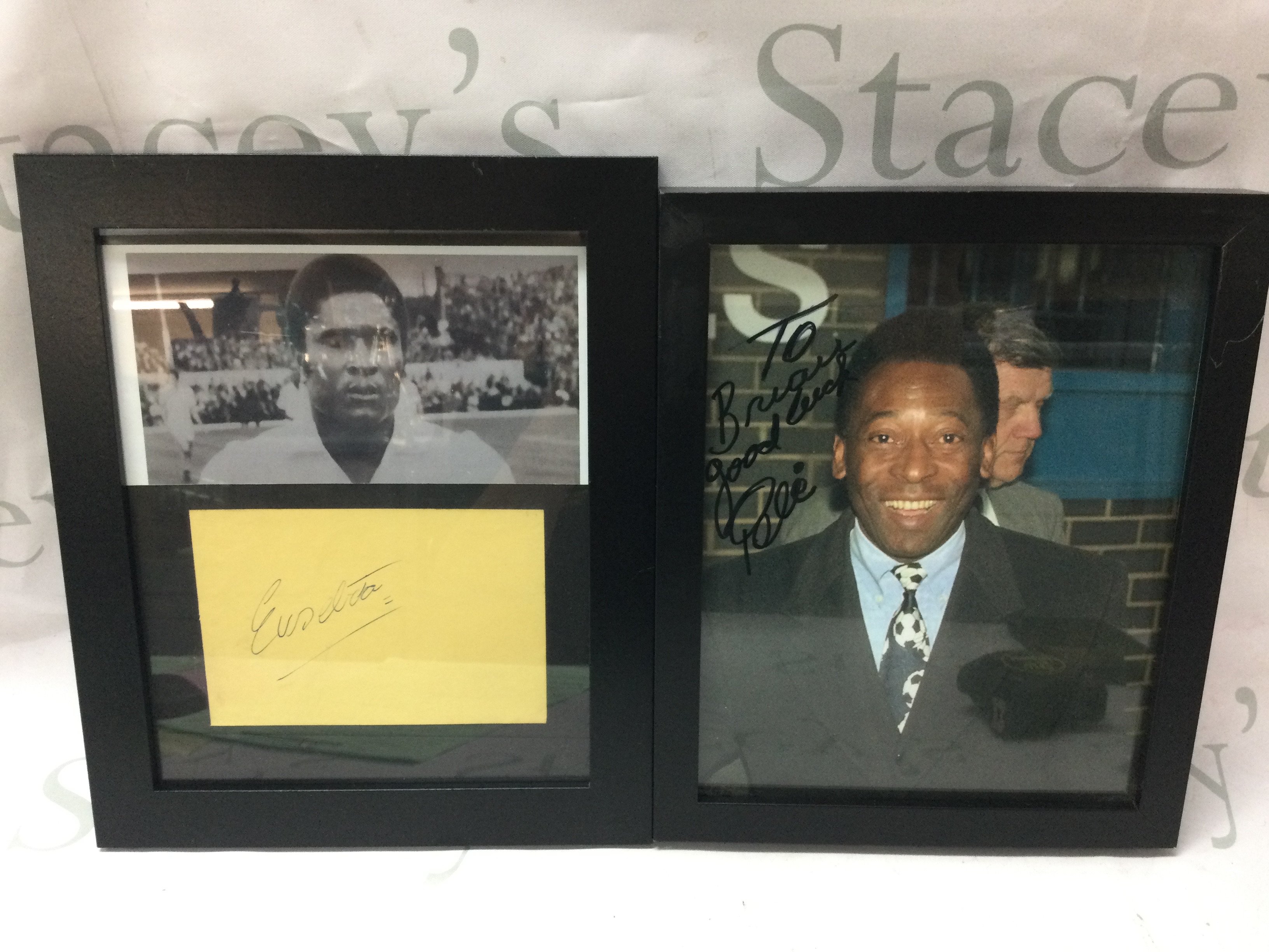 Framed signed football autographs Eusebio da Silva Ferreira And pele . Frame dimensions 25x30cm & 23.5x29cm