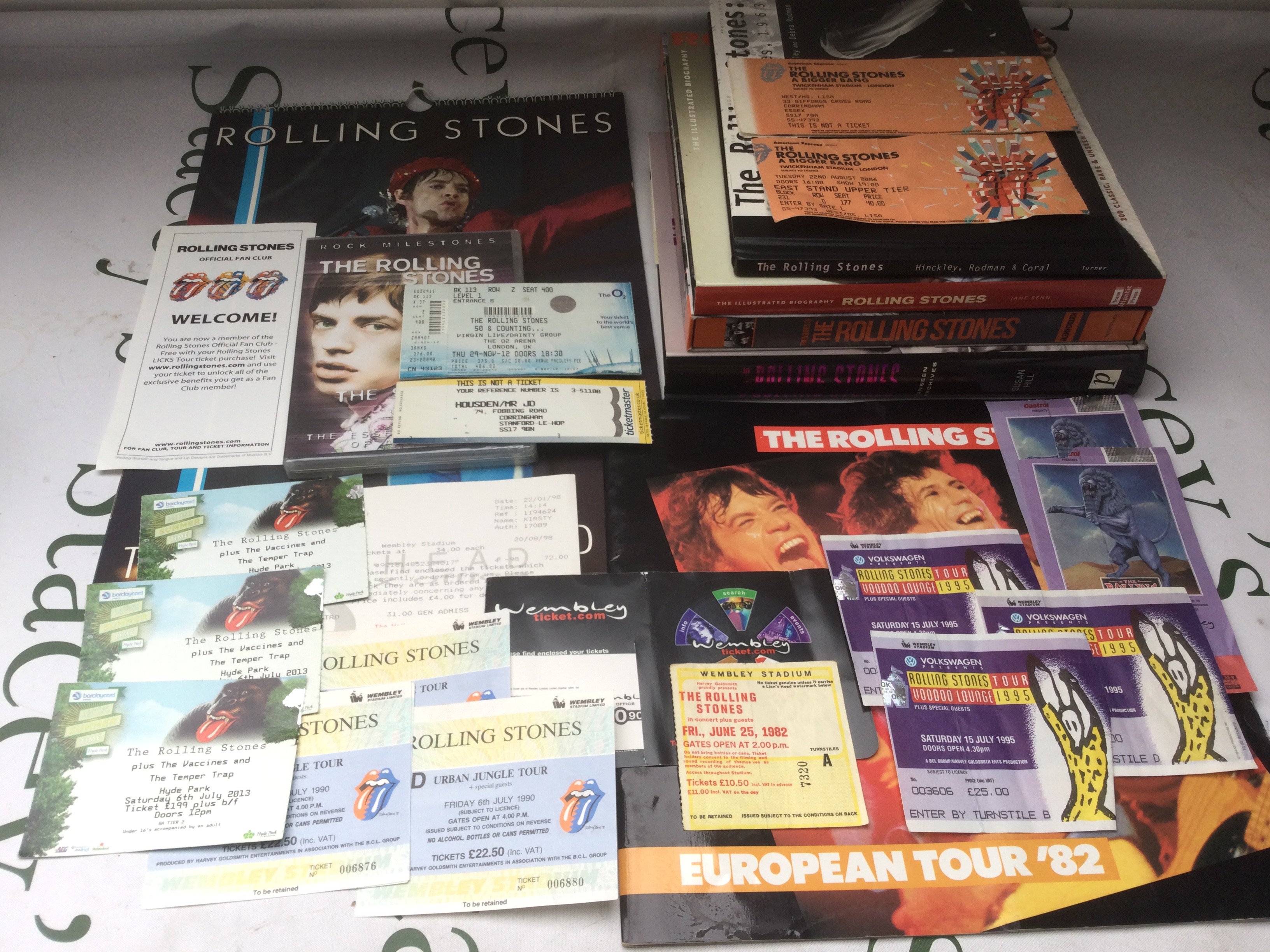 A collection of Rolling Stones gig tickets, 1982 tour brochure, books etc.