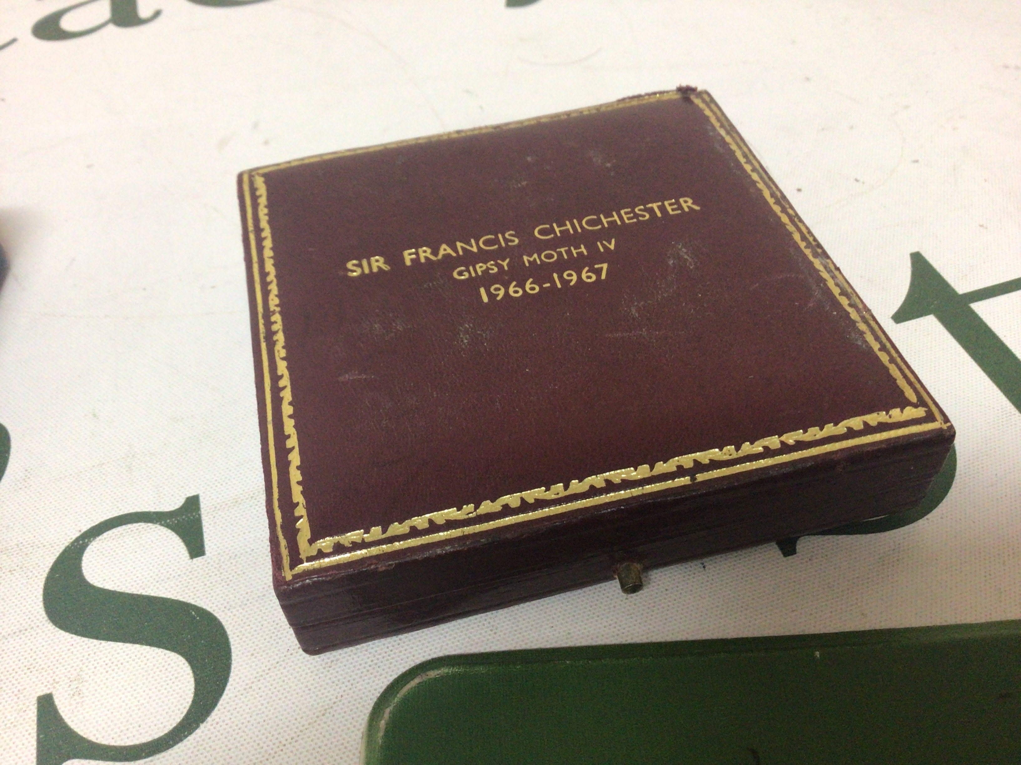 A silver Queen Mum commemorative 1980 medal made by Spinks 82g Sterling Silver and a limited edition Silver Sir Francis Chichester Gypsy Moth IV Airanortrcal Medallion with signed certification. (2)