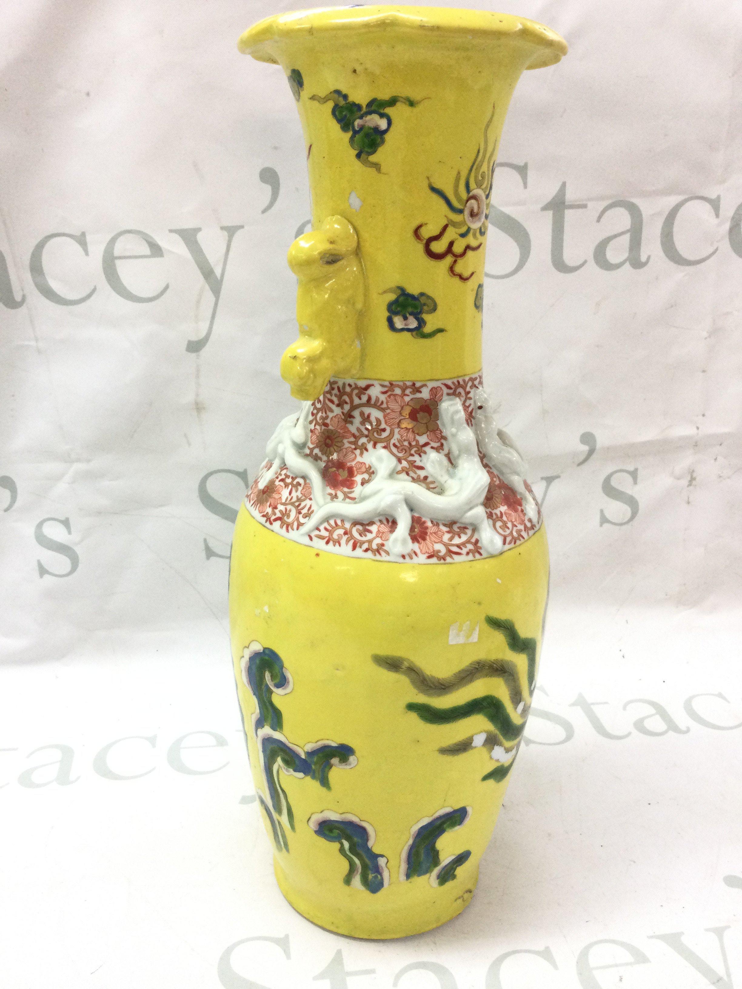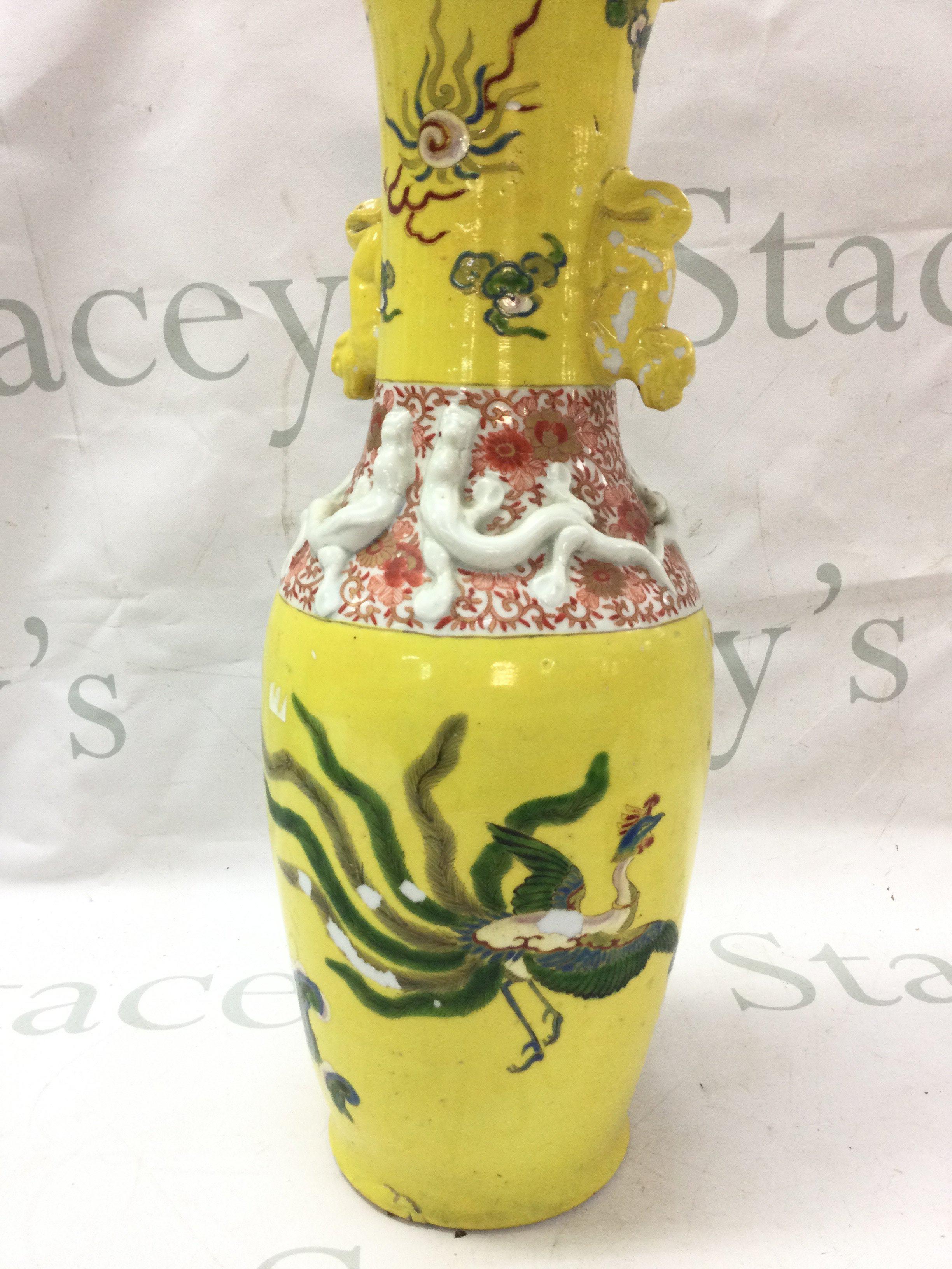 A Chinese yellow glaze dragon vase , 36cm tall. This lot cannot be posted