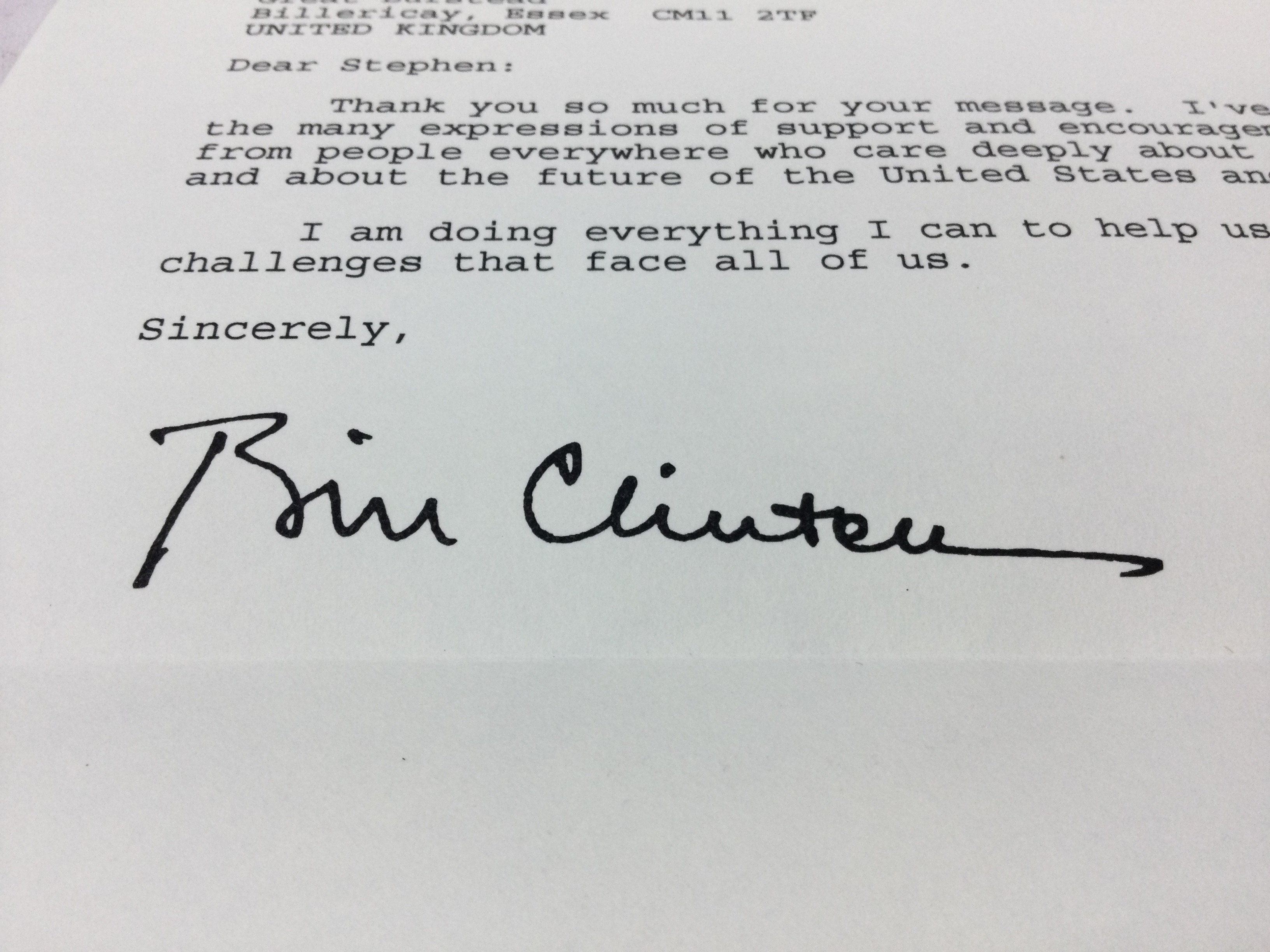 A Bill Clinton signed letter . Postage category B