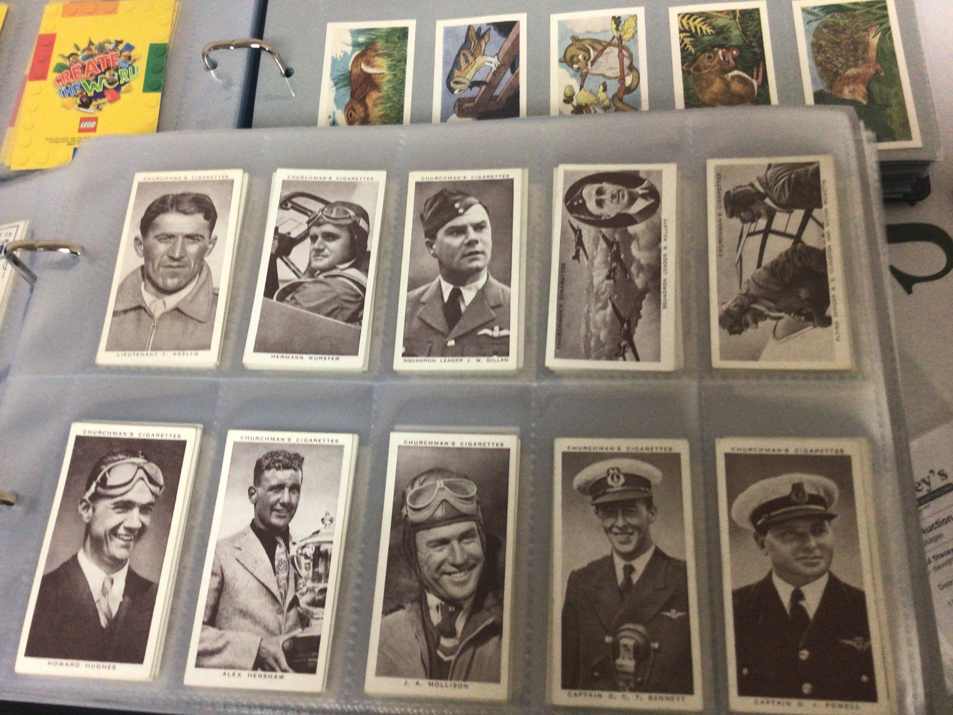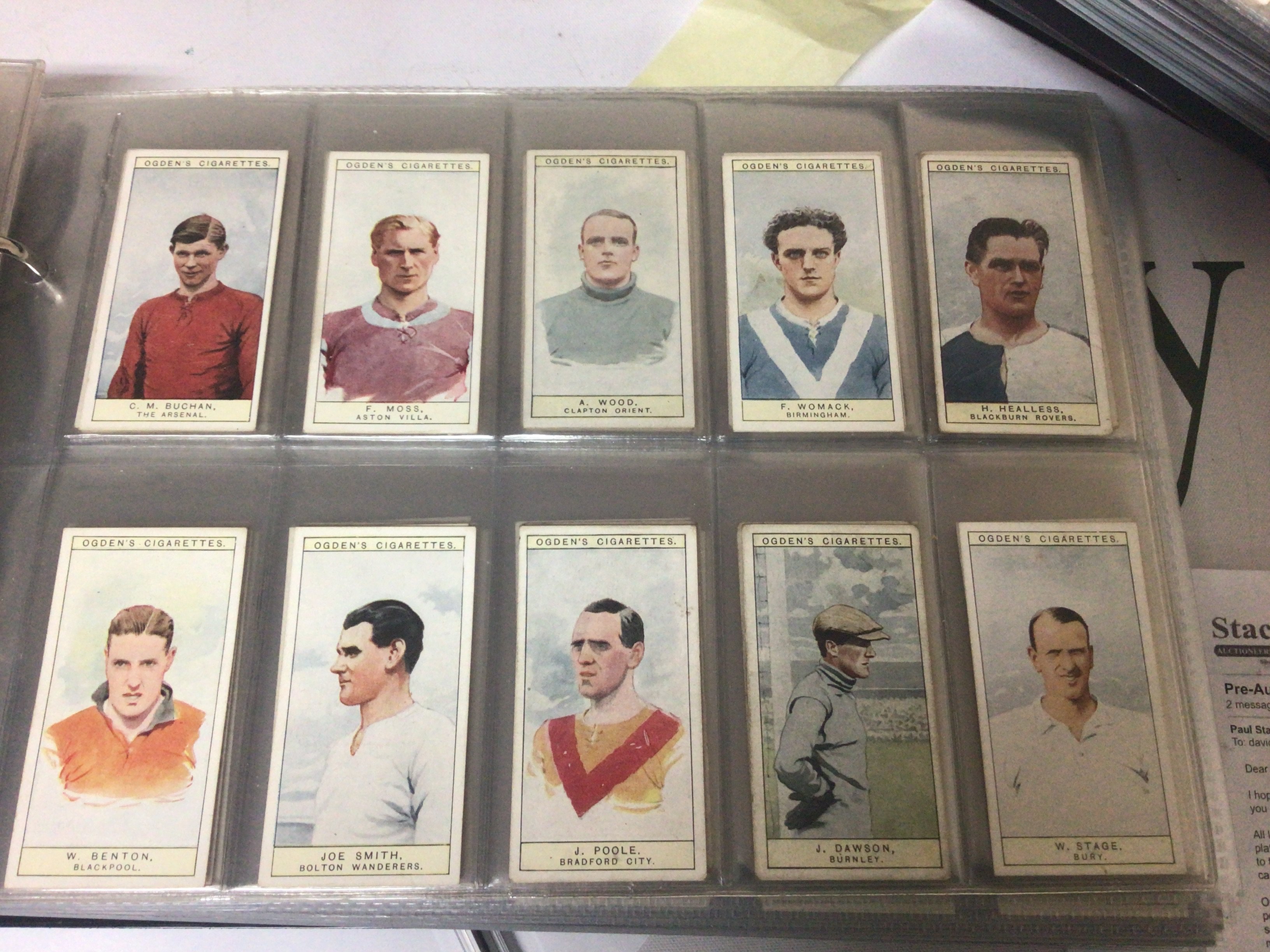 Five well presented albums of Vintage Cigarette cards and other cards. Including Vintage Ogdens Football captions other football cards Wills Aviation 1950s cricketers Turf race horses Churchmans racing Greyhounds and many others.