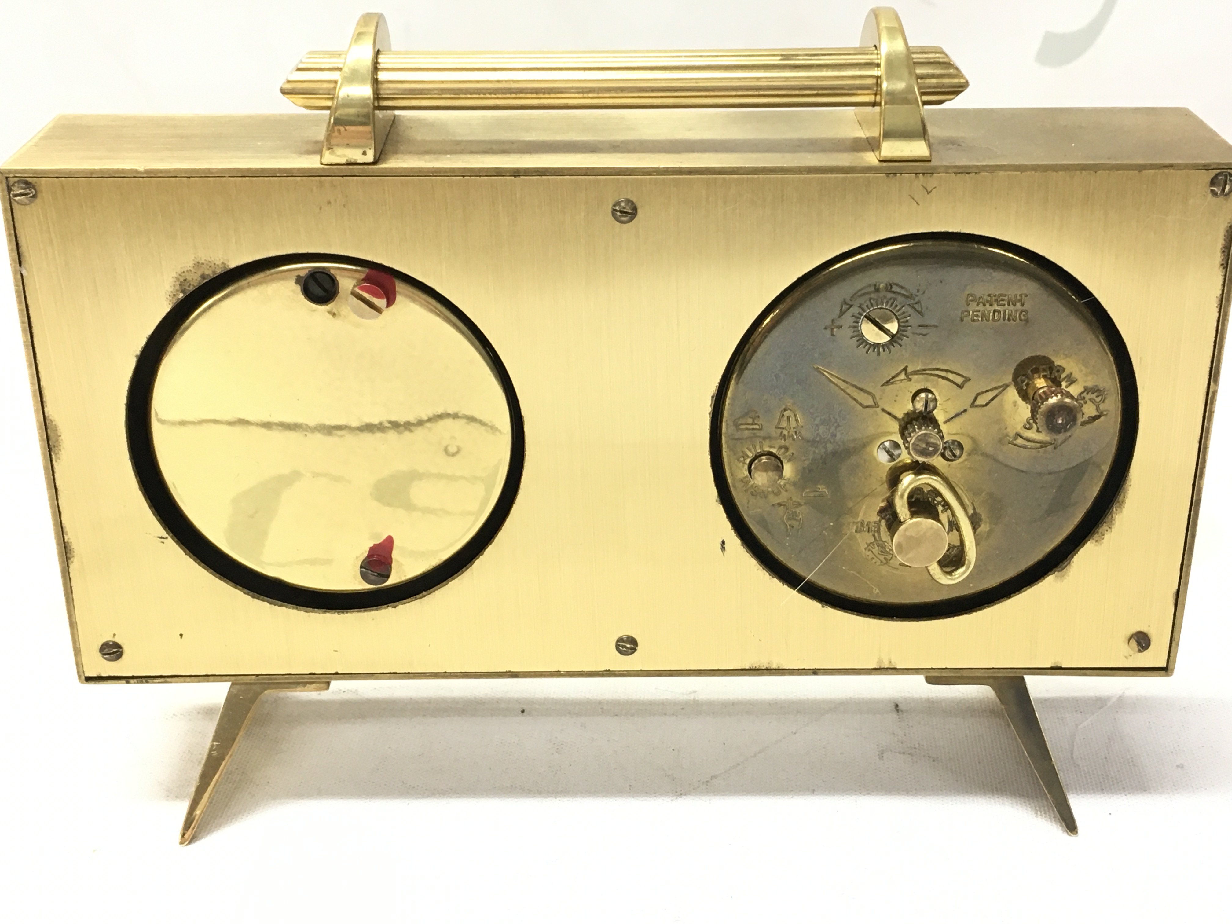 A vintage Swiza 8 day 7 jewels clock with mercury therometer barometer solid brass (working)