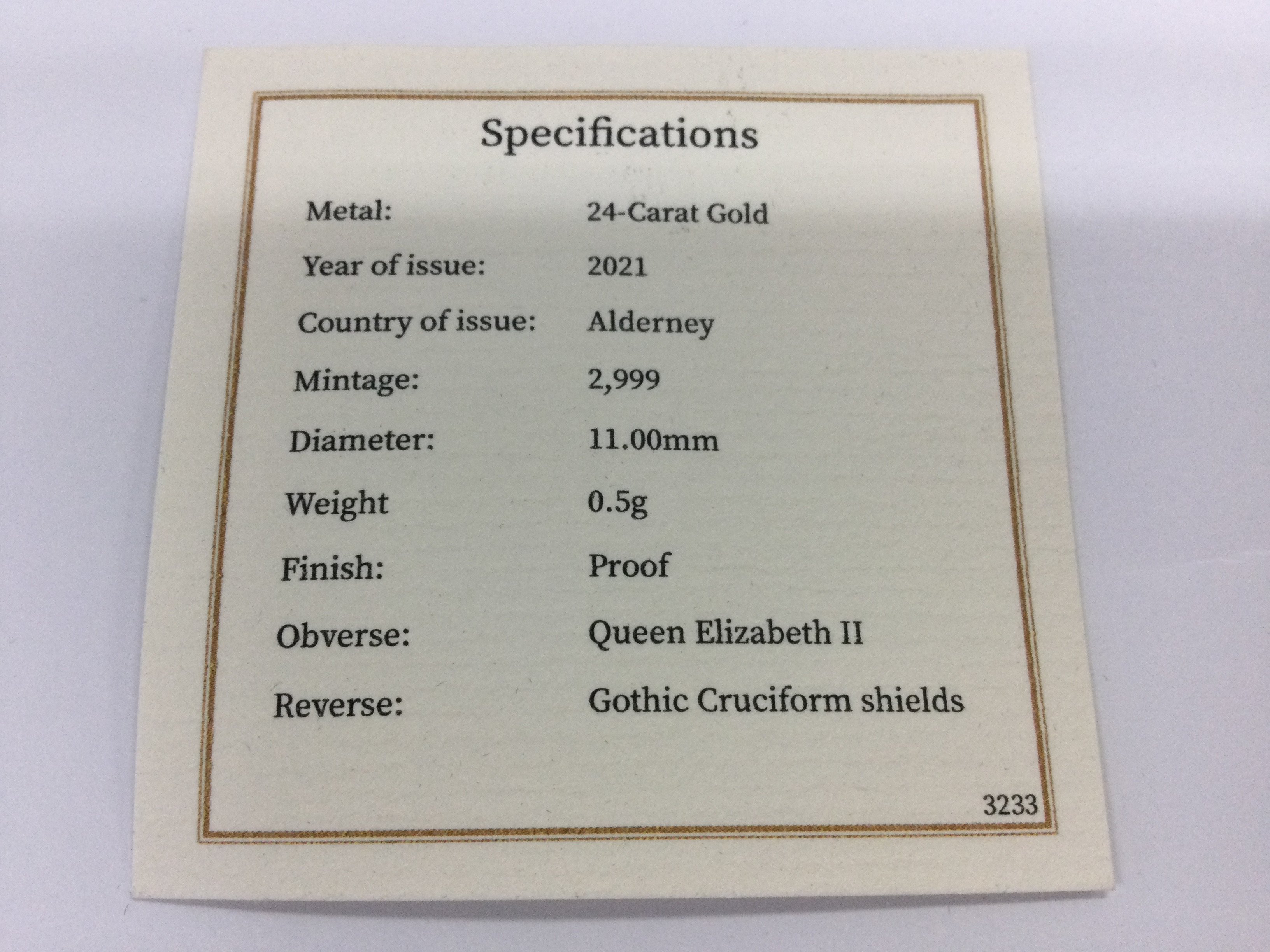 2021 gothic fine gold proof coin. 0.5g