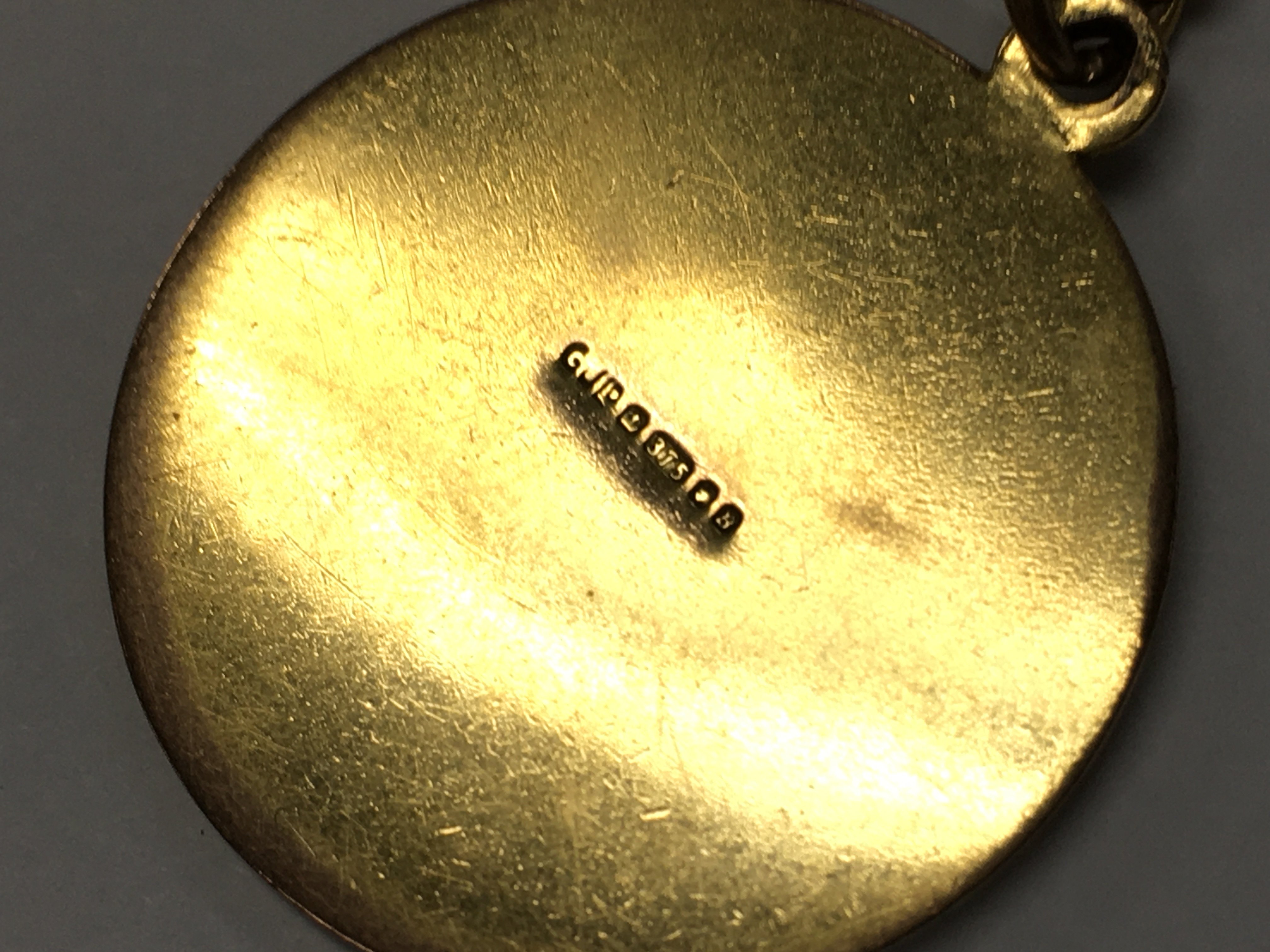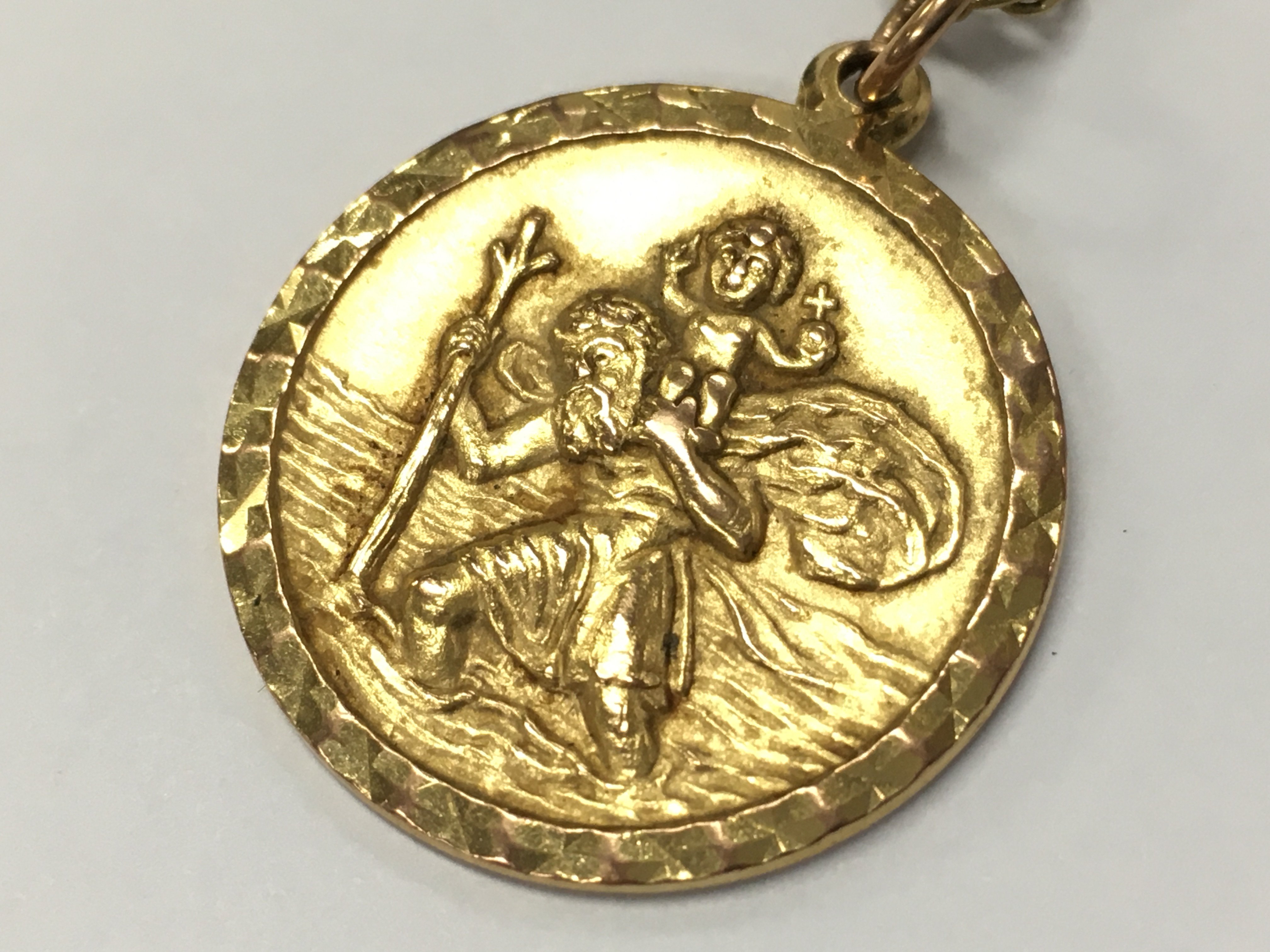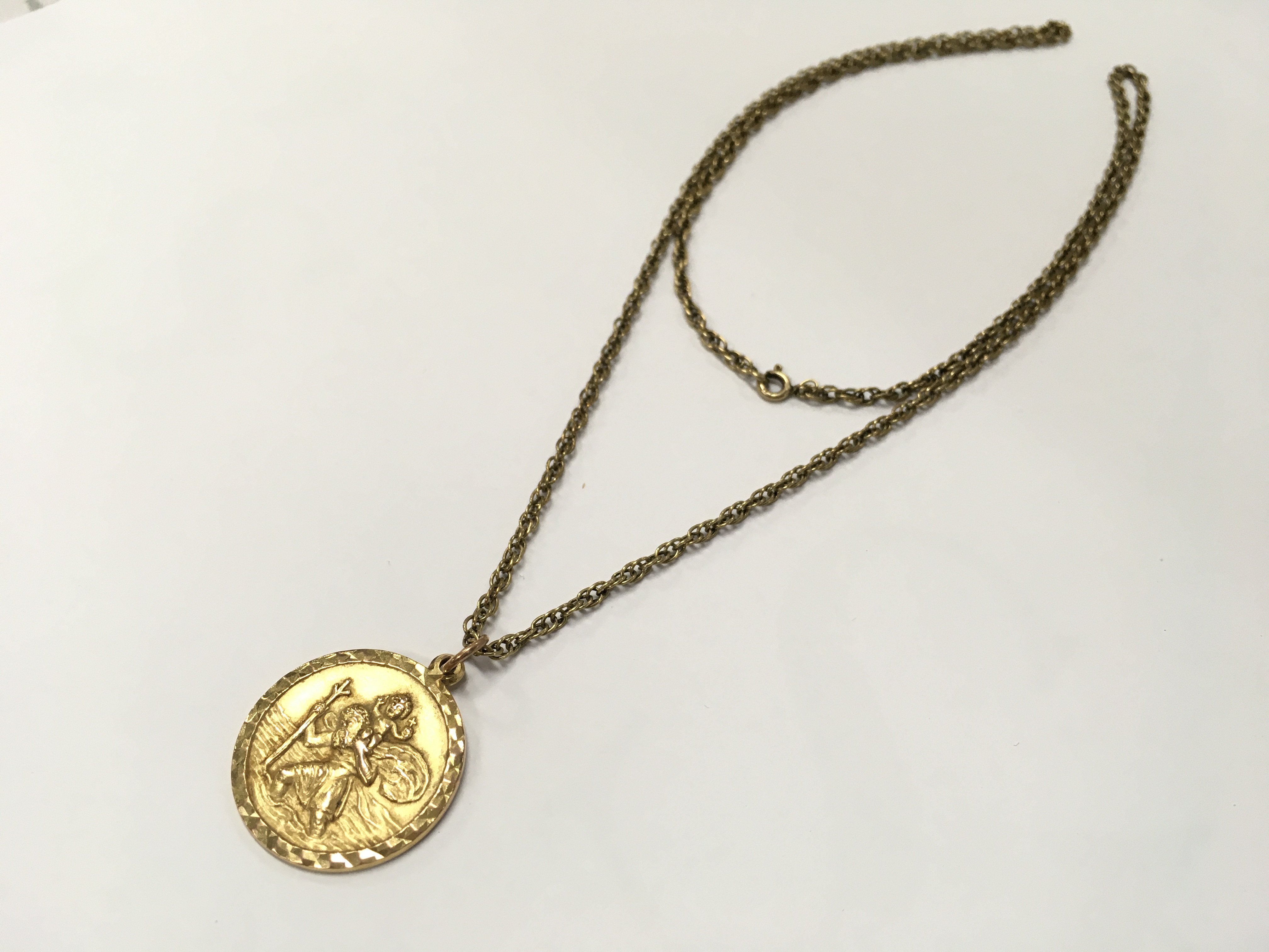 A 9 carat gold St Christopher pendant and chain , 13.2g total weight. Postage category a
