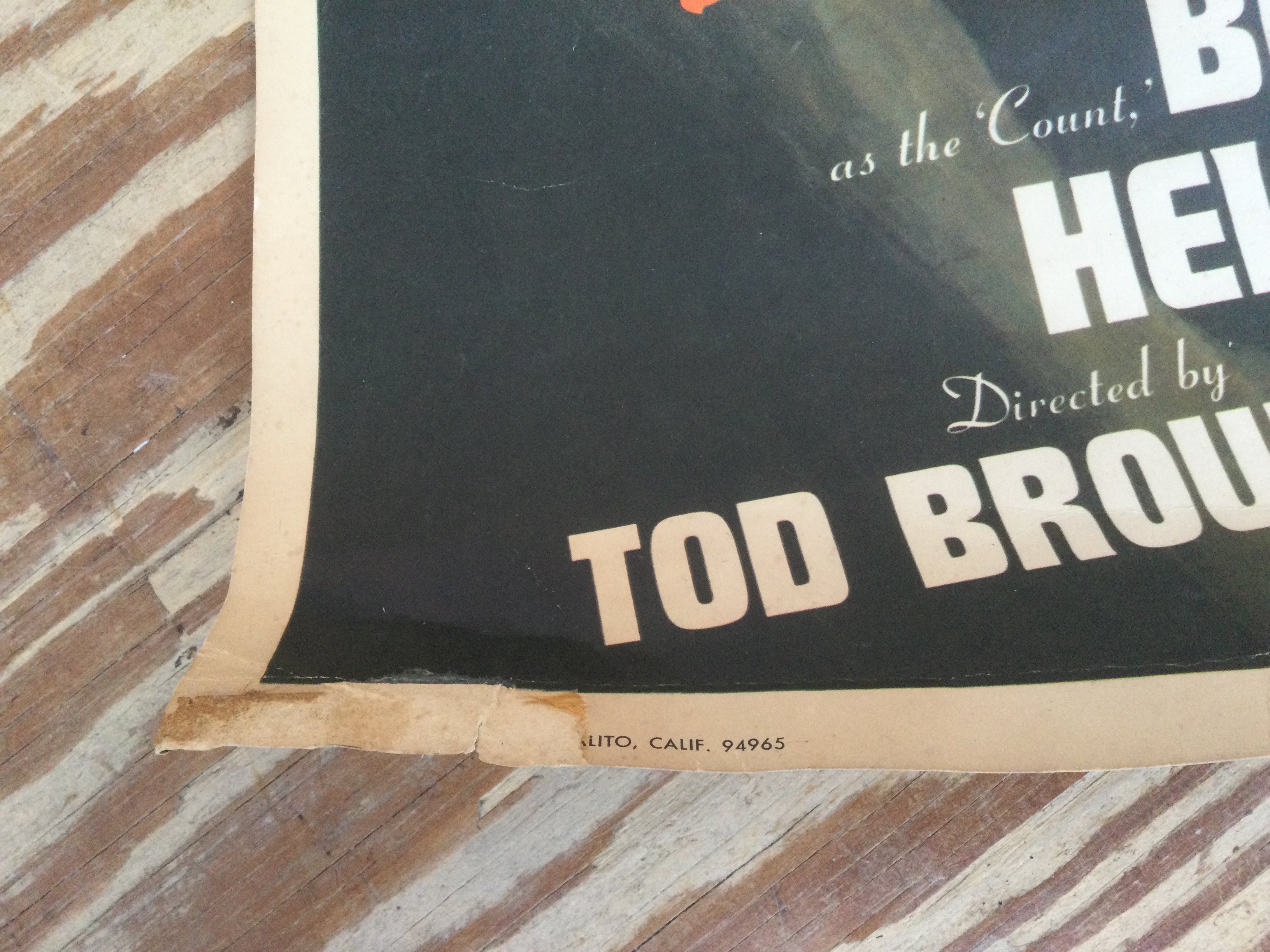 A circa 1970s reissued poster for Dracula starring Bela Lugosi, folded with tears and sellotape marks, approx 53cm x 73cm.