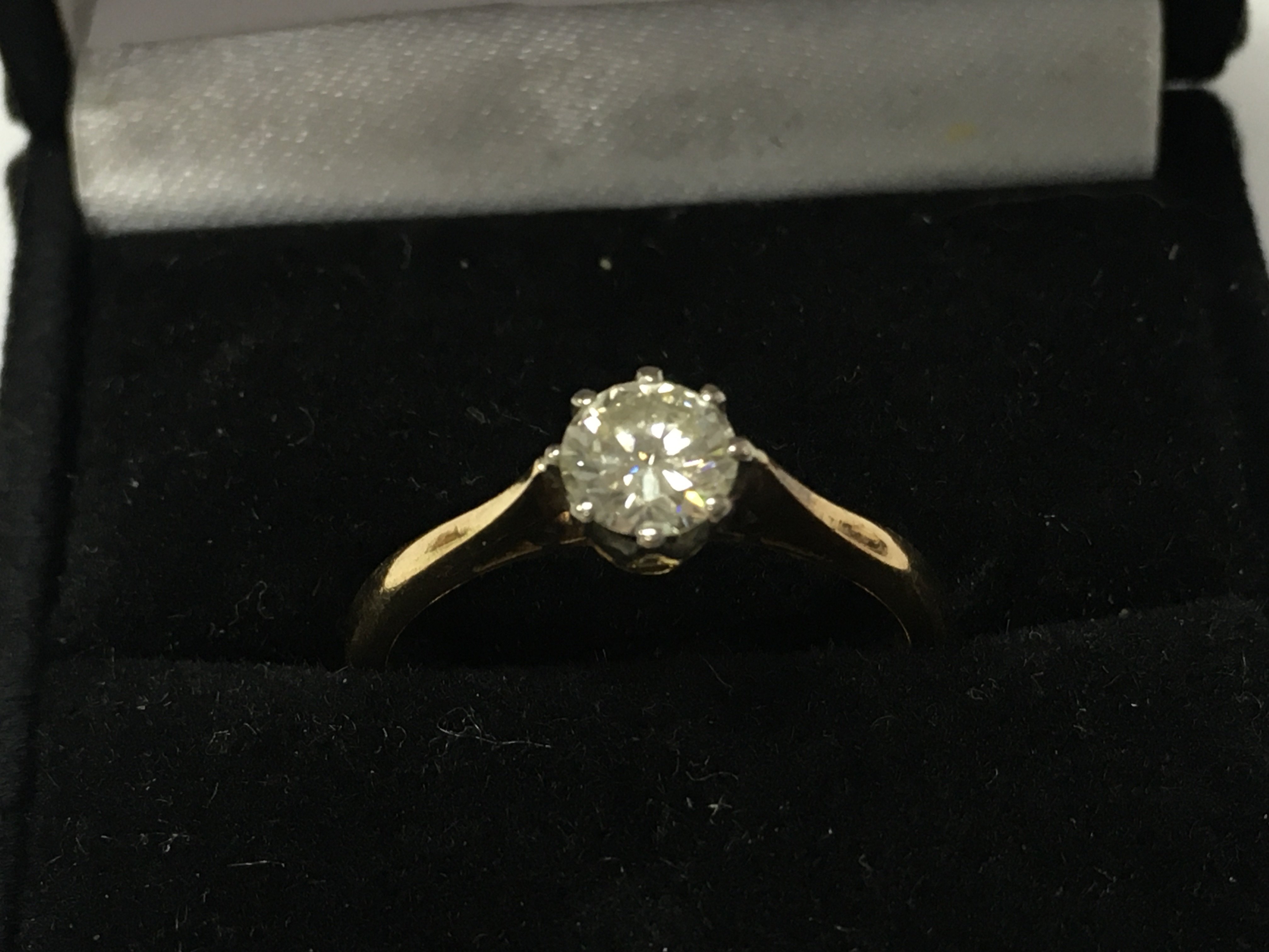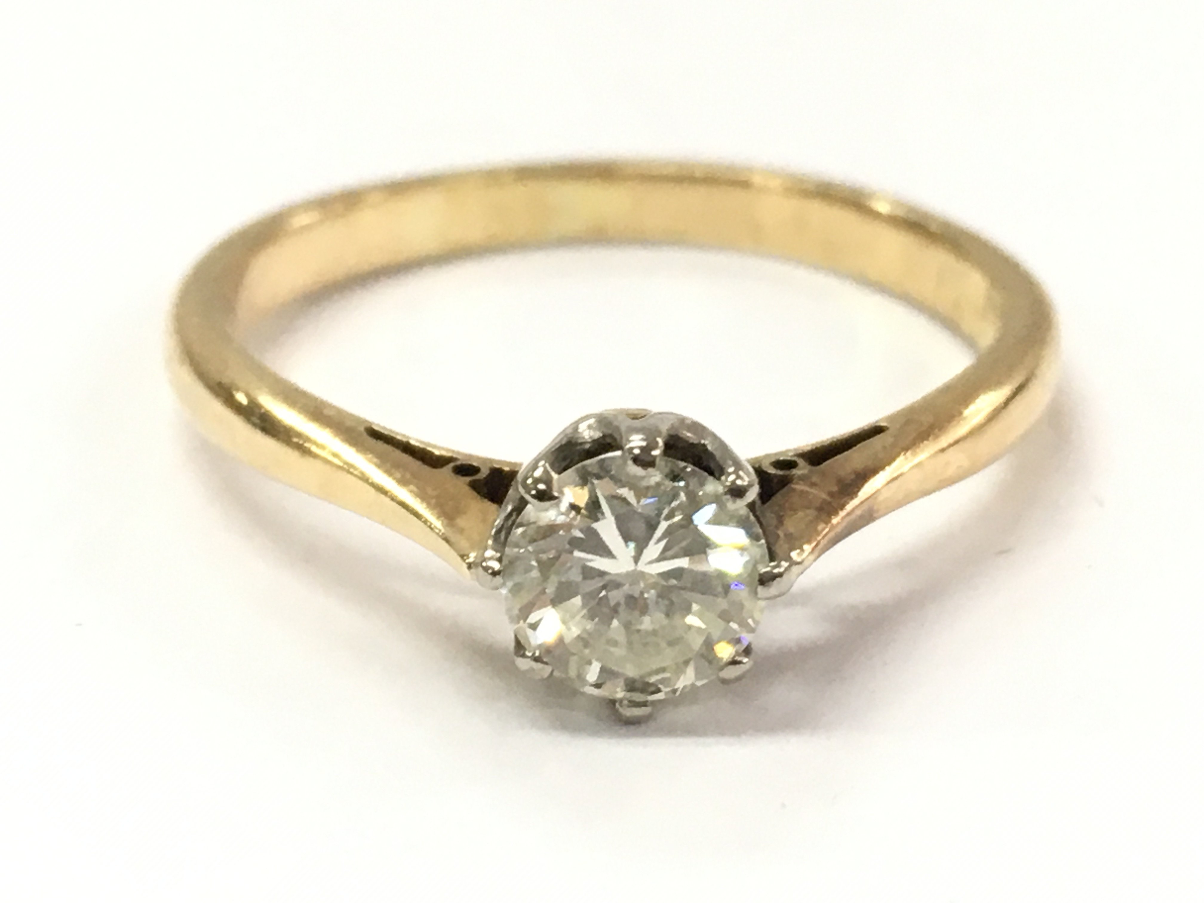 An unmarked 18ct diamond ring , 3.0g total weight Approx 60pts diamond . Ring size P. Postage category A