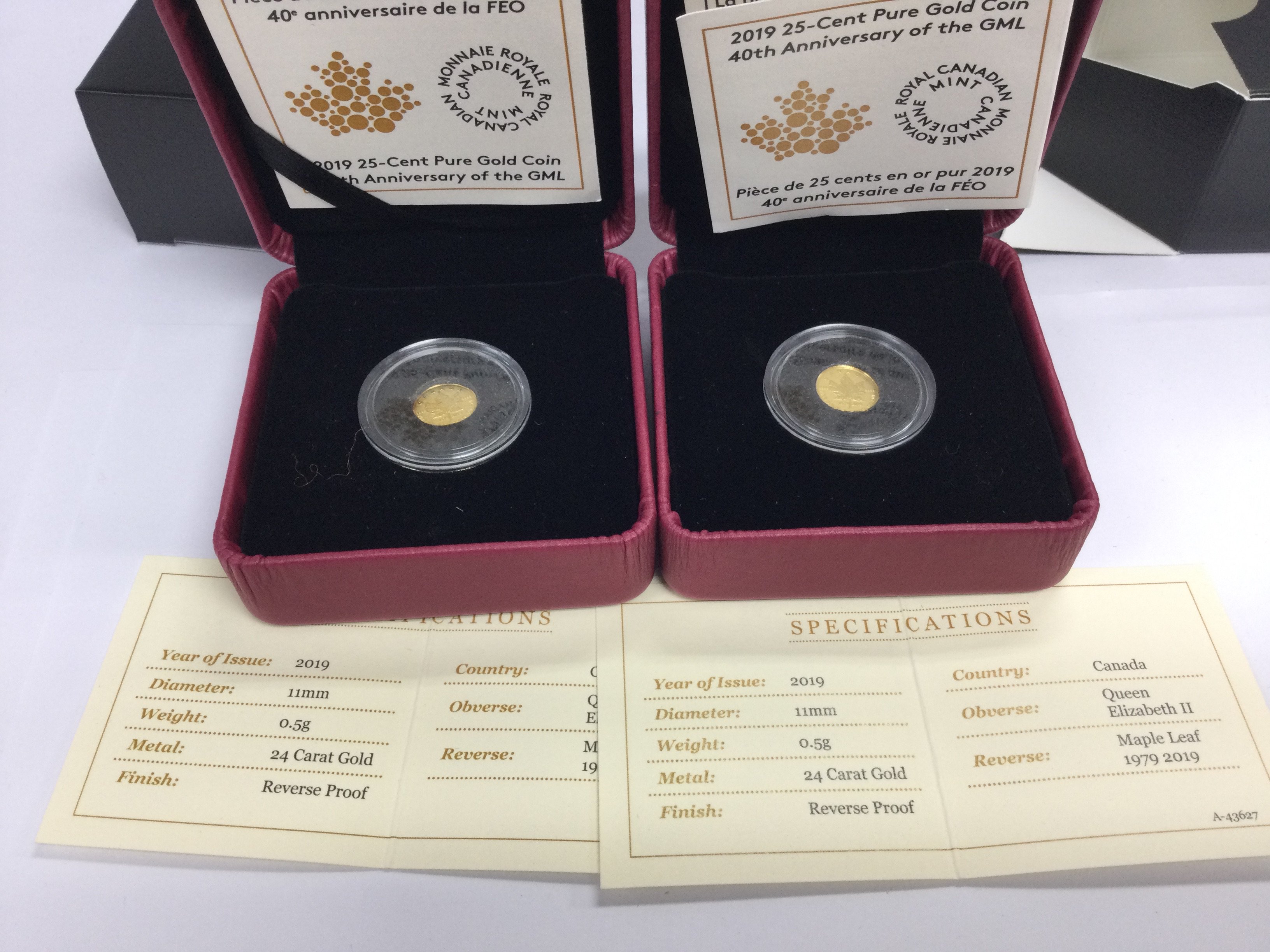 Two royal Canadian mint 0.5g gold coins. Postage B