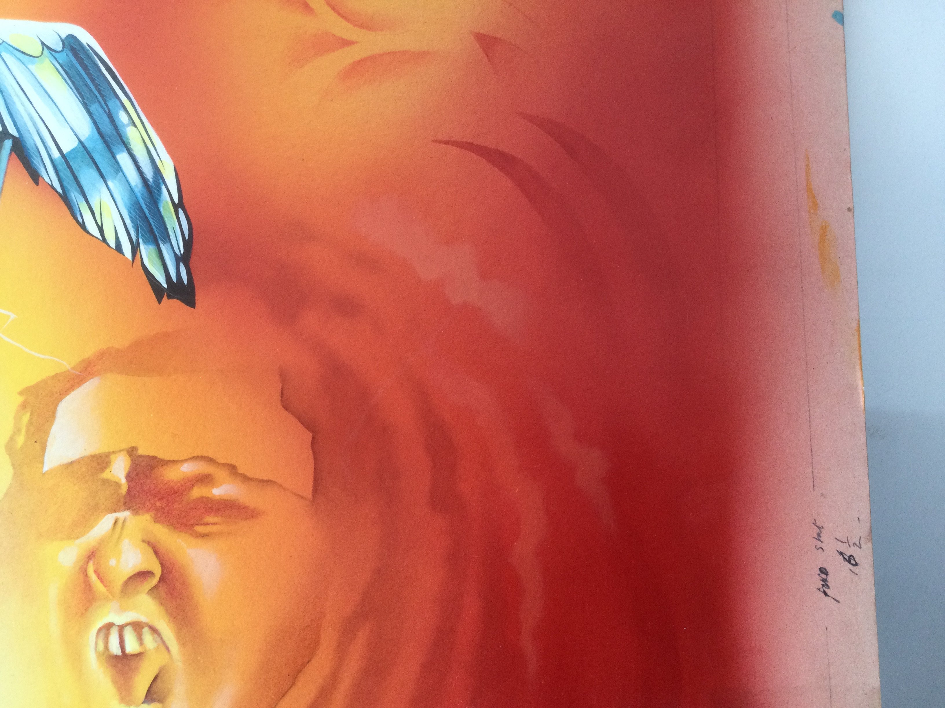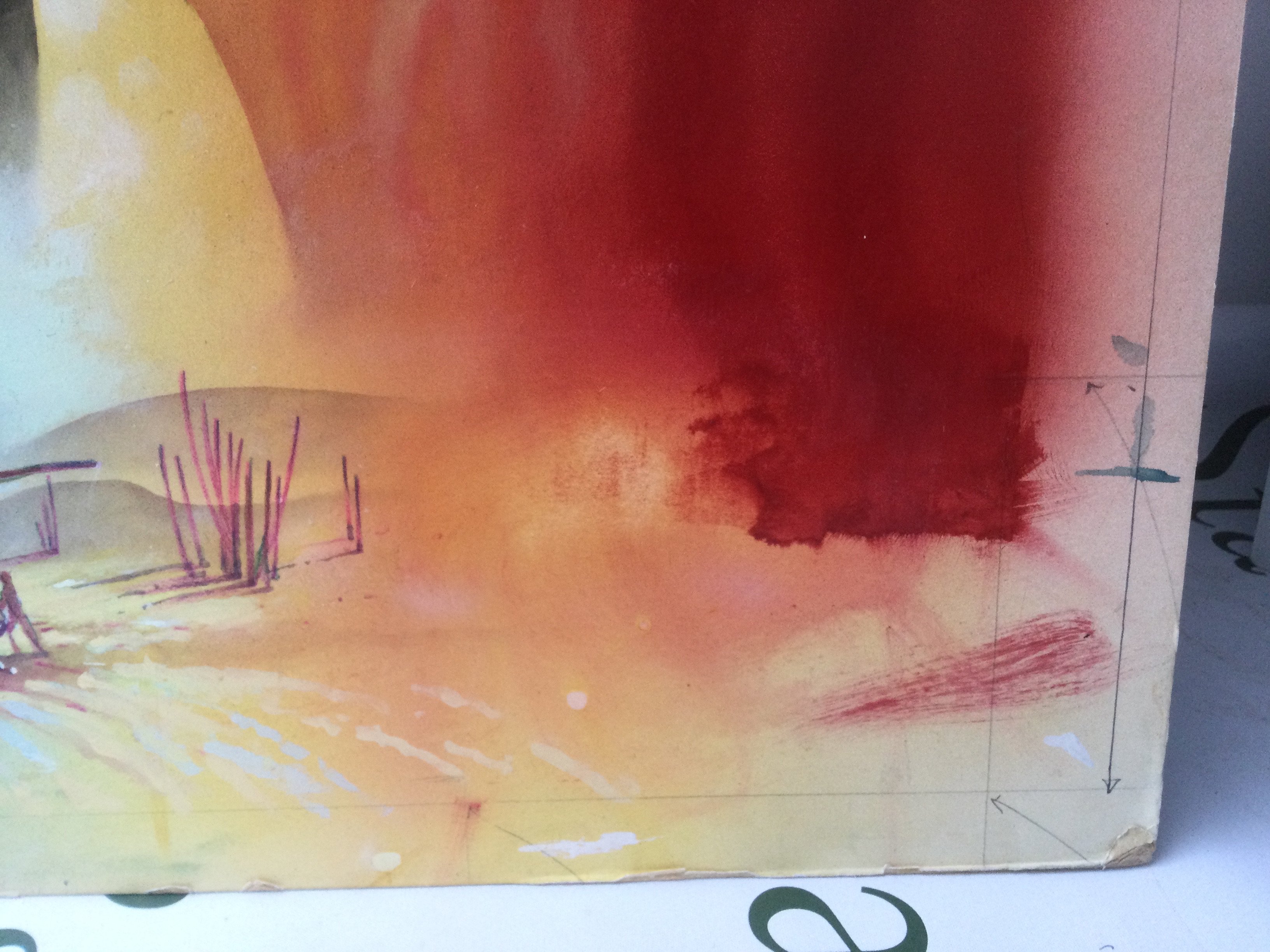 A possible artist's proof painted in mixed media for the 1982 movie Countryman, produced by Island Records founder Chris Blackwell. The painting is on board and has annotated instructions along the borders. Measures approx 70cm x 61cm.