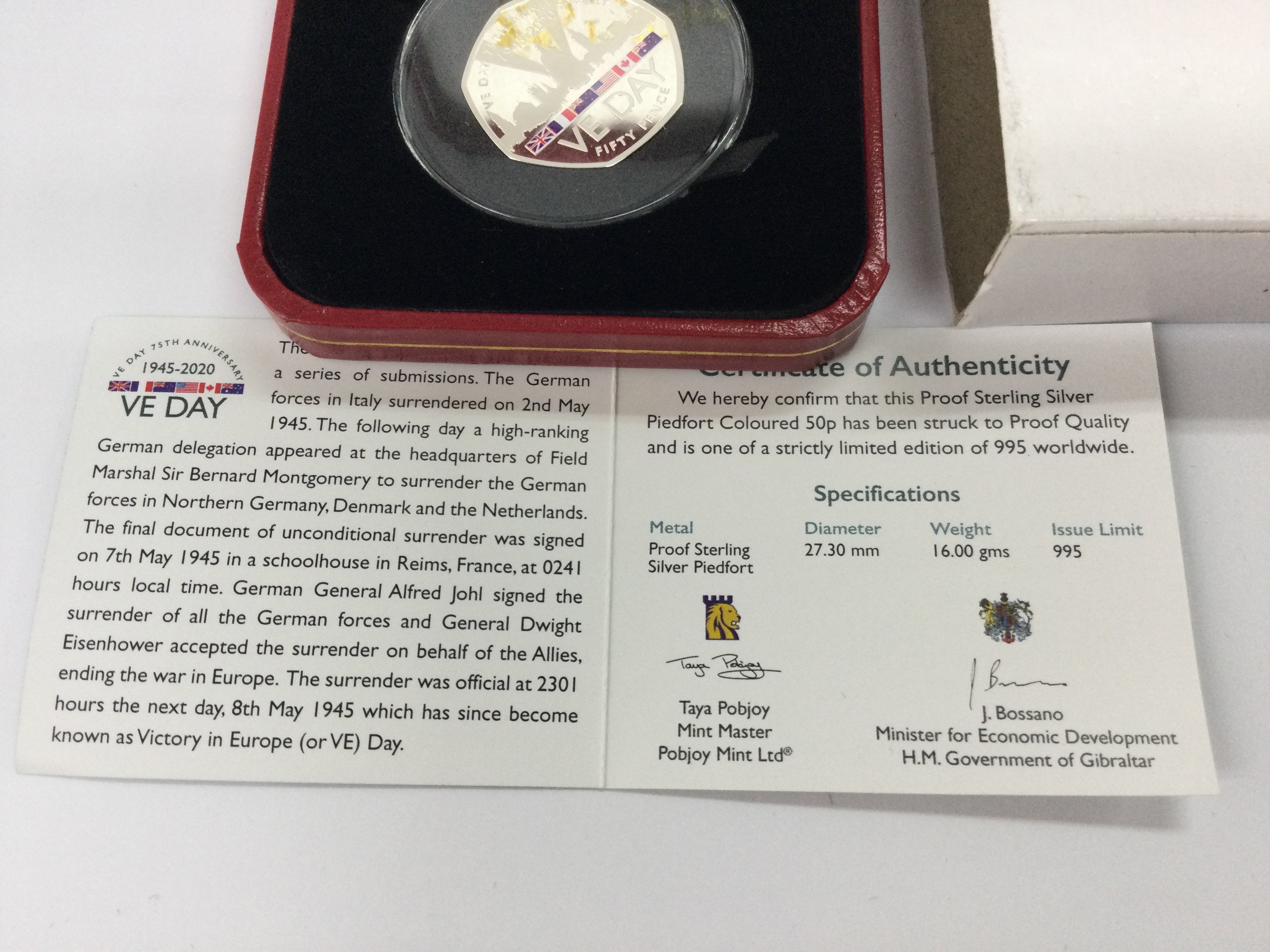 VE Day Proof sterling silver piedfort 50p. Postage B