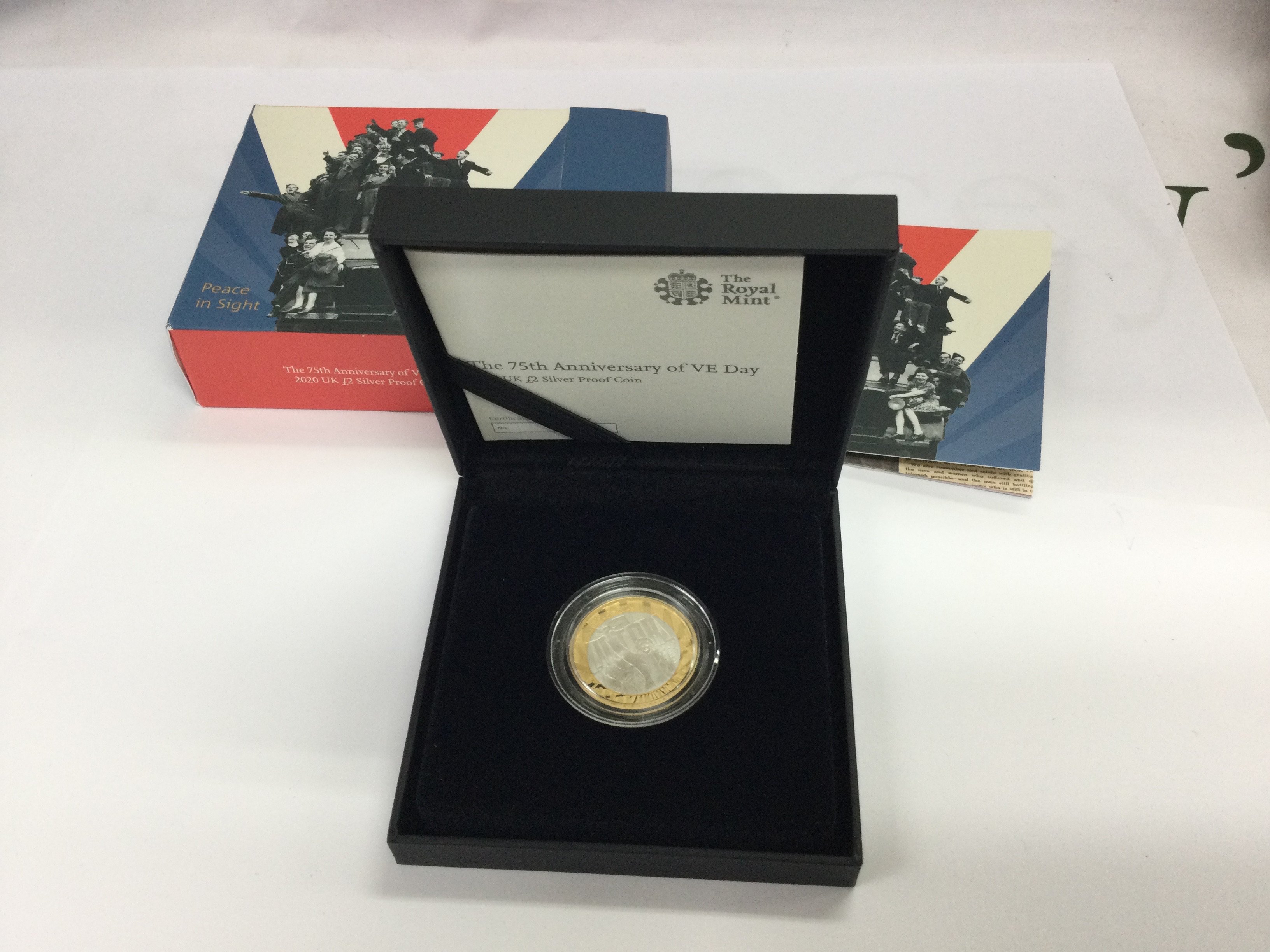 75th anniversary of VE Day uk 2 pound silver proof coin.