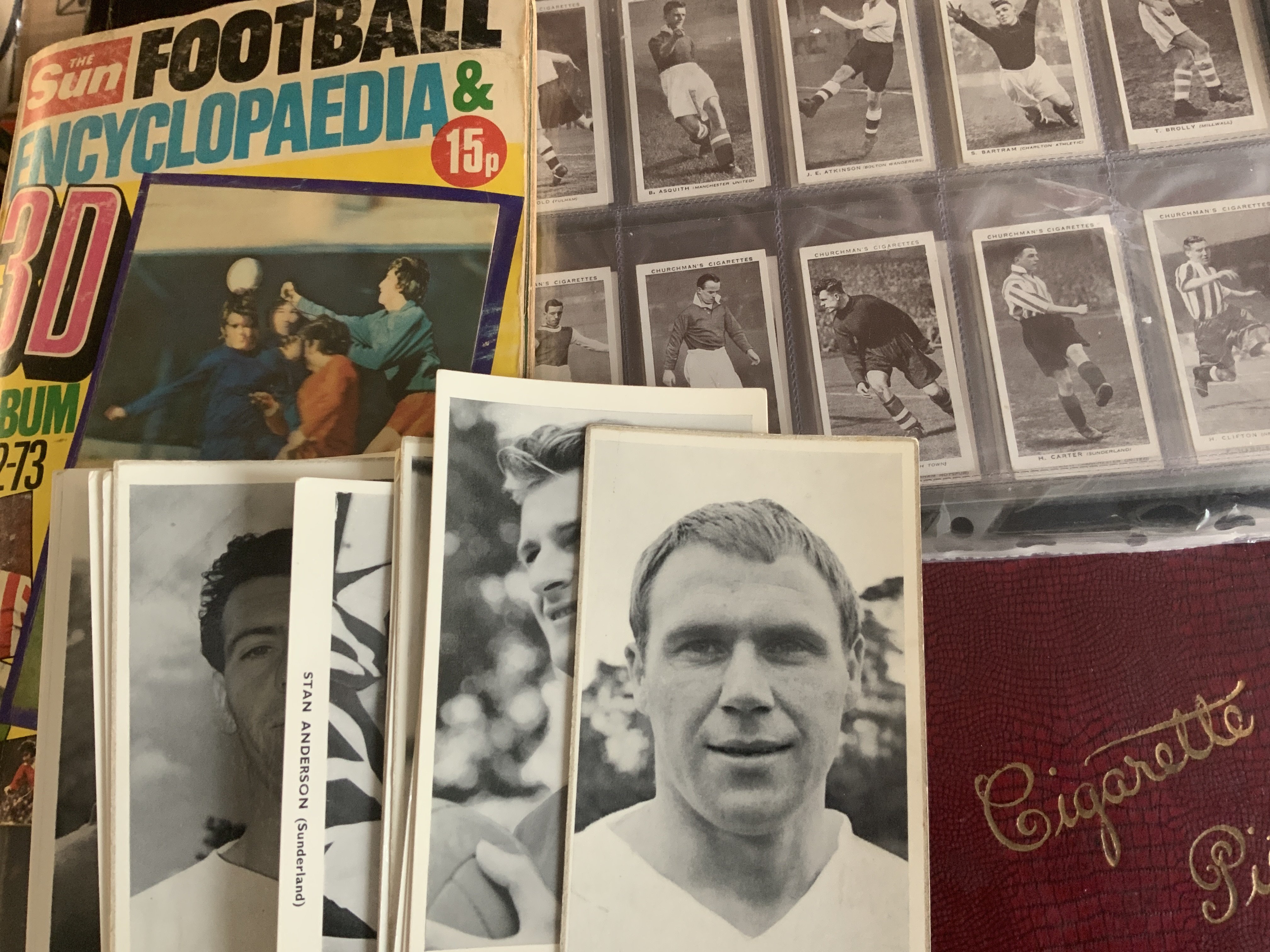 Football Card Collection: Includes 2 complete sets of late 30s Churchmans Wills and a Sun 3D album plus more.