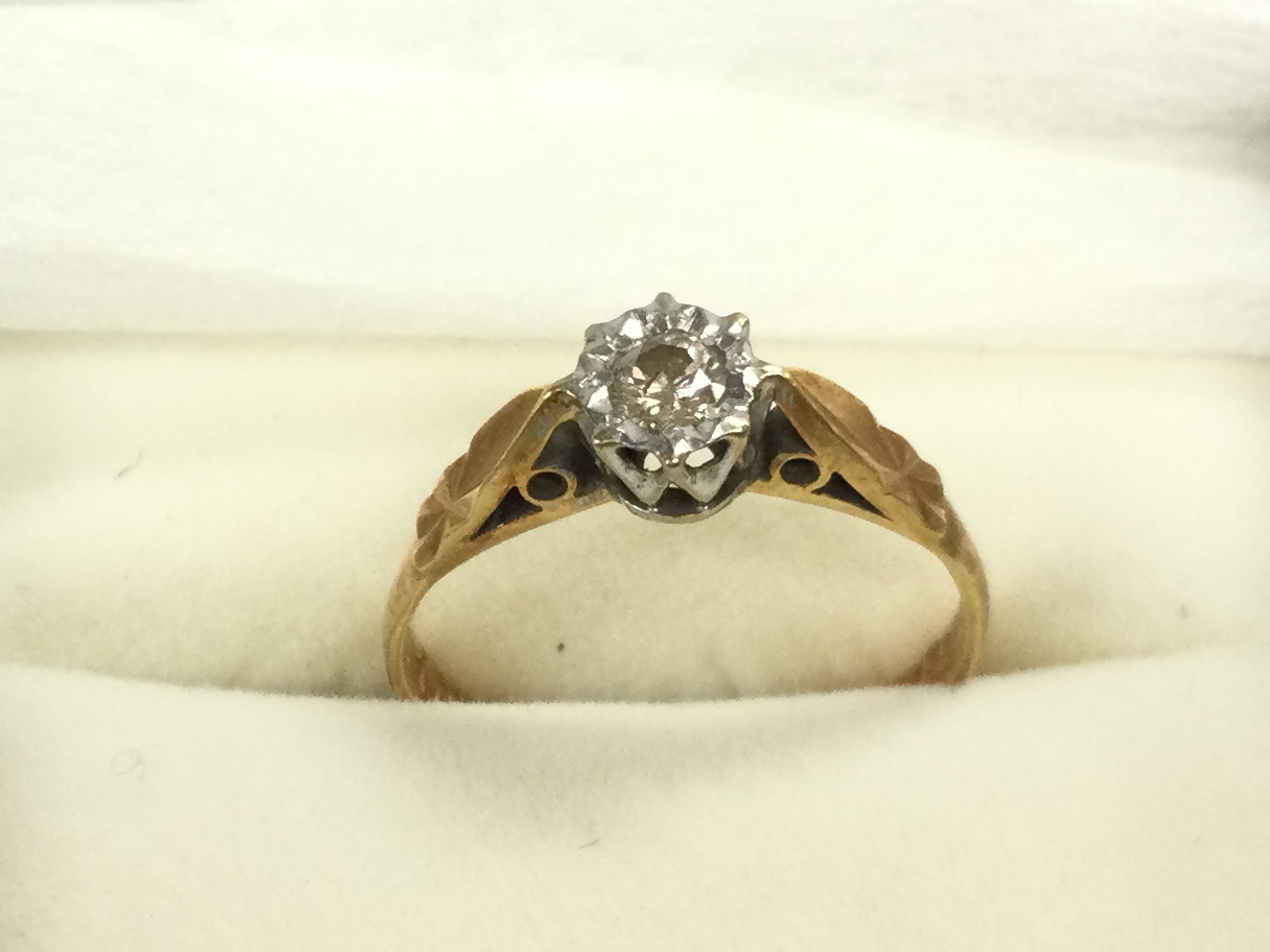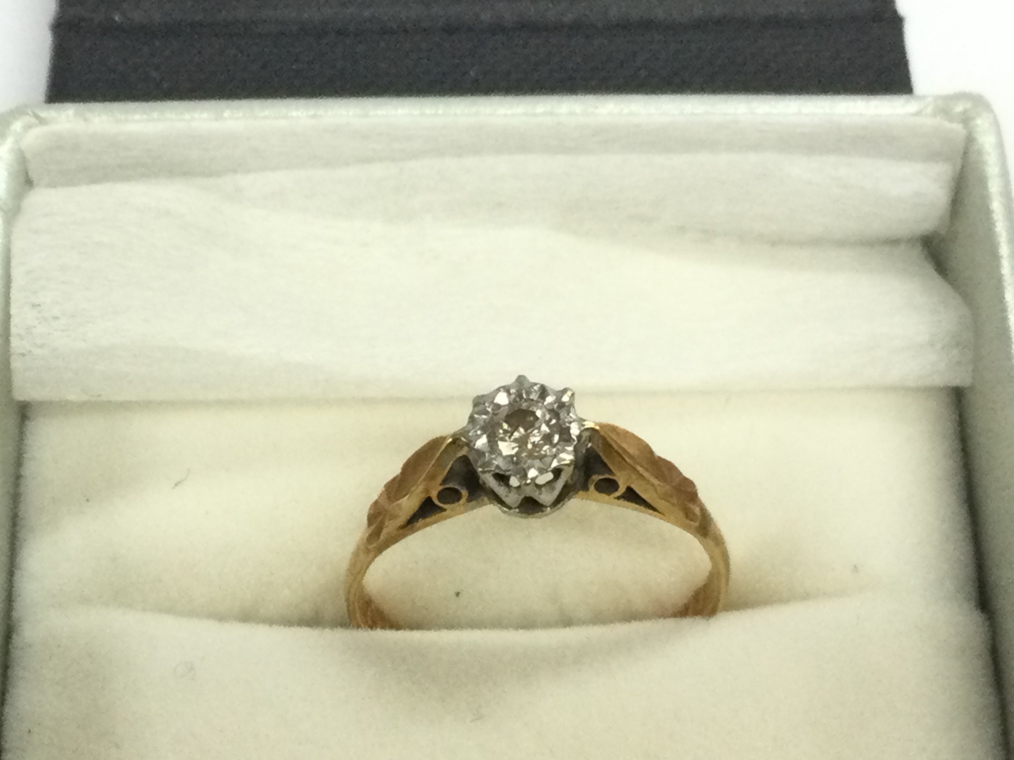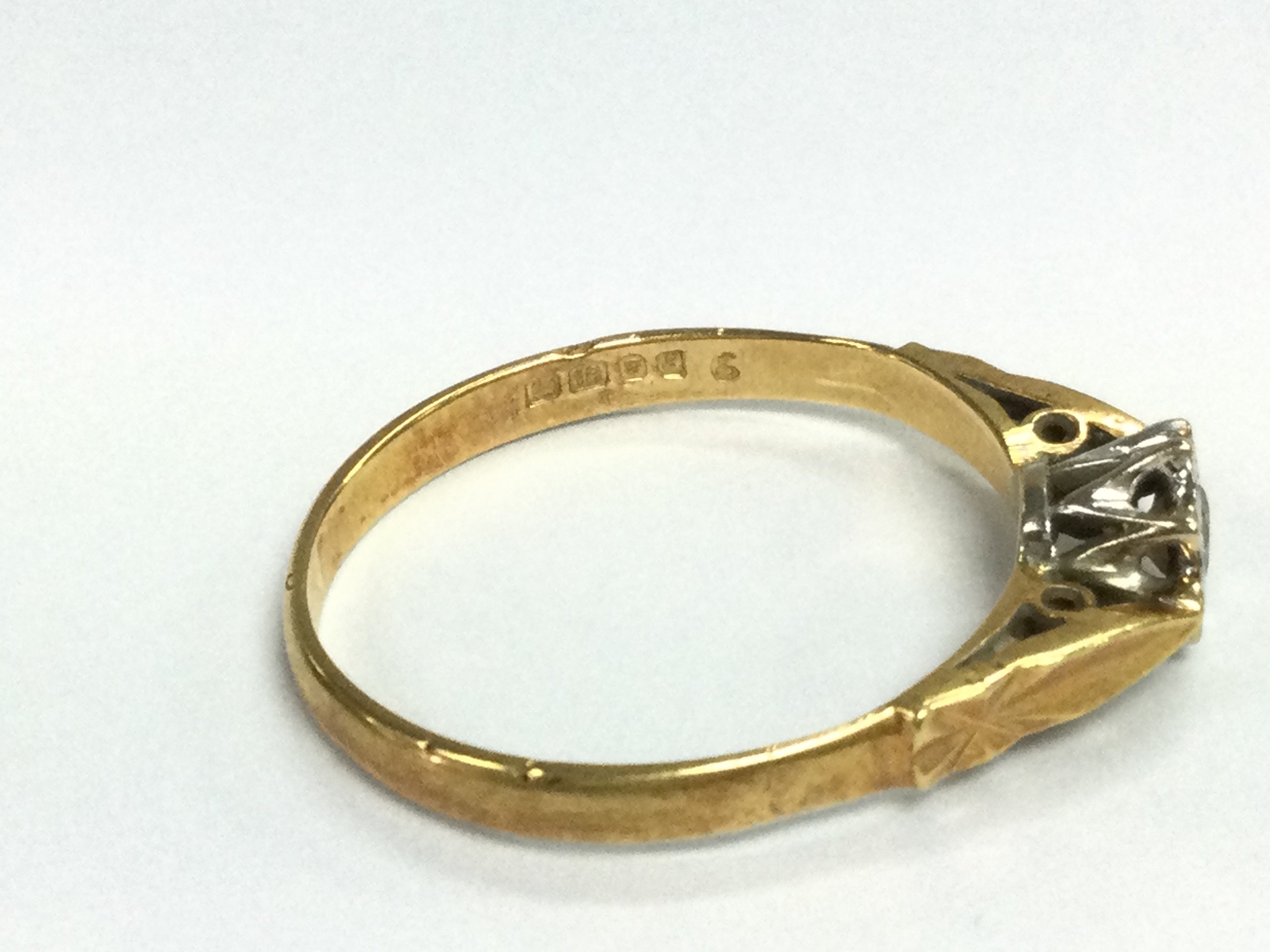 An 18ct gold solitaire diamond ring. Size N and approximately 2.10g Postage A