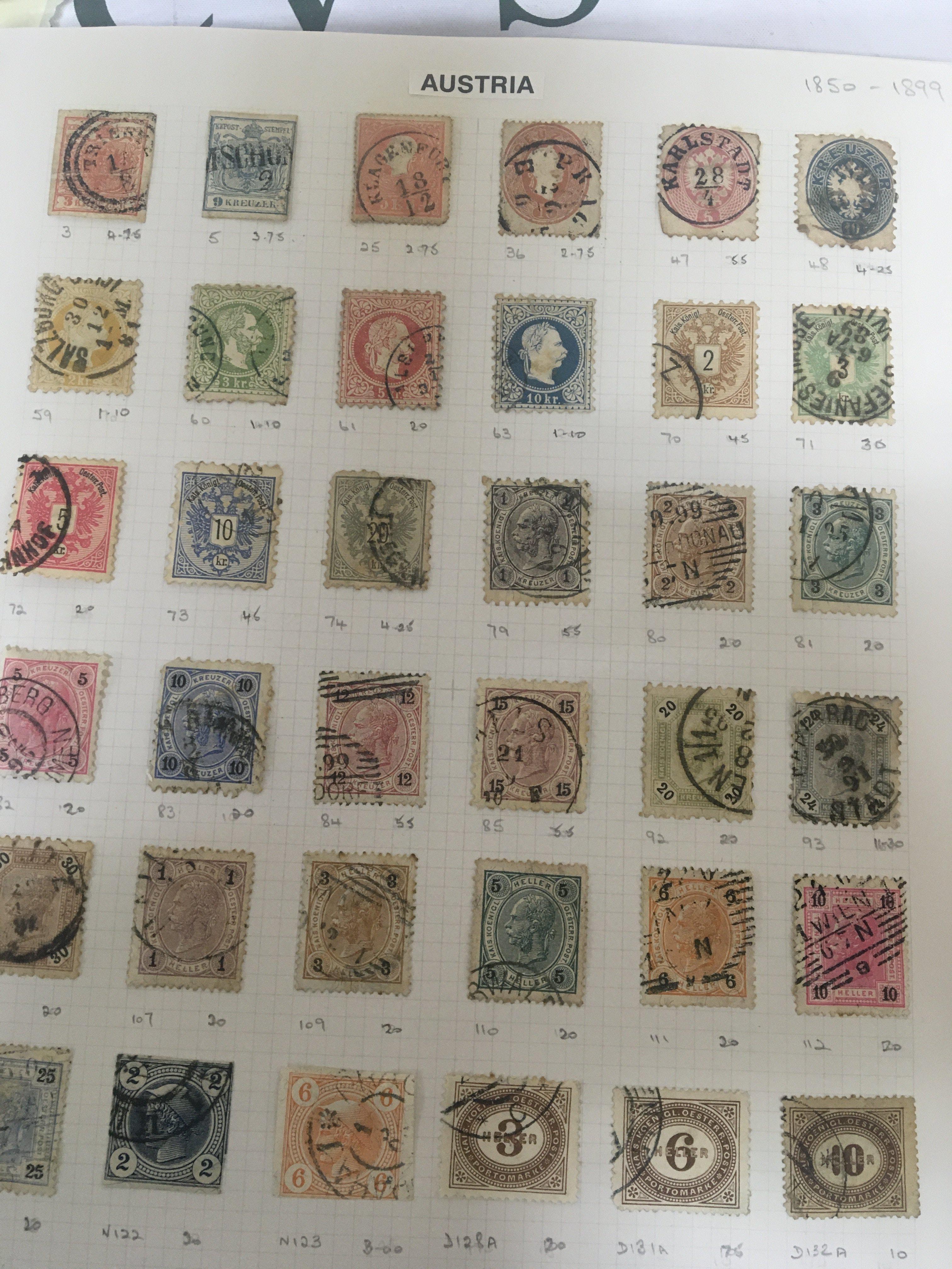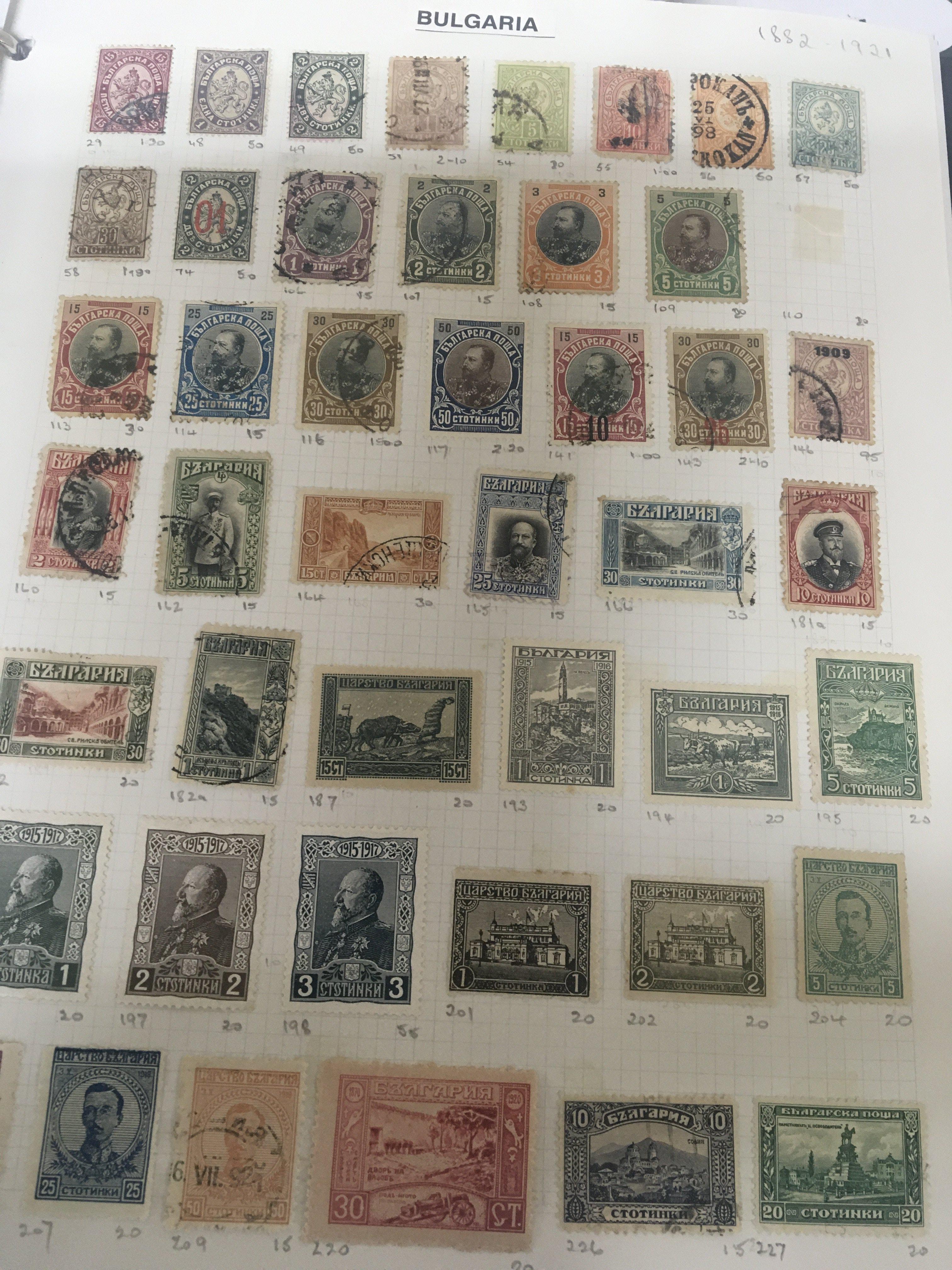 A collection of stamps comprising Austrian stamps from the mid 19th century 1850 onwards mainly used stamps in an album Russian stamps Bulgarian stamps from the mid 19th century onwards sheets of world stamps all mainly used stamps.