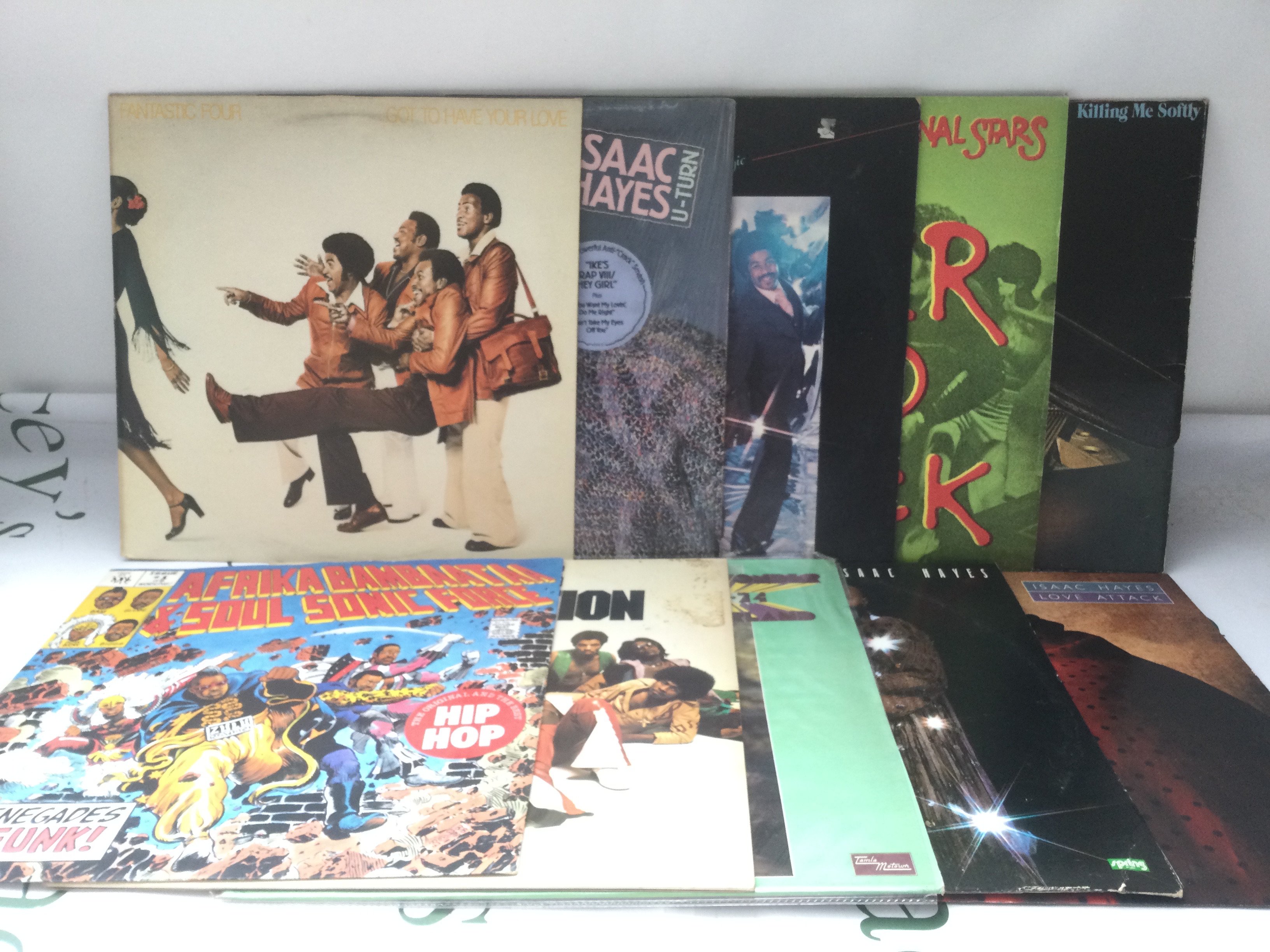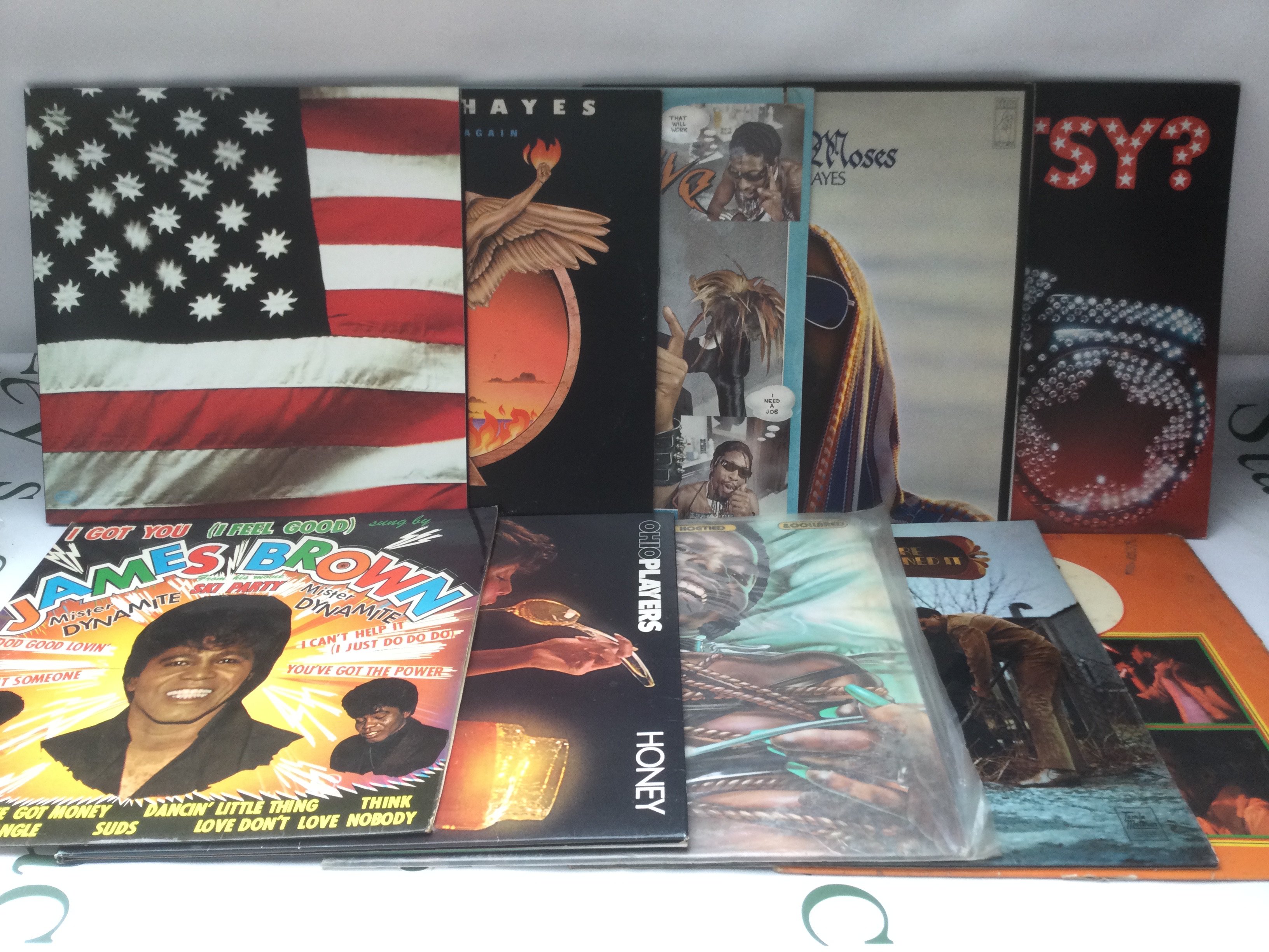 Two bags containing 20 funk and soul LPs by various artists including Sly & The Family Stone, Isaac Hayes, Bootsy Collins and others.