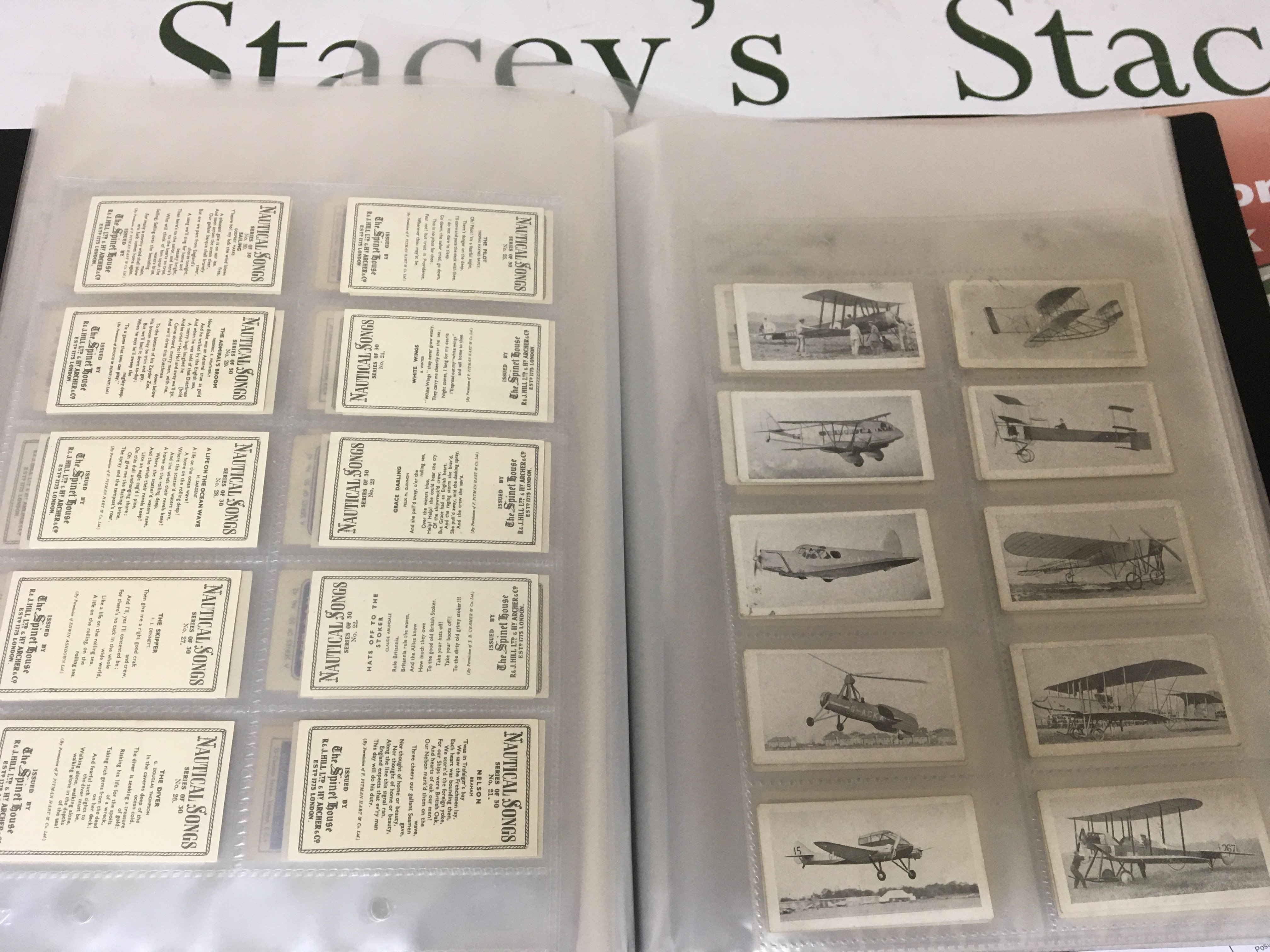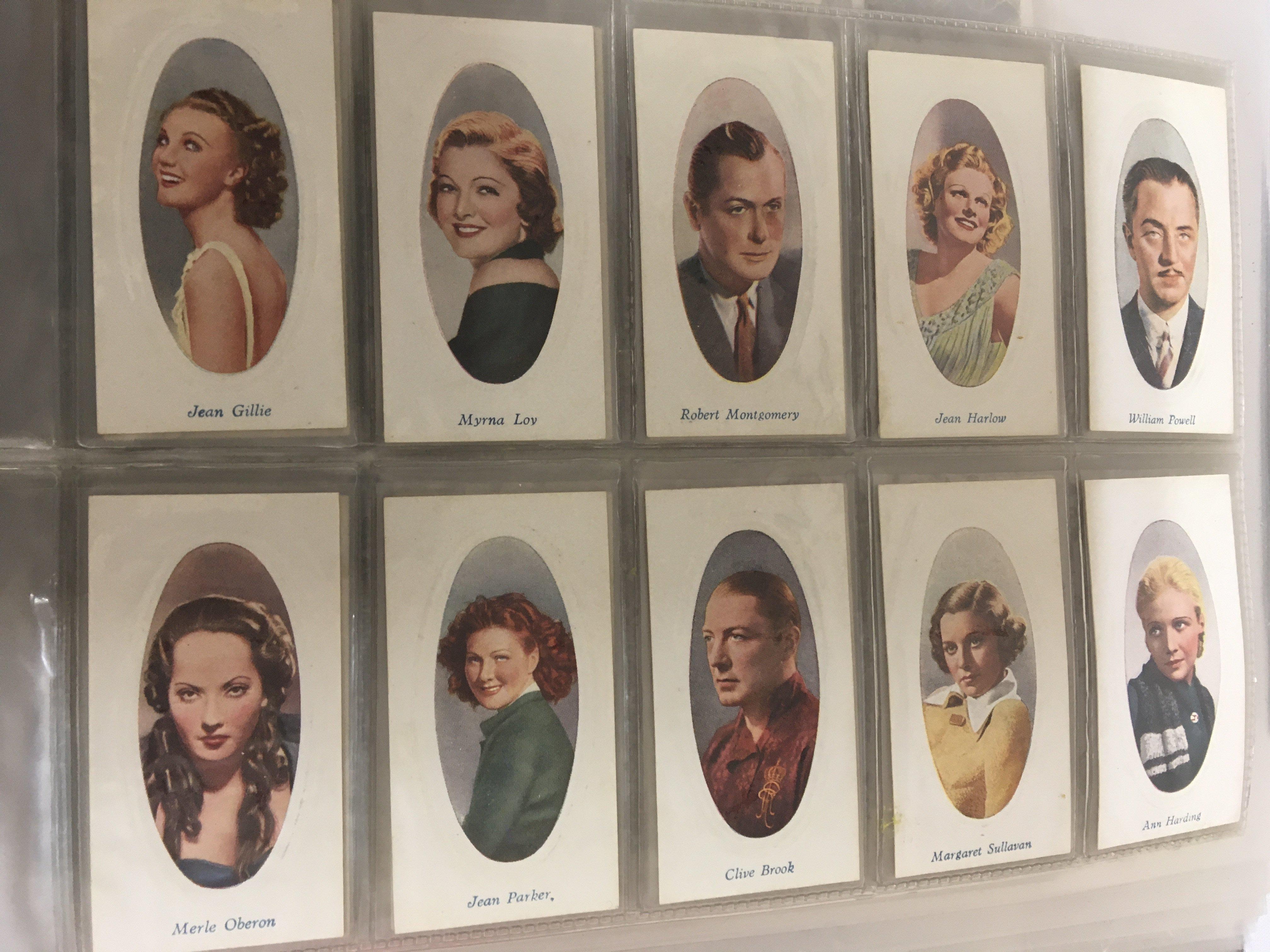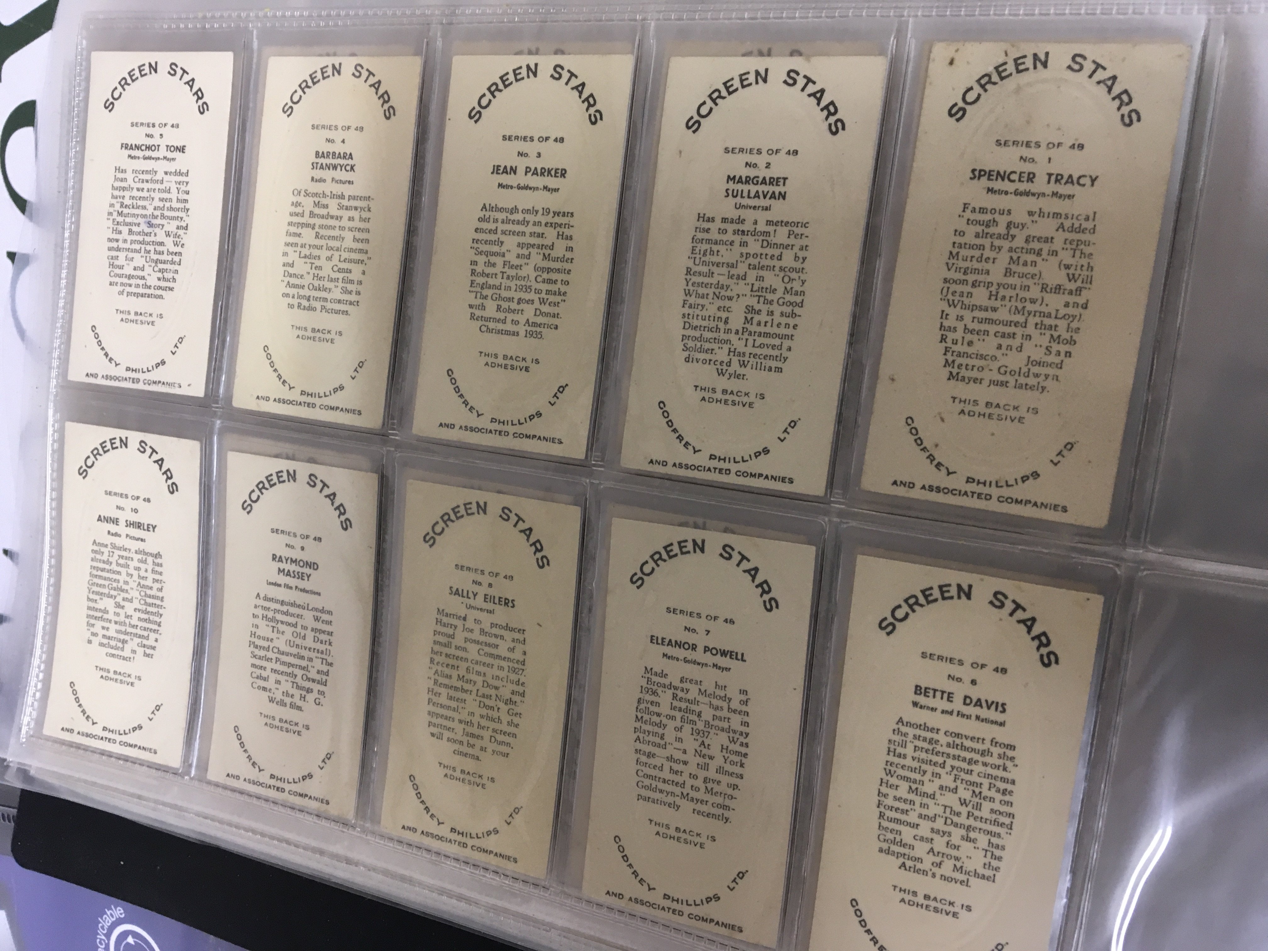 Three well presented albums containing numerous vintage cigarette cards and other collectors cards including B.D.V Godfrey Phillips Test Cricket 1932/33 Screen Stars Bird Painting Adrath Tobacco Trooping the Colour Edwards Ringer & Bigg Cinema Stars and many other vintage sets. (3)