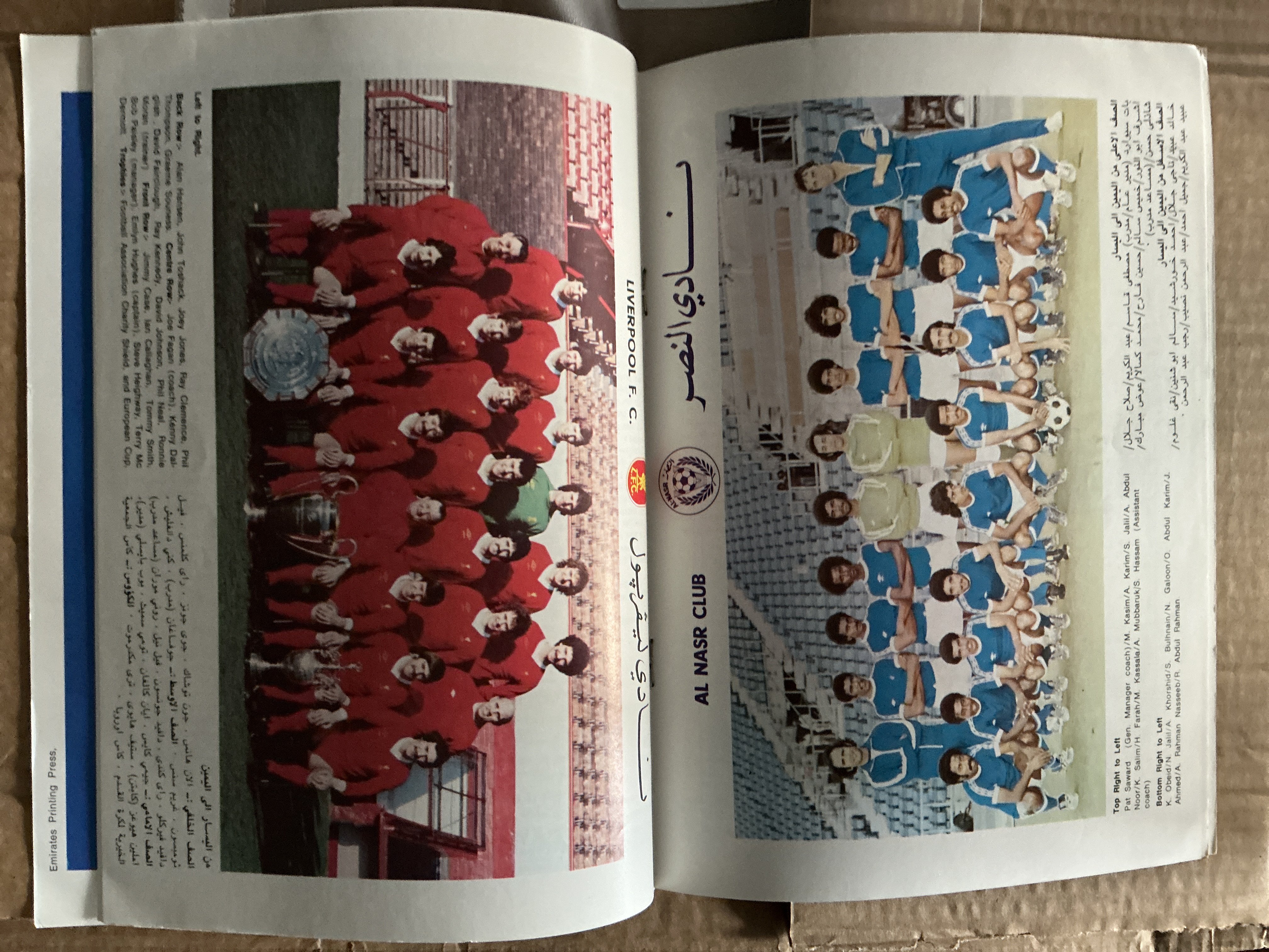 1978 Al Nasr v Liverpool Football Programme + Ticket: Newly crowned European champions playing in Dubai for the ground opening. Ticket in good condition with fold. Programme excellent with team sheet in Arabic.