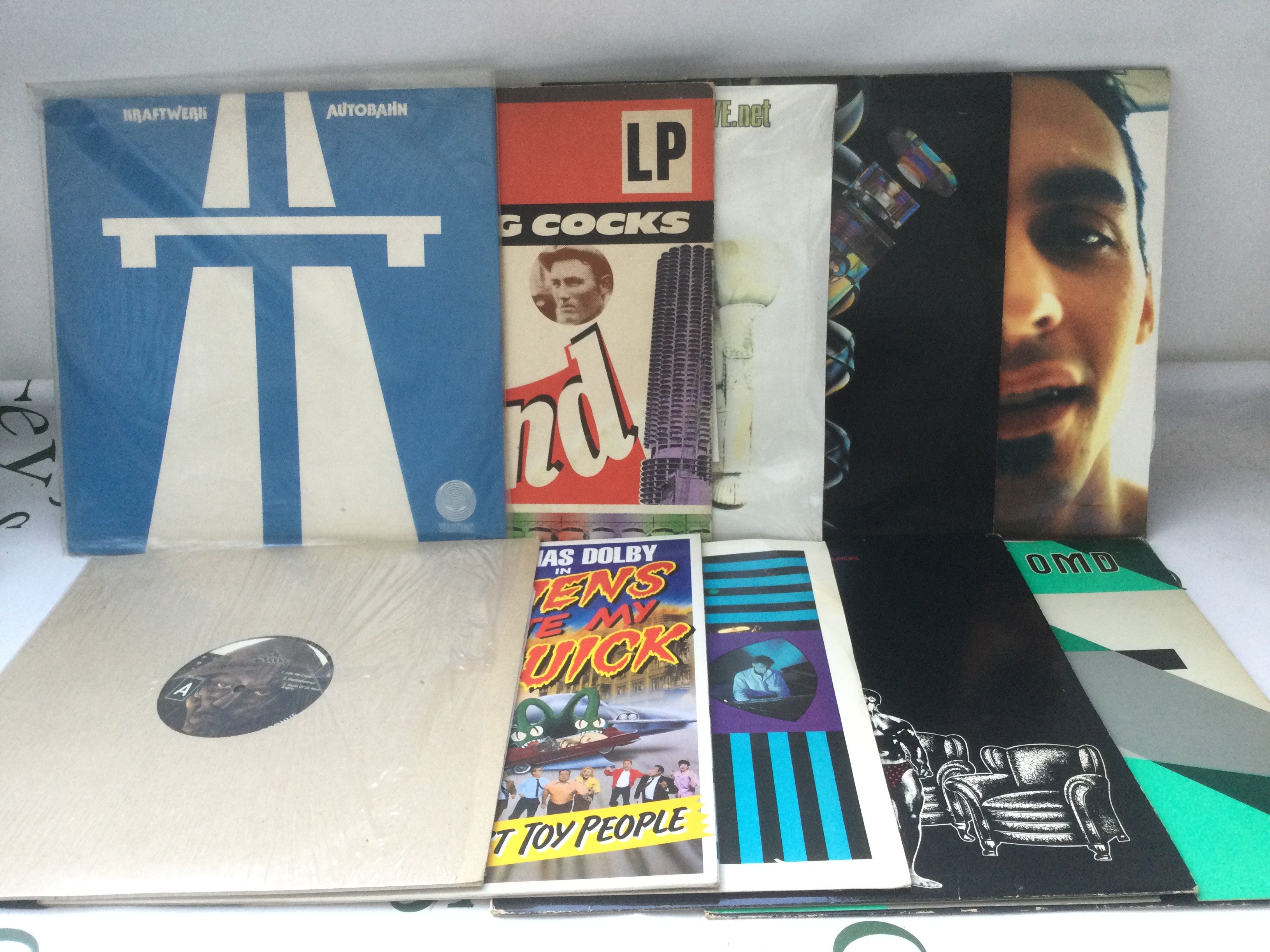 Ten electronic and hip hop LPs and 12" singles by various artists including Kraftwerk, Revolting Cocks, Atmosphere and others.