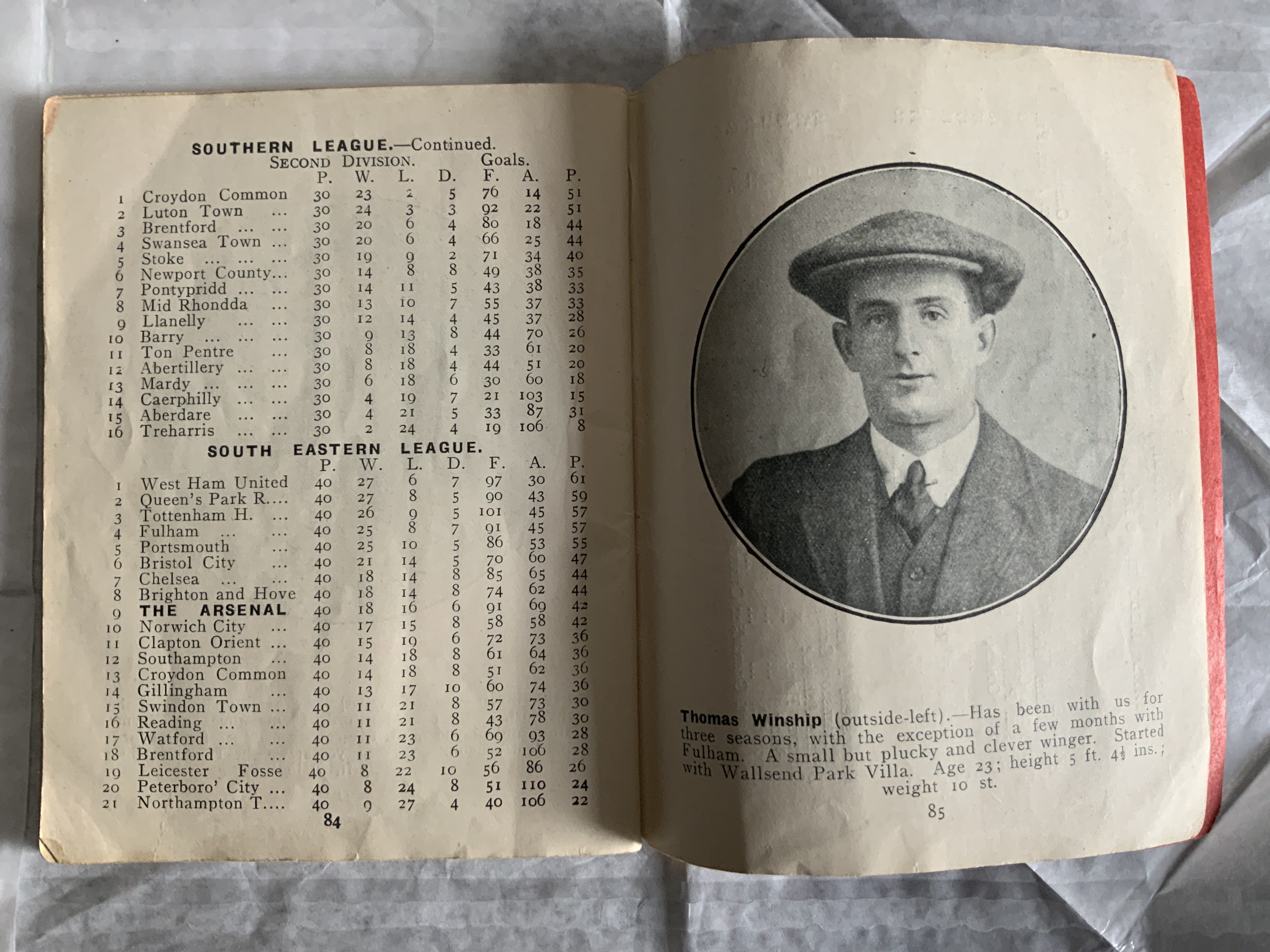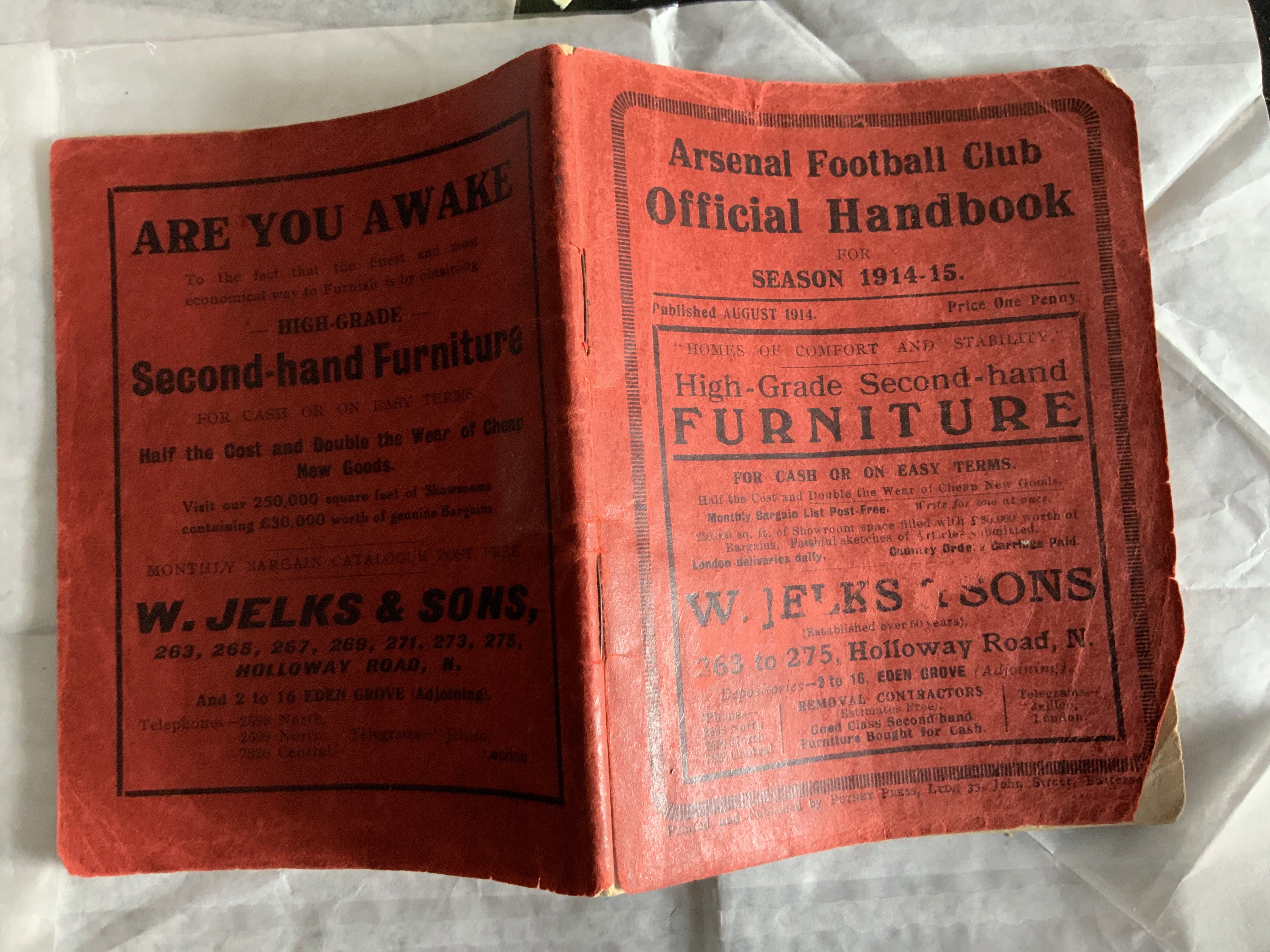 1914 - 1915 Arsenal Football Handbook: Good condition handbook which is the first Arsenal ever produced. Whilst there is a small piece missing from right hand corners the spine is great and there is no writing. Rare item.