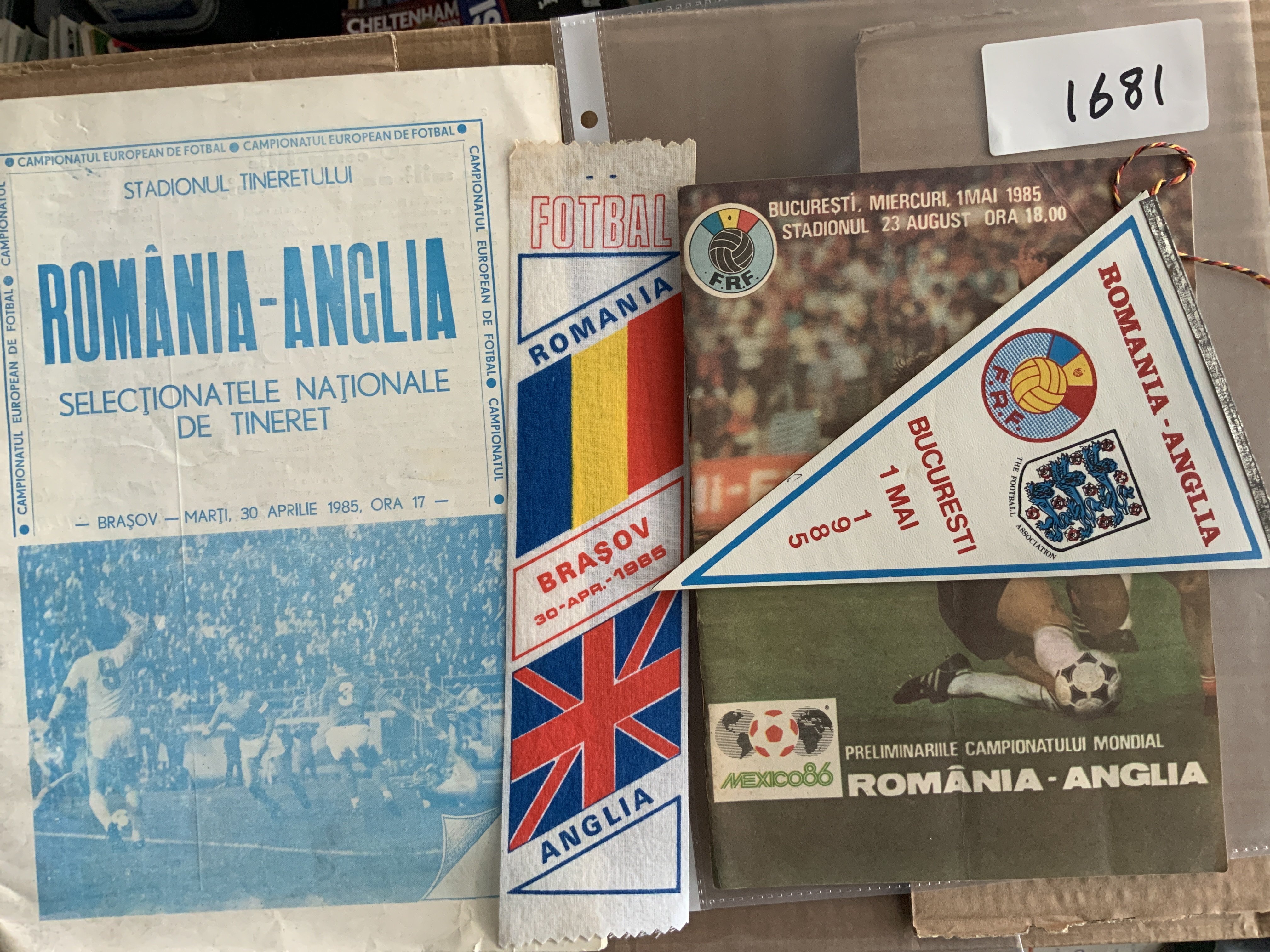 1985 Rumania v England Signed Football Programme + More: Programme for 1986 WC qualifier is signed to team page by England 14 players. Includes Shilton Robson Francis Anderson Wilkins Stevens Hoddle Butcher Sansom Bailey and others. C/W Under 21 programme which has cloth match detailed book mark and a pennant.