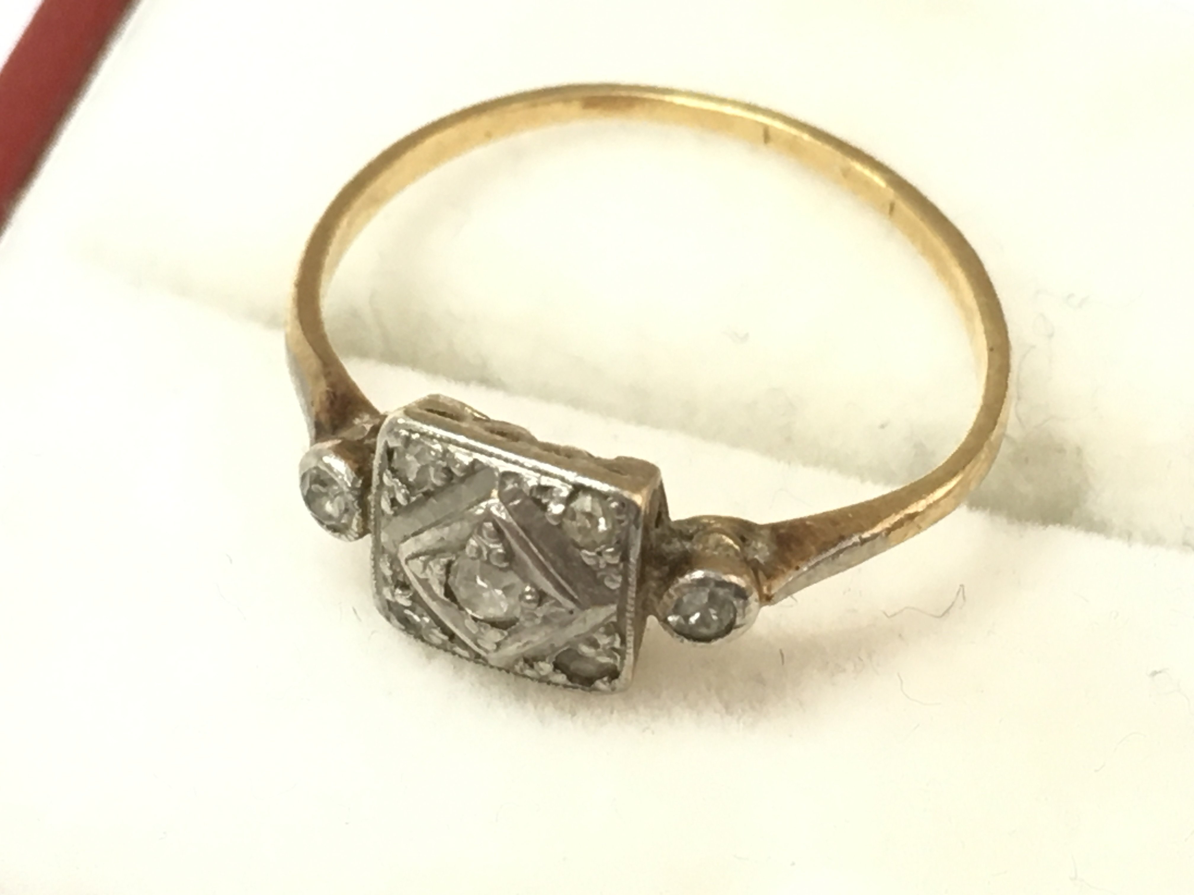 An unmarked 18ct gold and diamond set ring, size N/M. 1.7g total weight. Postage catA