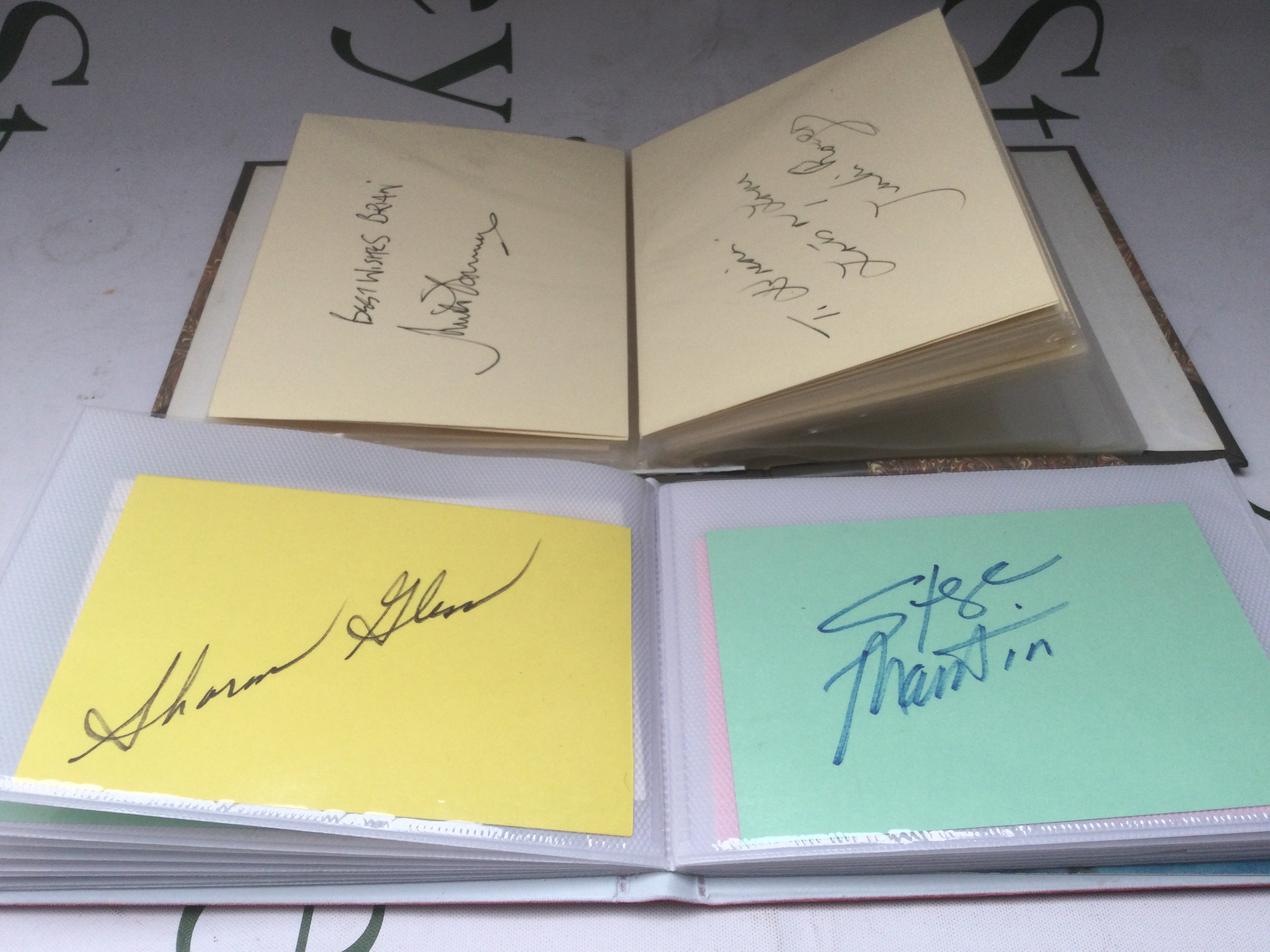 Two autograph booklets containing many signatures including Charlton Heston, Michael Caine, George Burns, The Everly Brothers and many more. Please see images for a more detailed list.