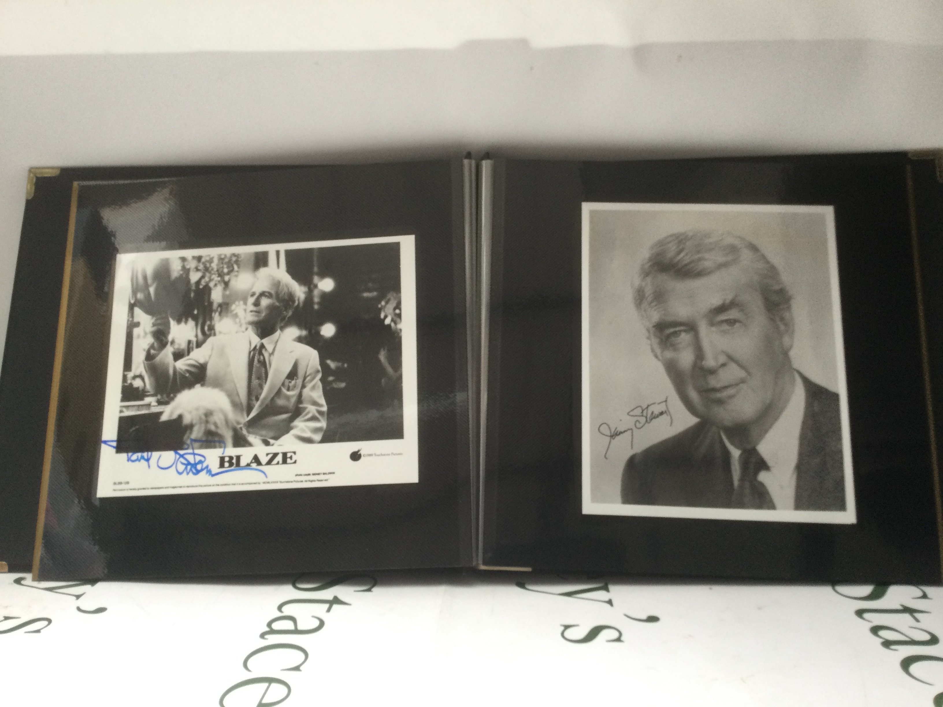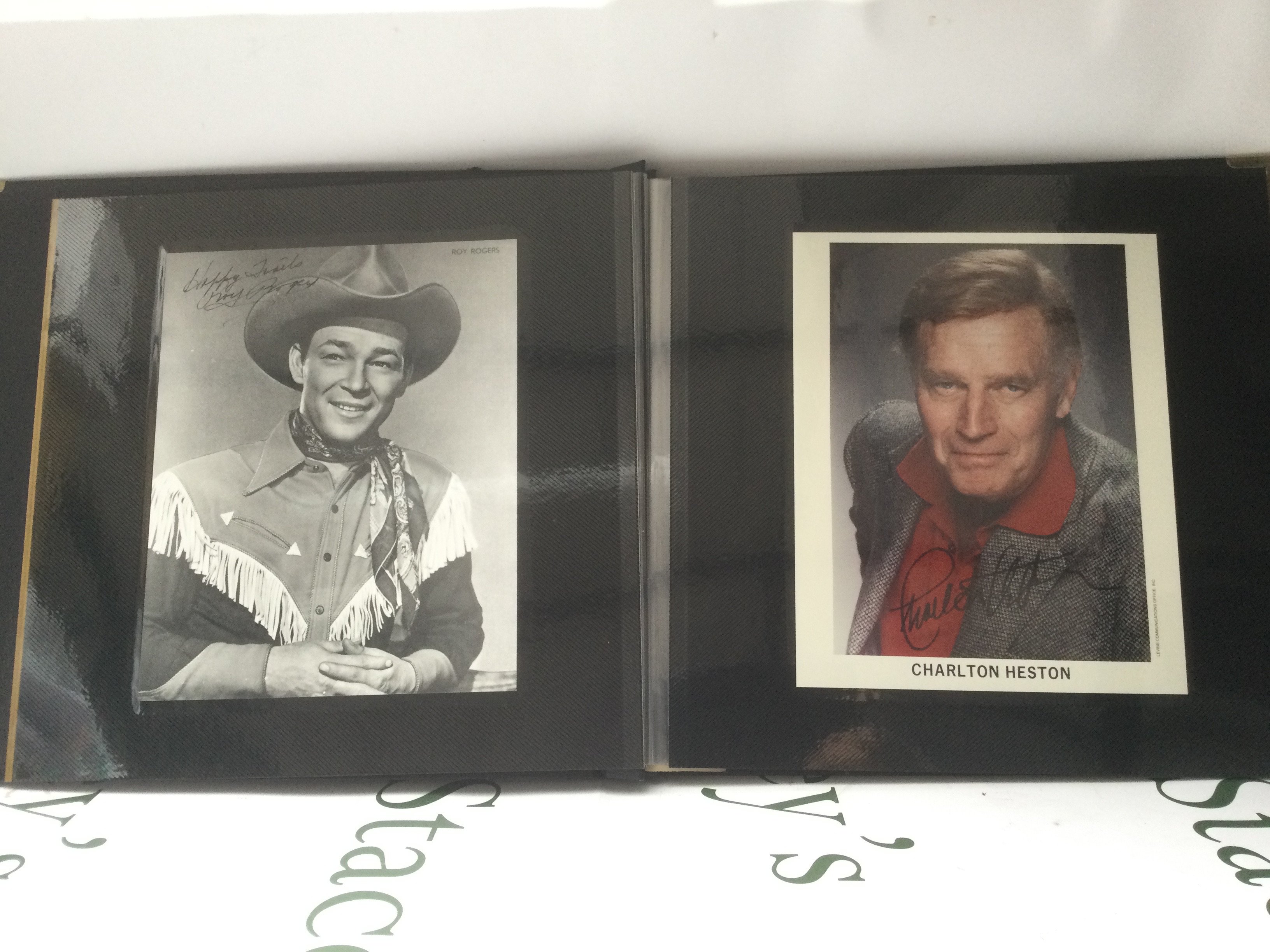 A binder of signed photos comprising Cesar Romero, Jimmy Stewart, Roy Rogers, Kirk Douglas and others.