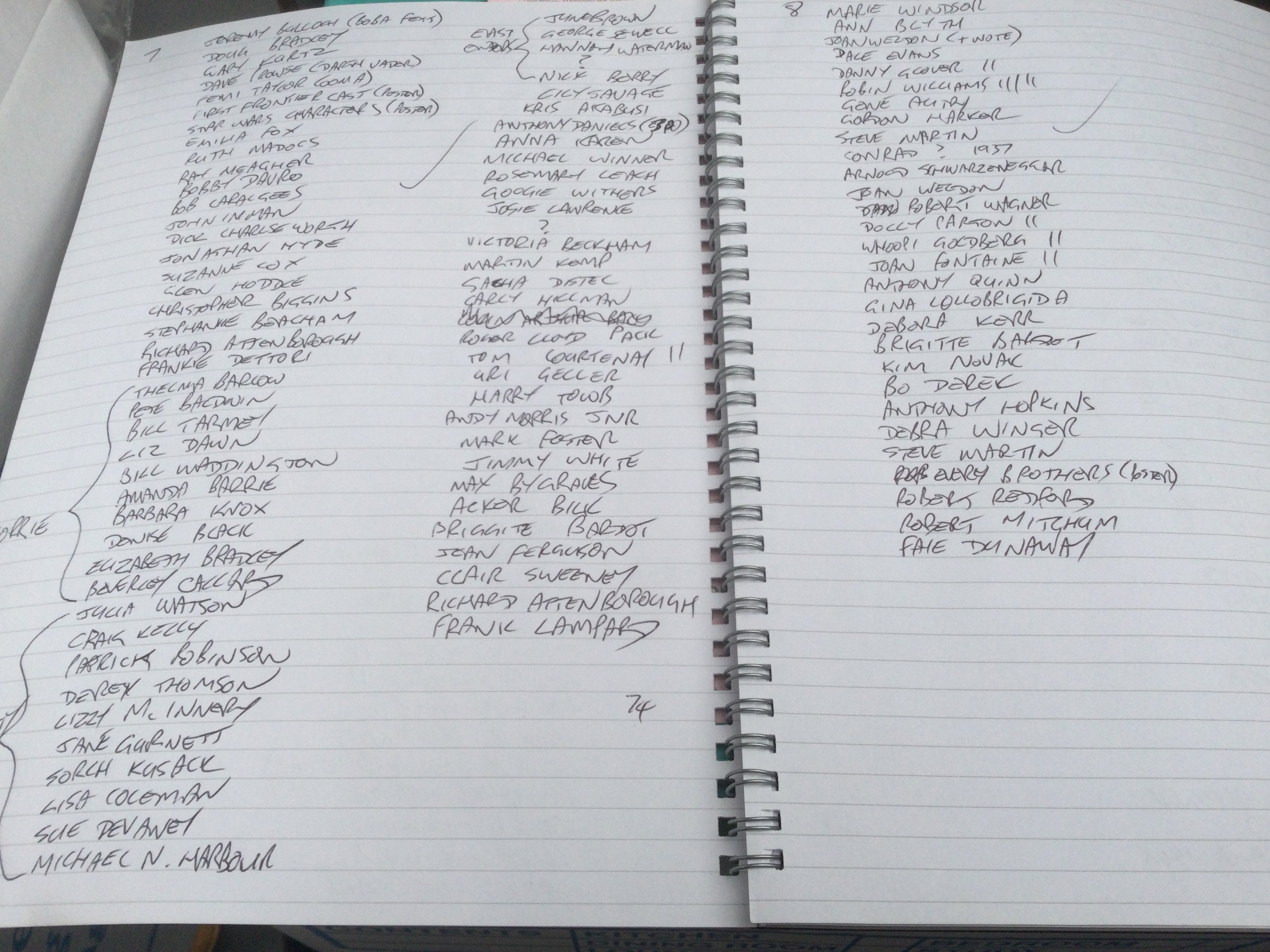 Four binders of signed photos including Richard Attenborough, Anthony Hopkins, Brigitte Bardot, Gary Kurtz, Steve Martin and others. See images for lists of contents.