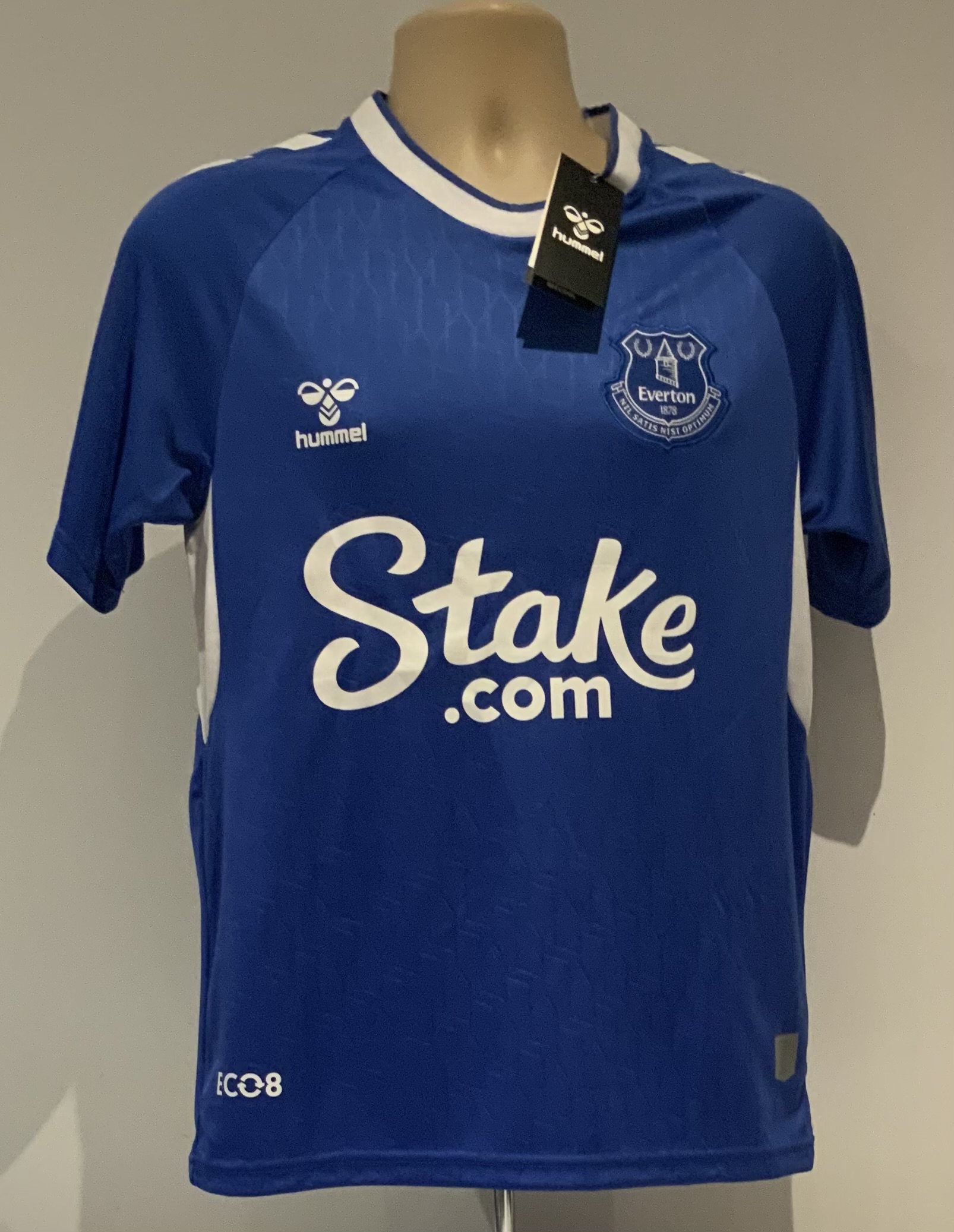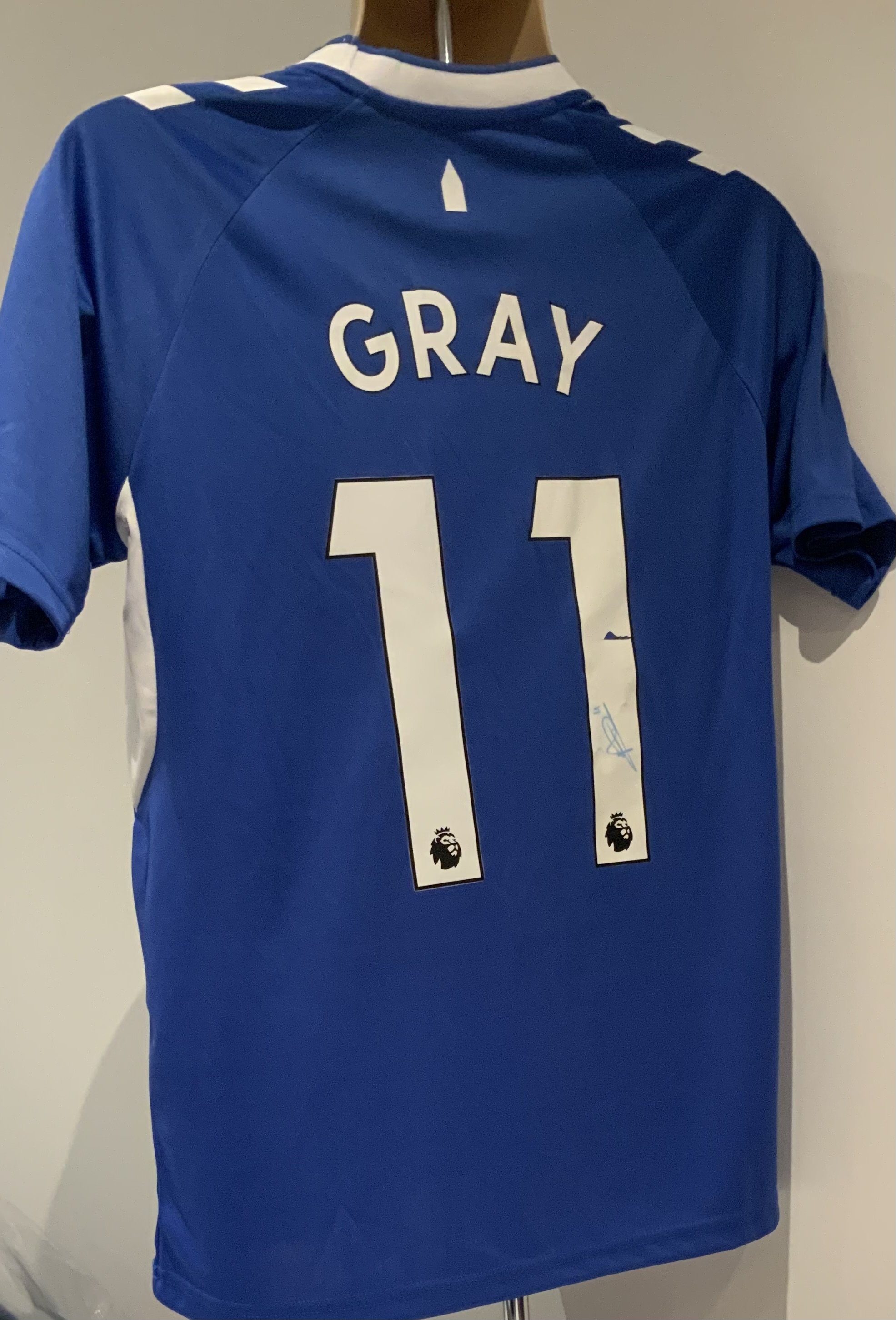Everton Gray Signed Replica Football Shirt: Hummel short sleeve name and number shirt with tags signed to rear by the player.