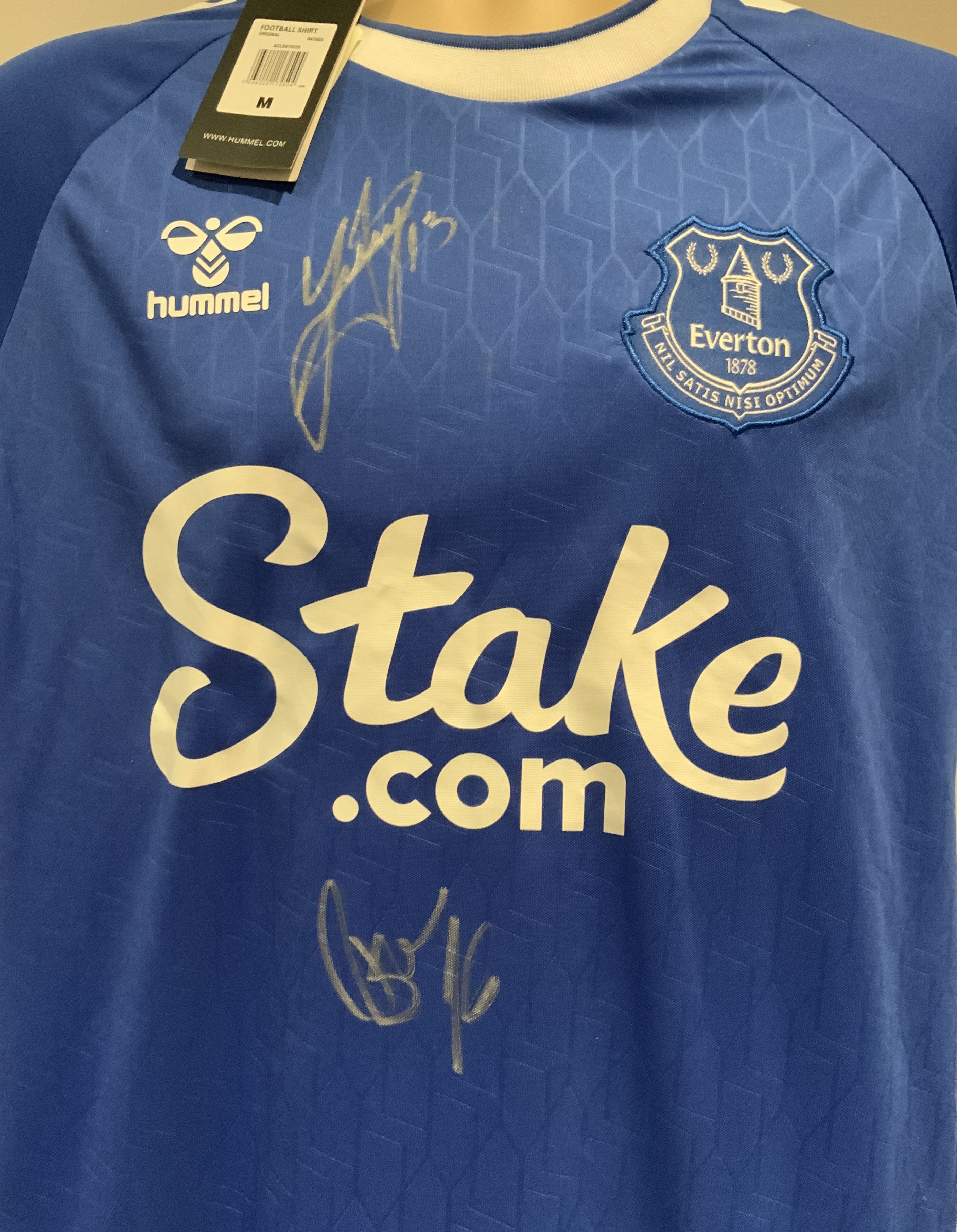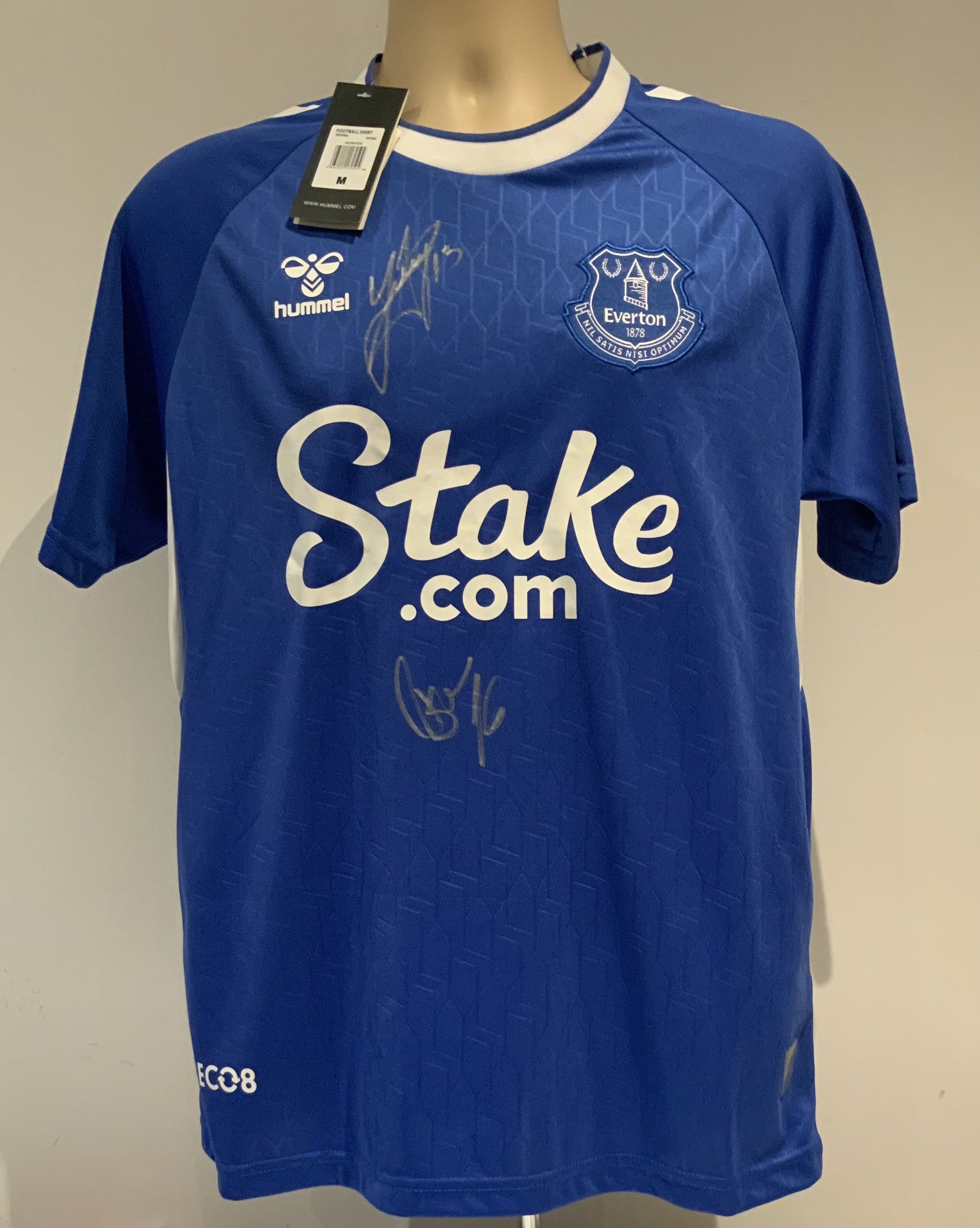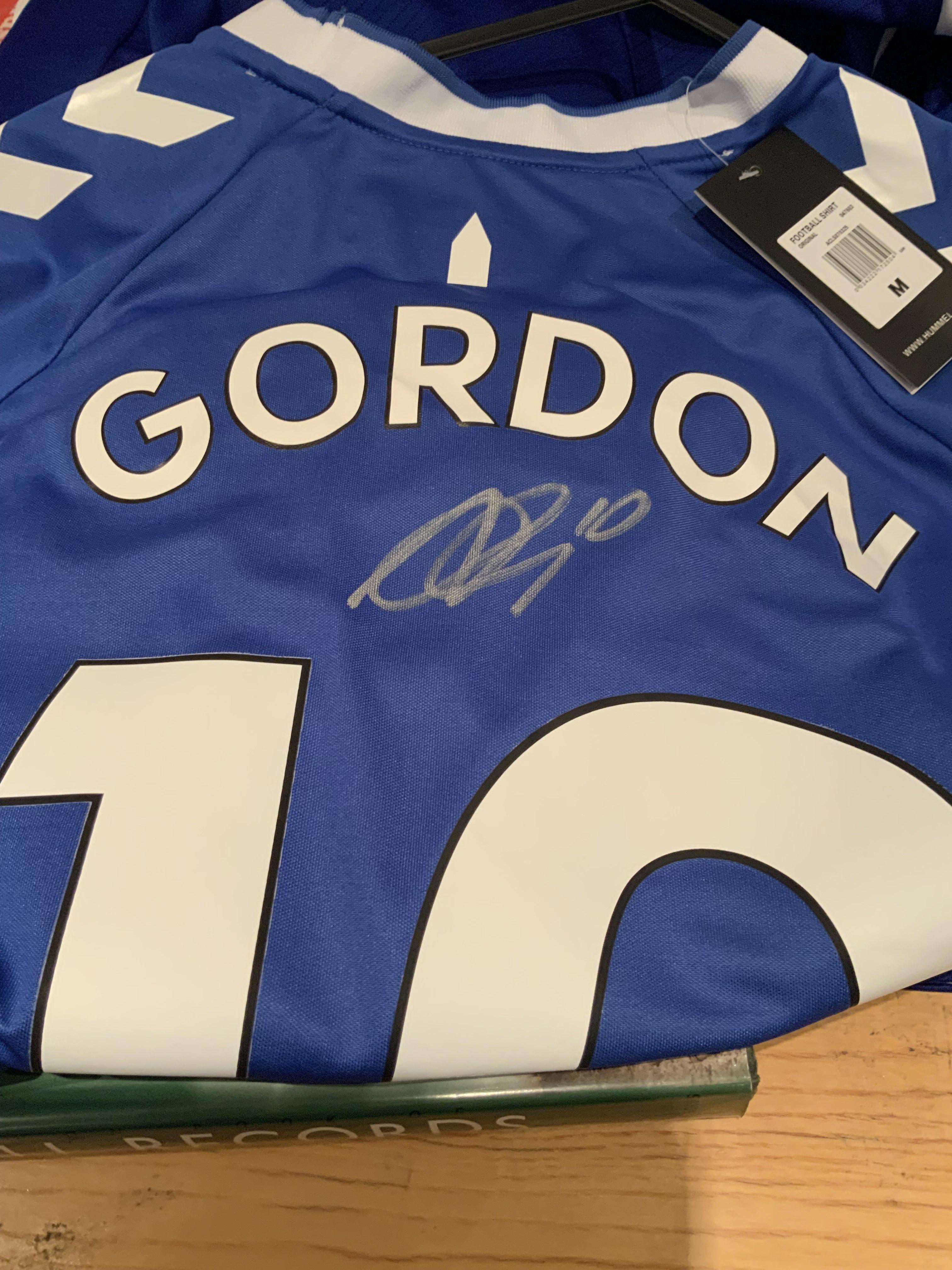 Everton Gordon Signed Replica Football Shirt: Hummel short sleeve name and number shirt with tags signed to rear by the player with an additional two signatures to the front.