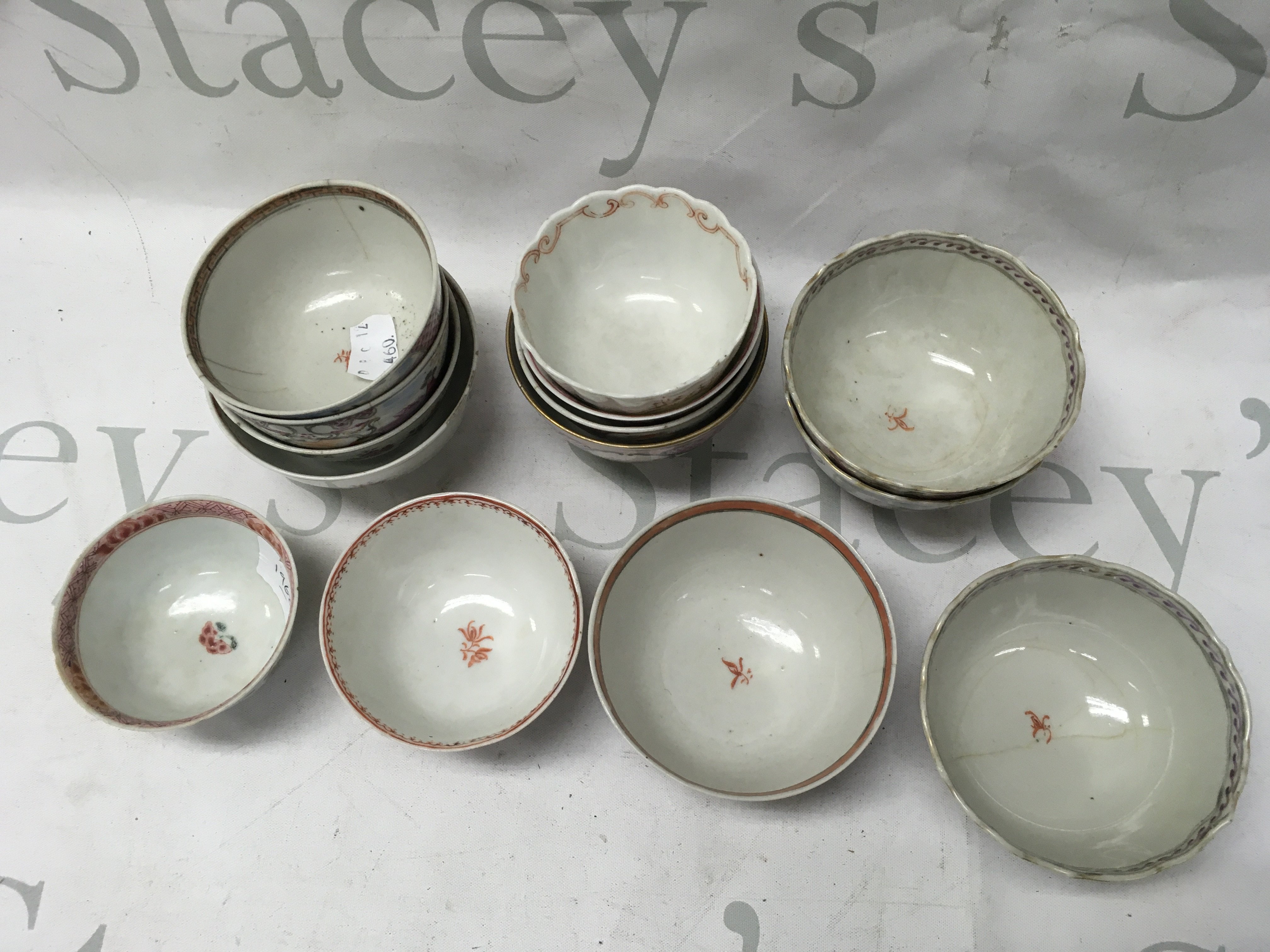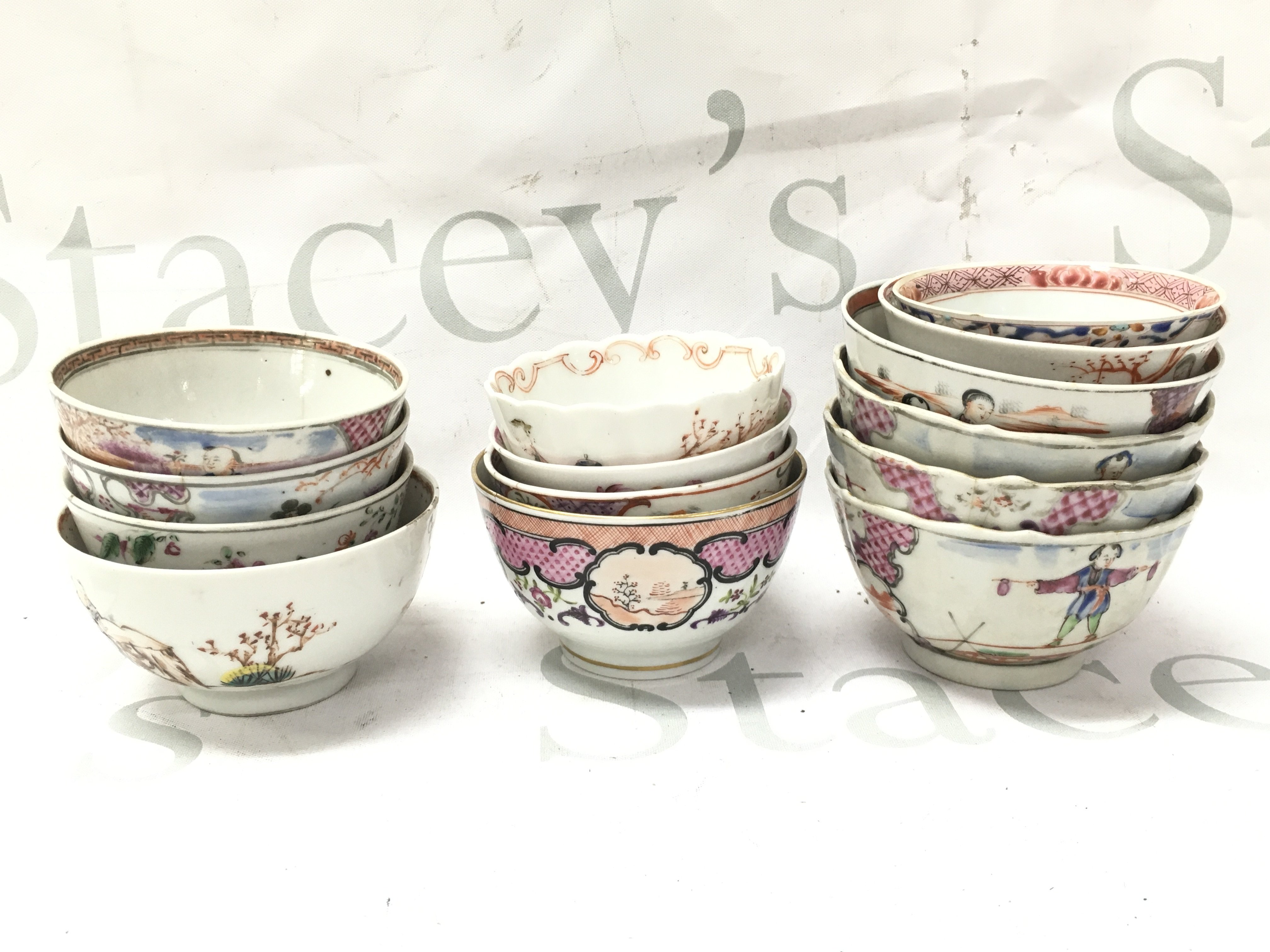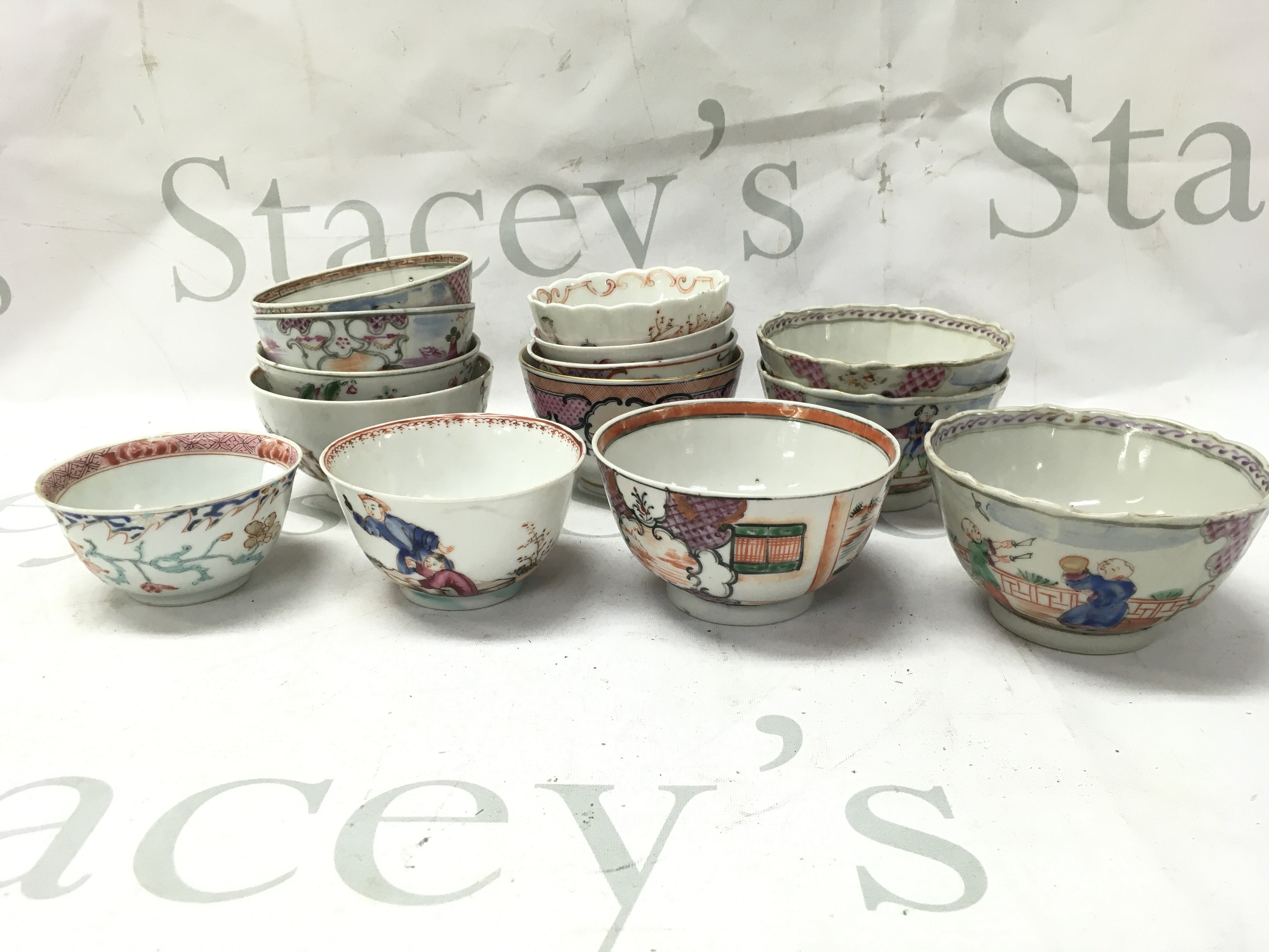 A collection of Chinese Famille rose tea bowls. Some hairline cracks. This lot cannot be posted