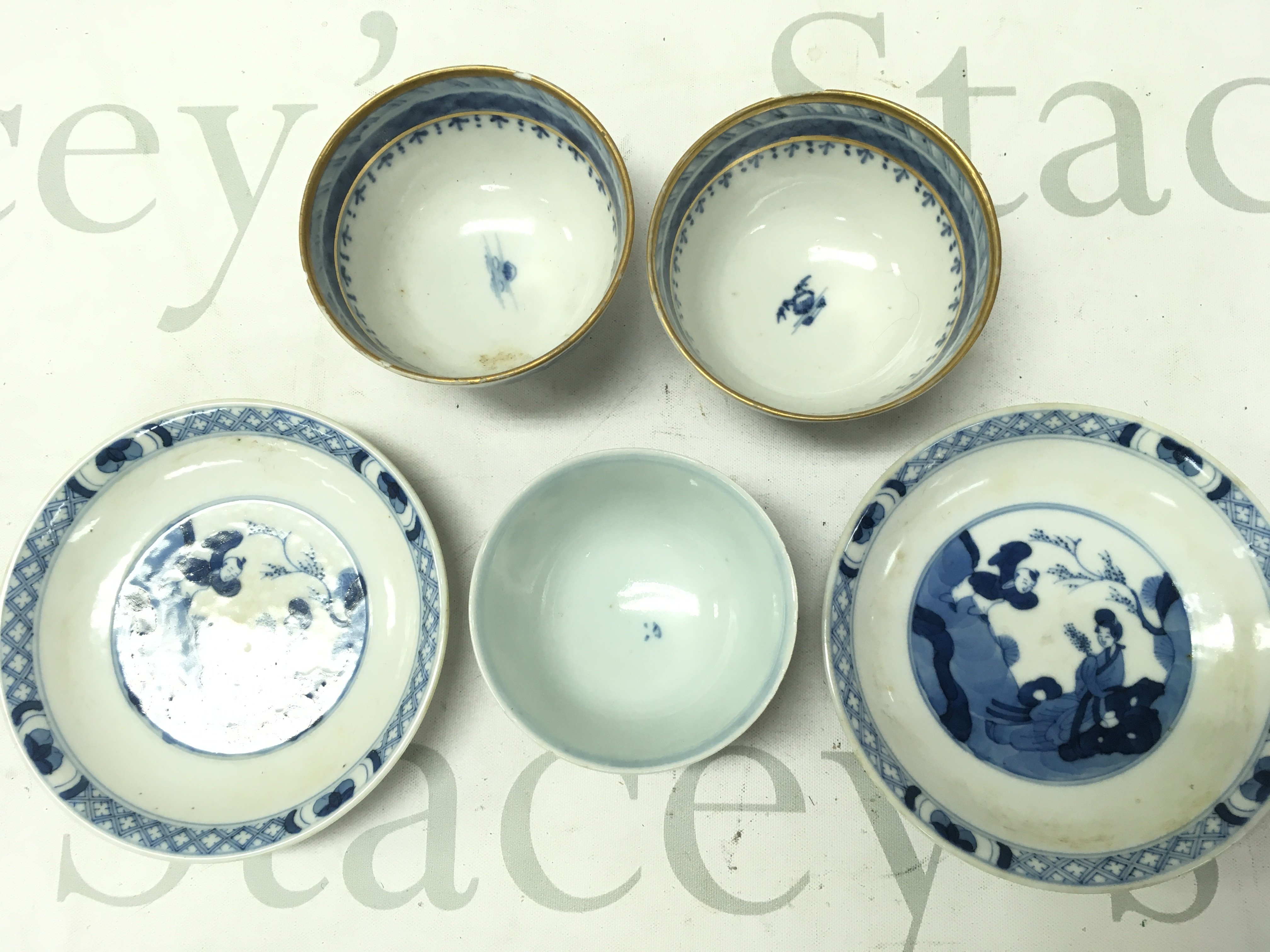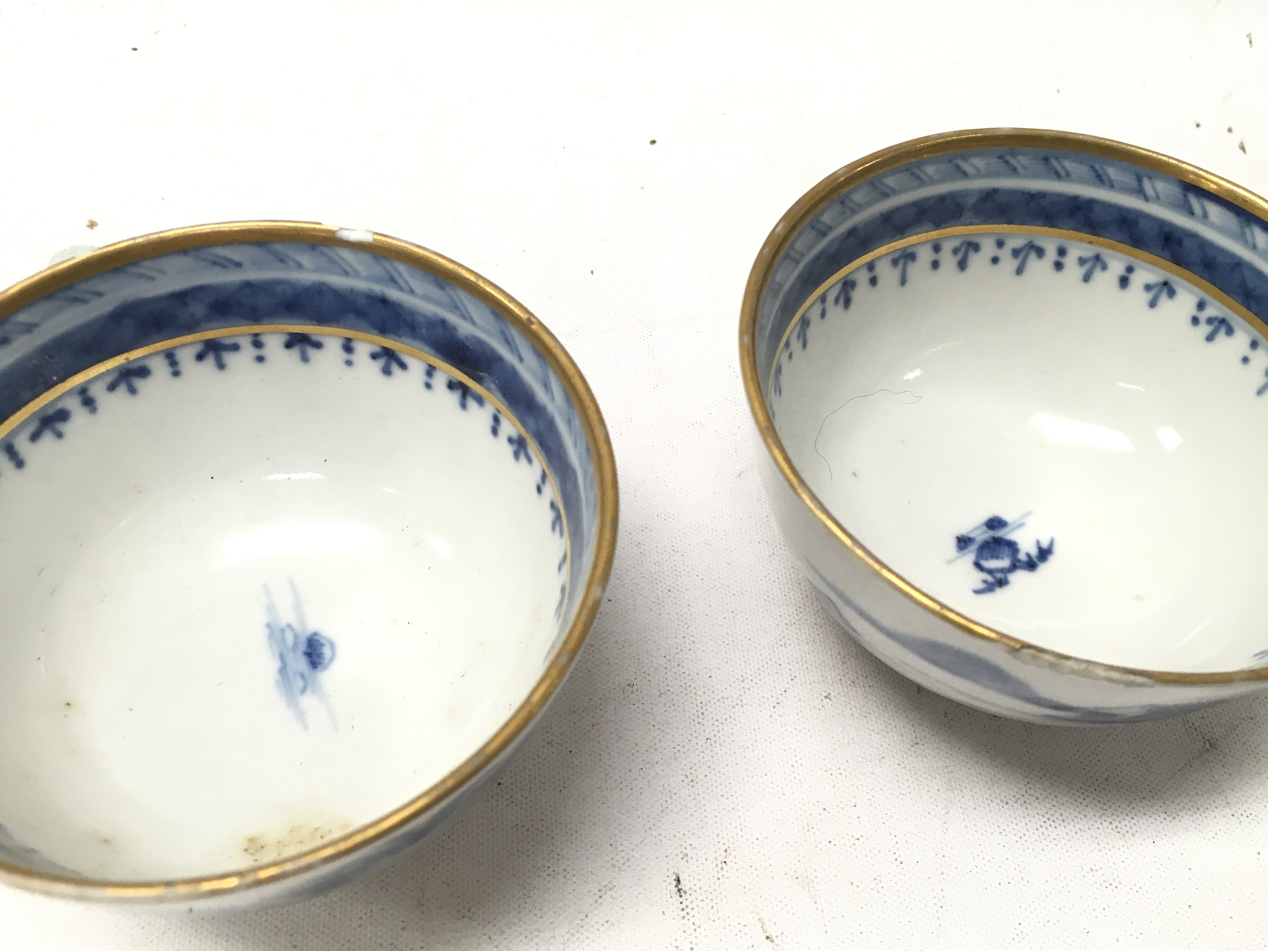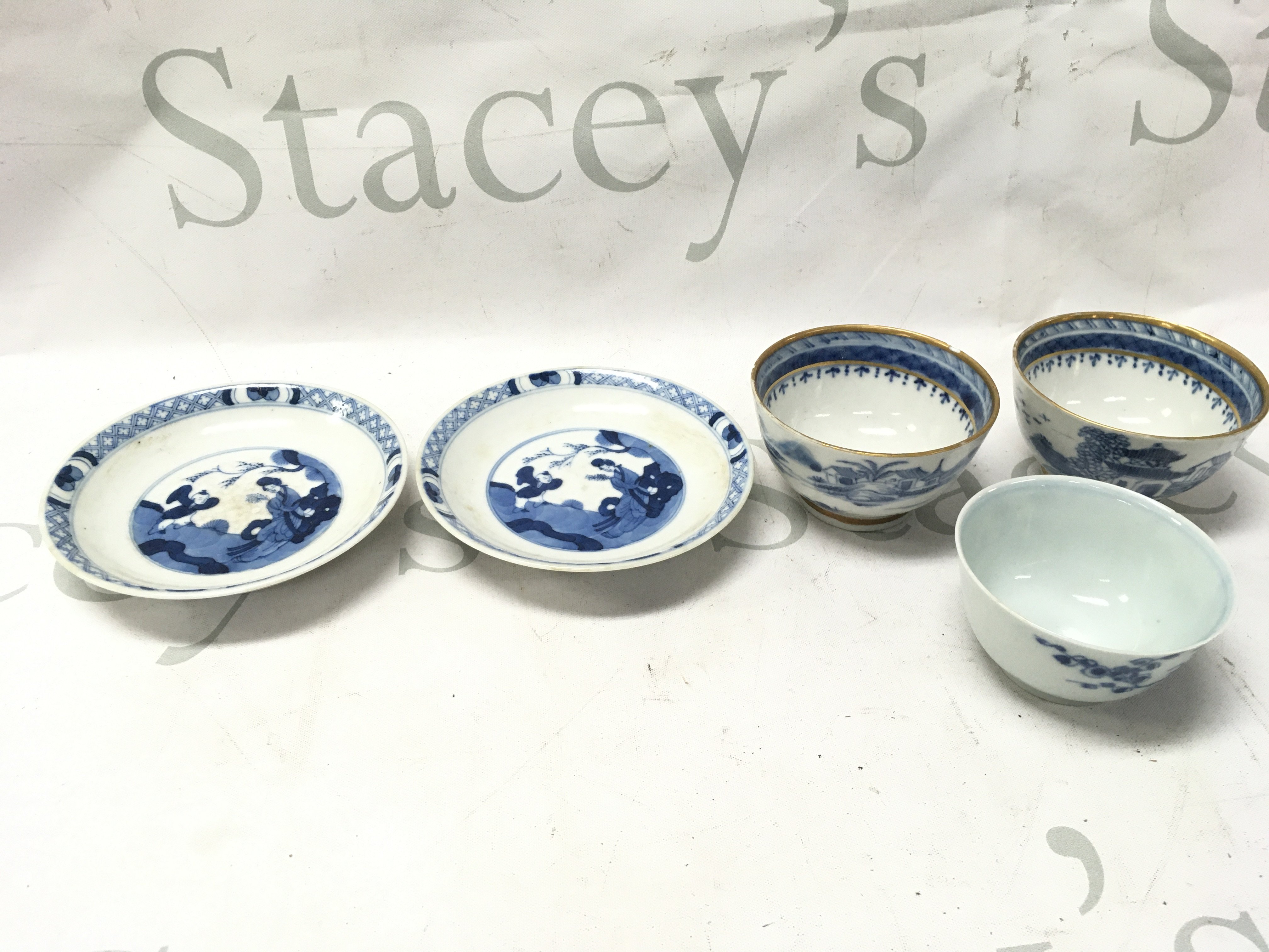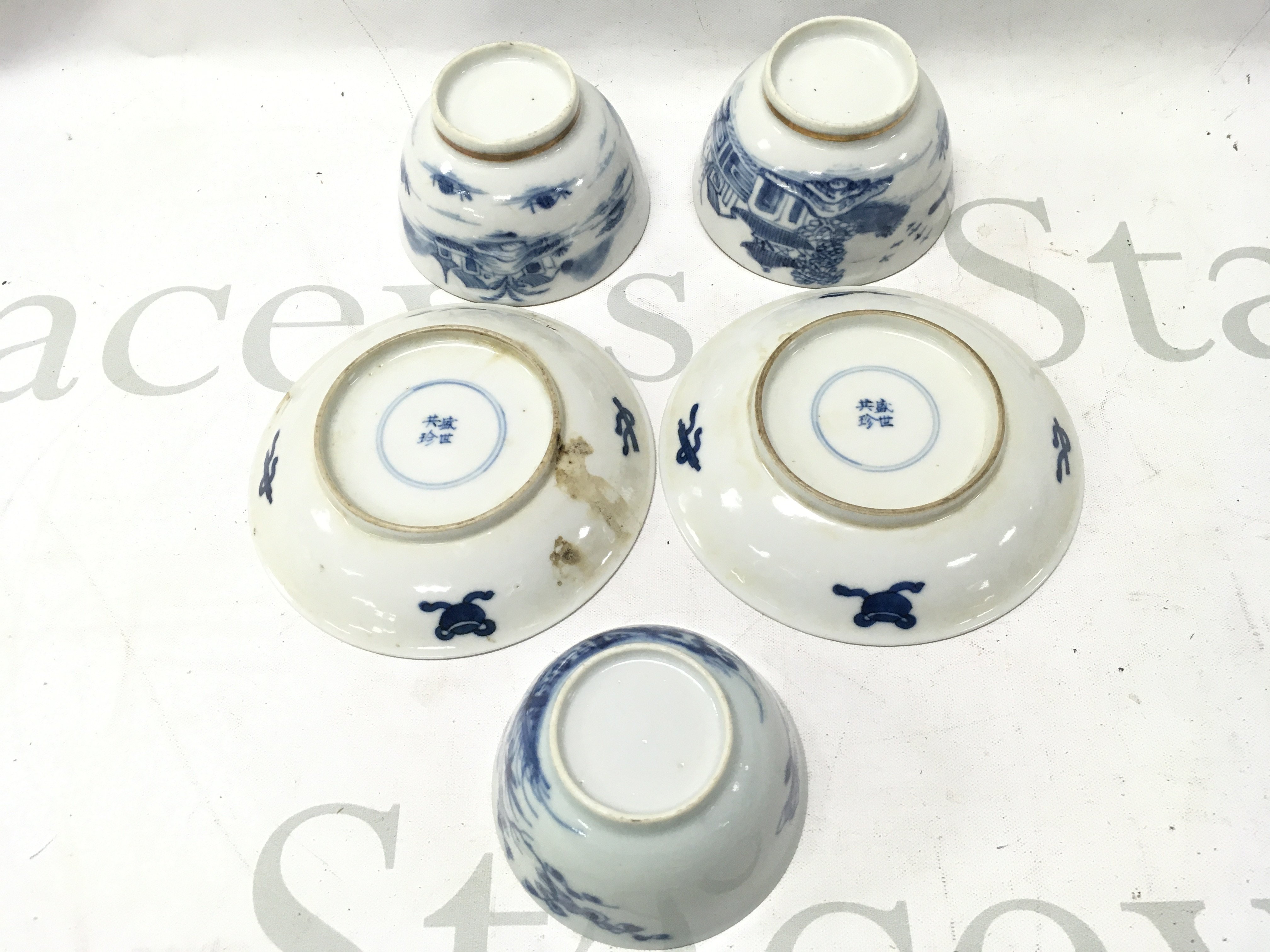 Chinese blue and white including tea bowls and small dishes . Some chips seen on tea bowls. This lot cannot be posted