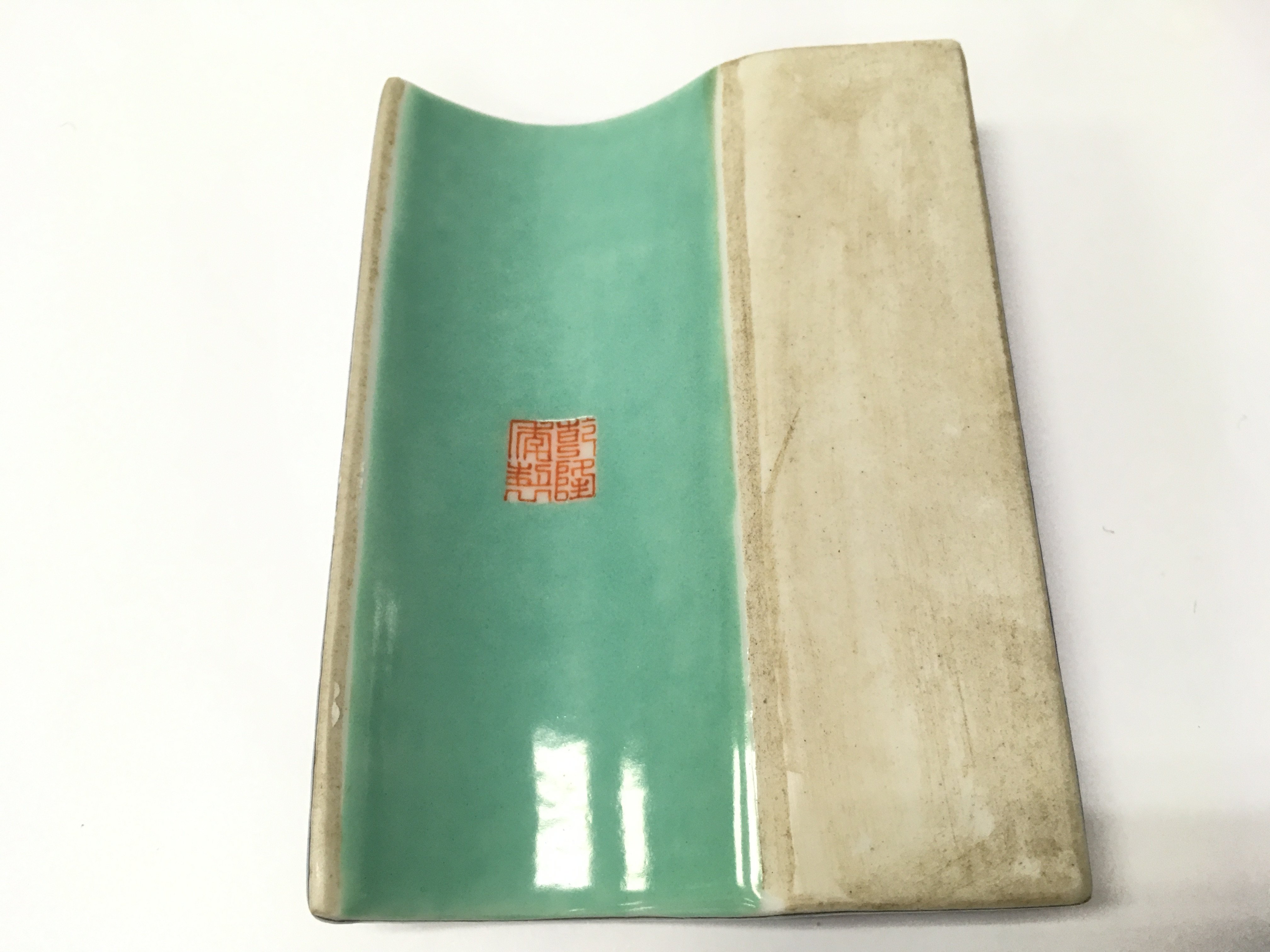A Chinese wall vase in scroll form depicting a river scene. 7.5cm wide 9.5cm tall This lot cannot be posted