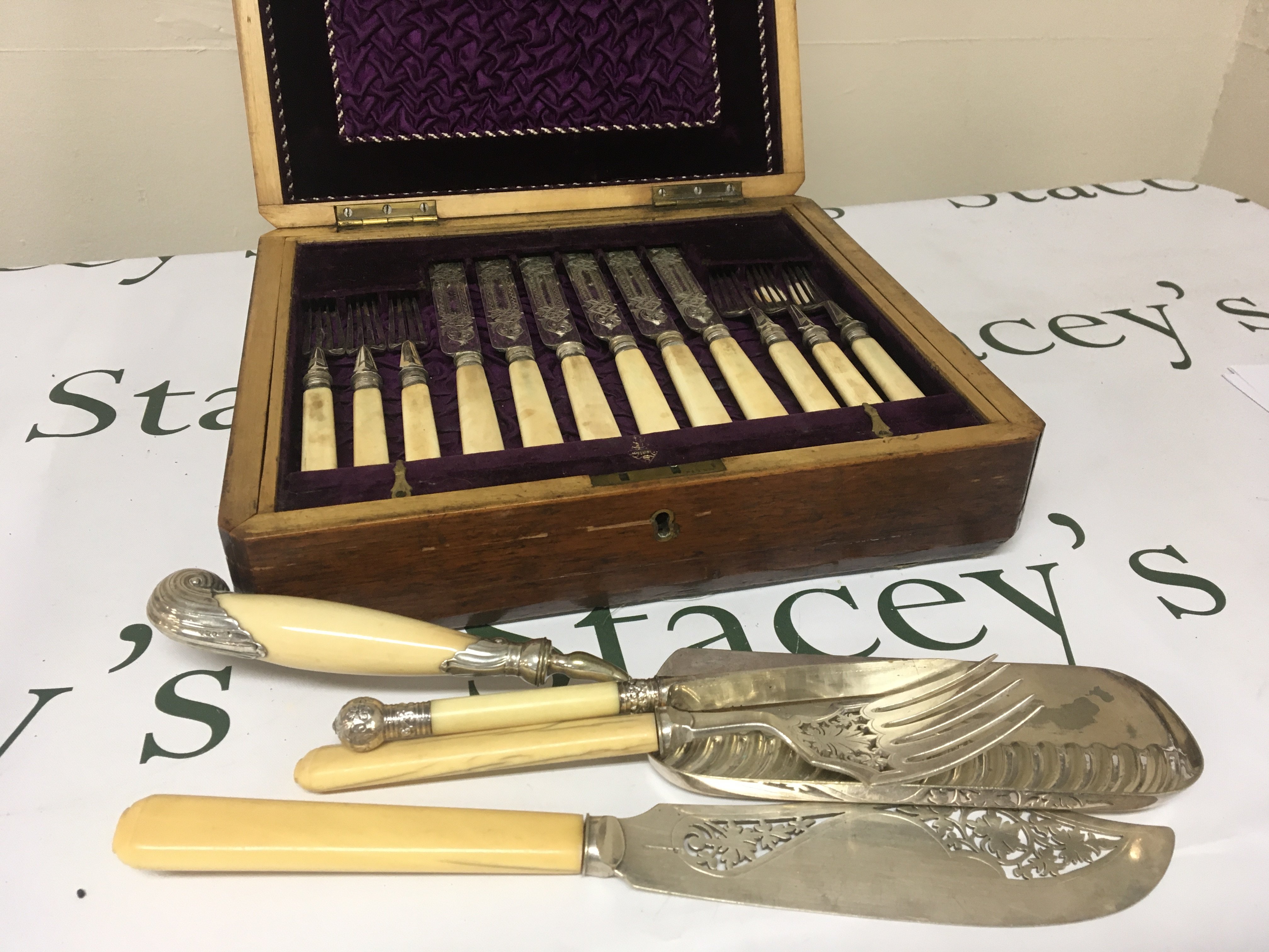 A canteen of early 20th century silver plated cutlery and other conforming serving cutlery. NO RESERVE