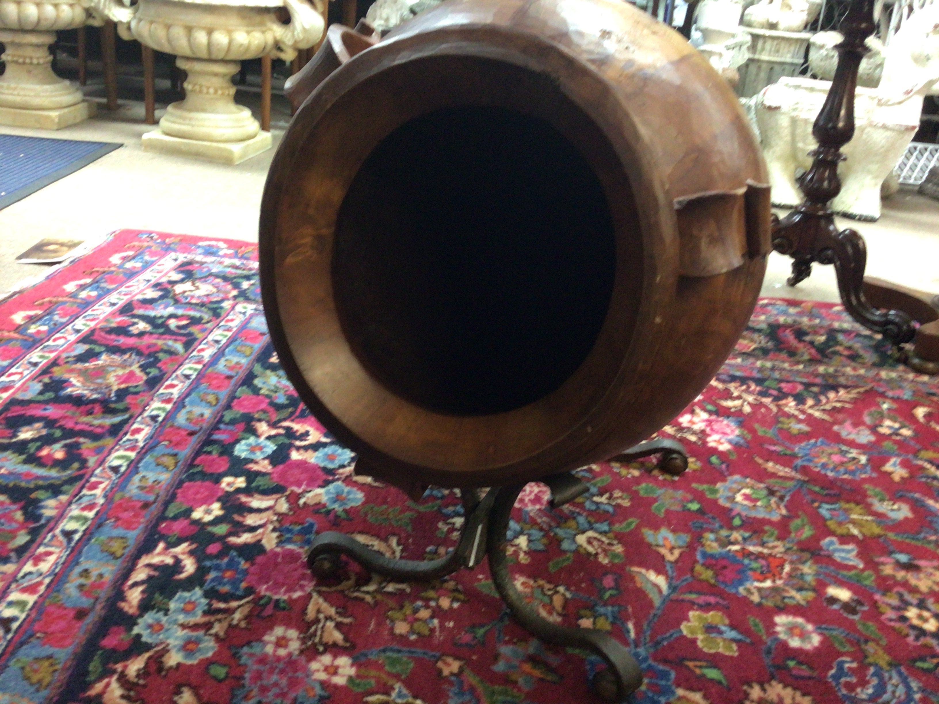 An unusual large carved wood Vessel on a crafted bispoke wrought metal copper stand. Length 80cm- NO RESERVE