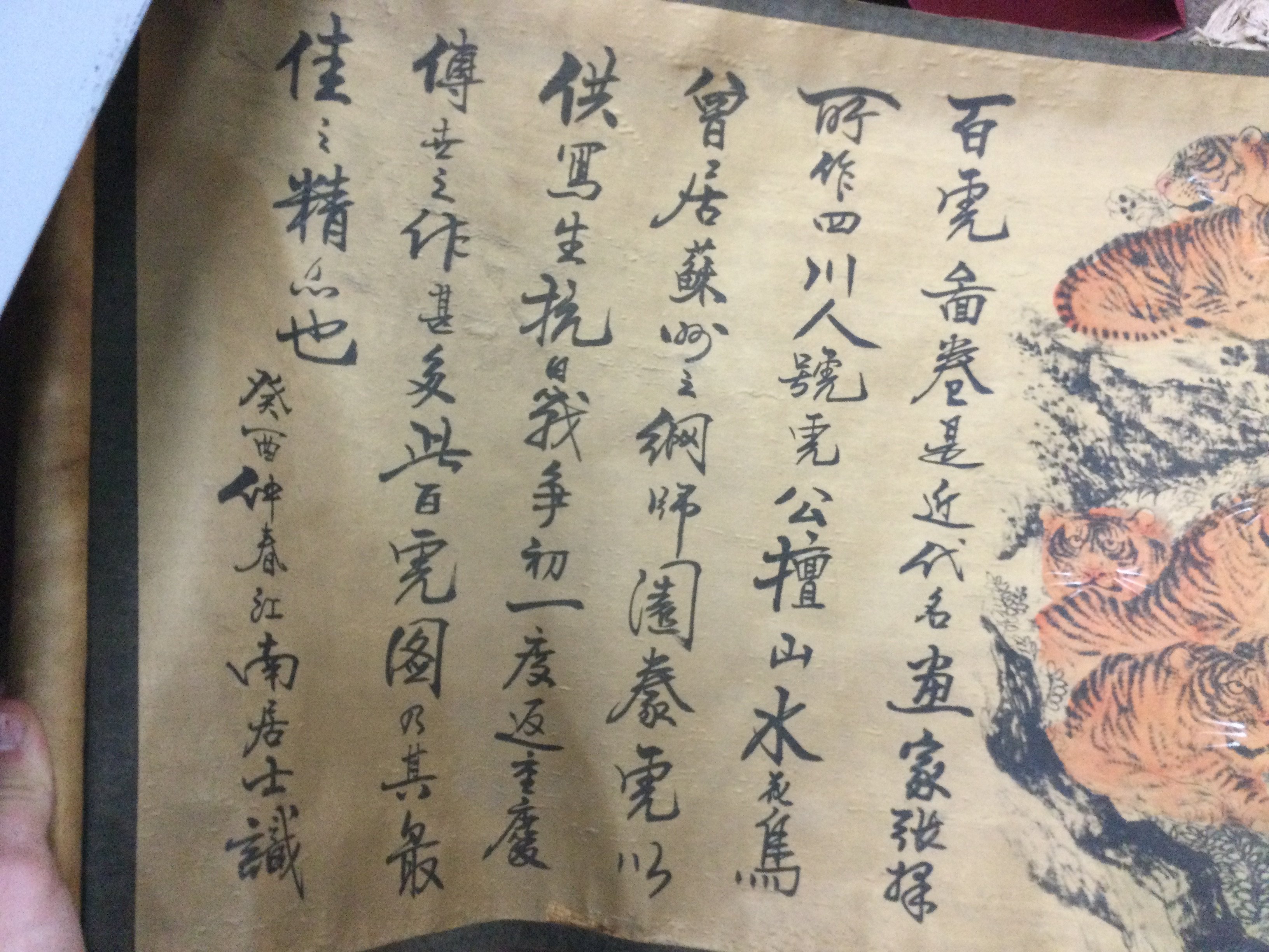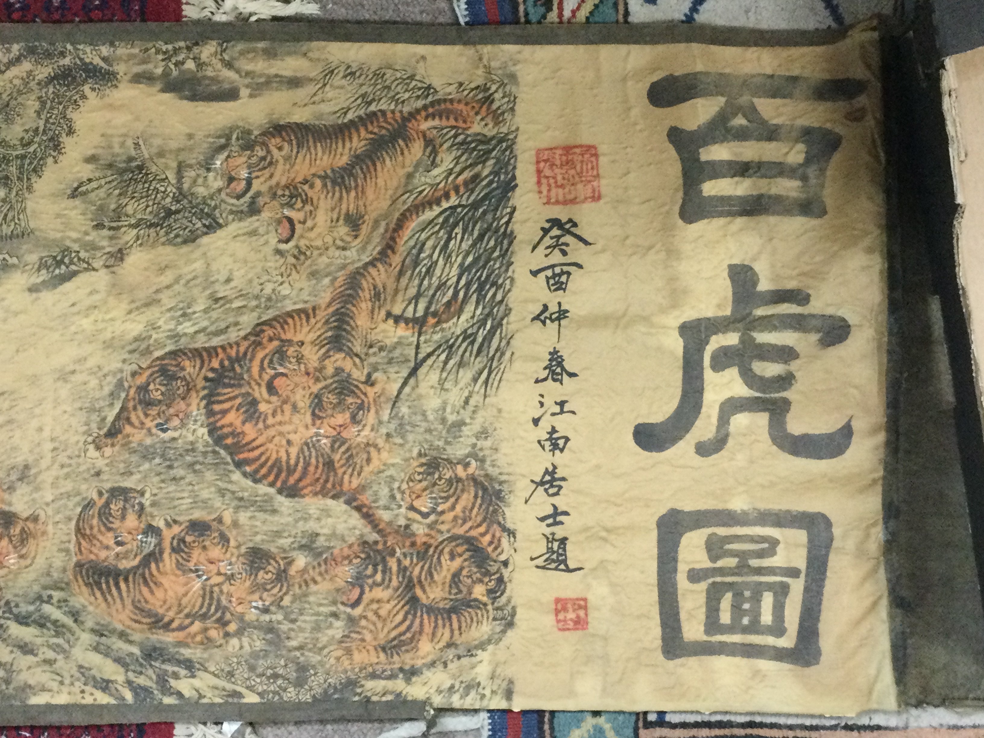 A Tibetan scroll with tiger paintings , Hundred tigers picture. Approximately 4 metres long. Postage category C