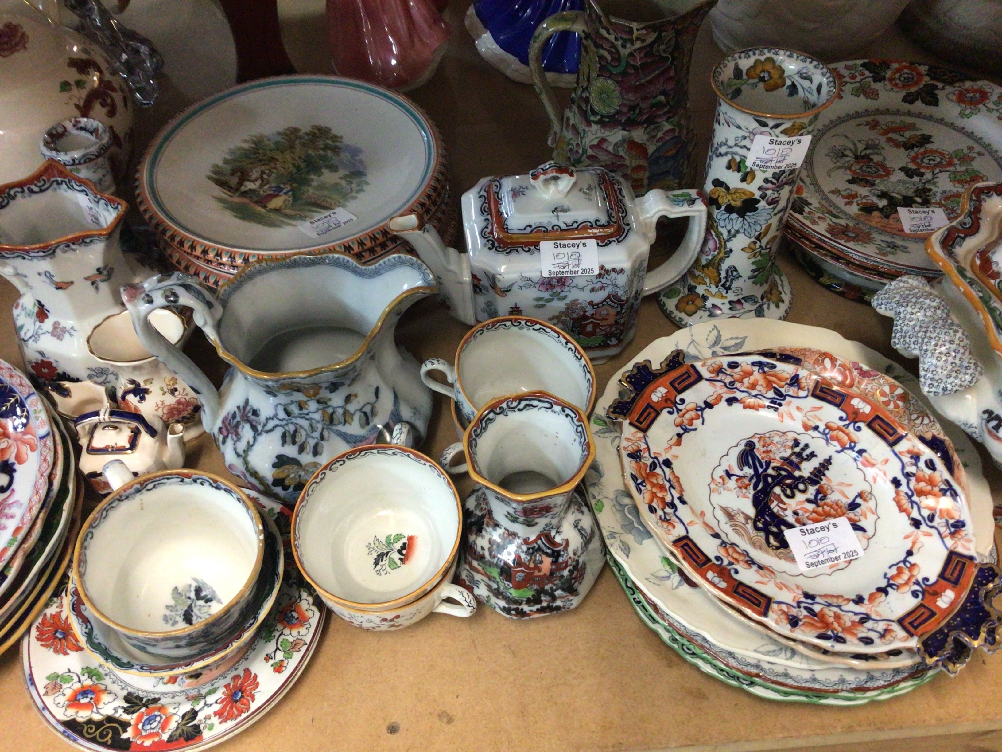A collection of Victorian and later Ironstone china comprising tureens plates jugs cups and saucers and others. NO RESERVE