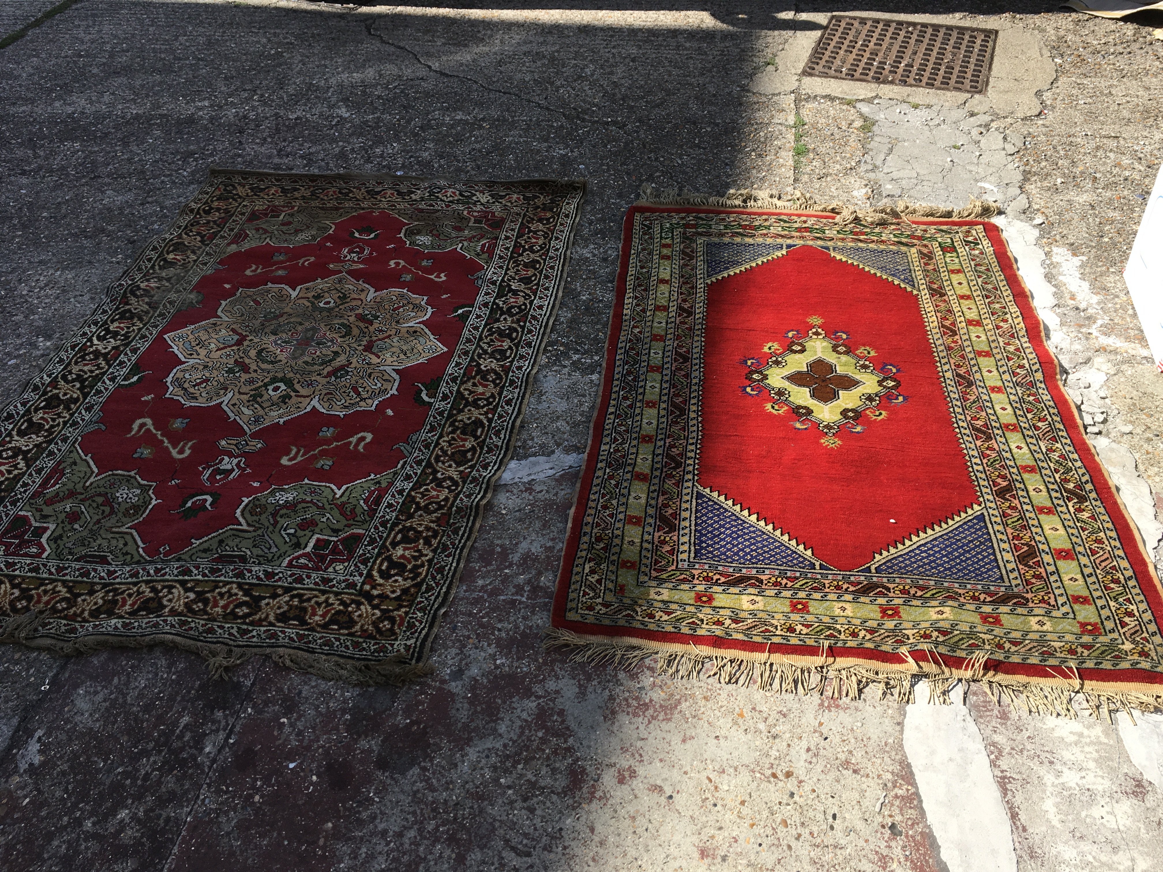 Two red hand woven Rugs. Dimensions 202x130cm and 110x180cm- NO RESERVE